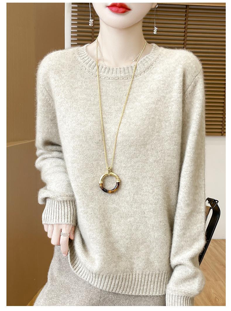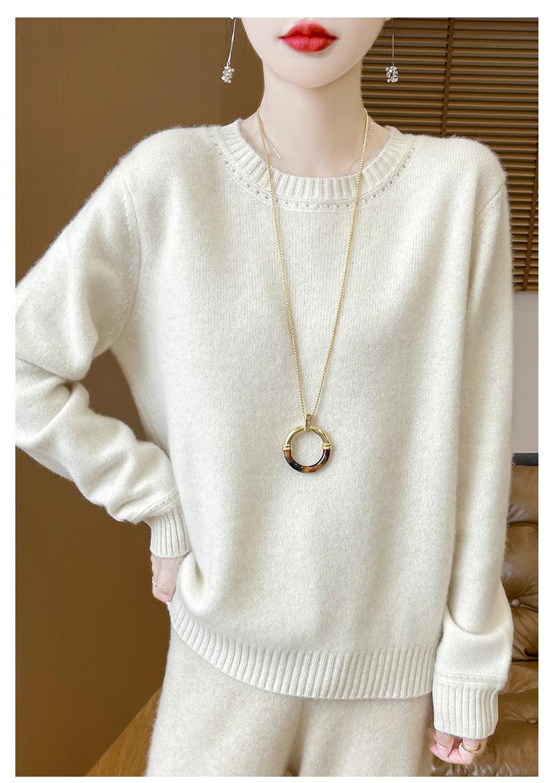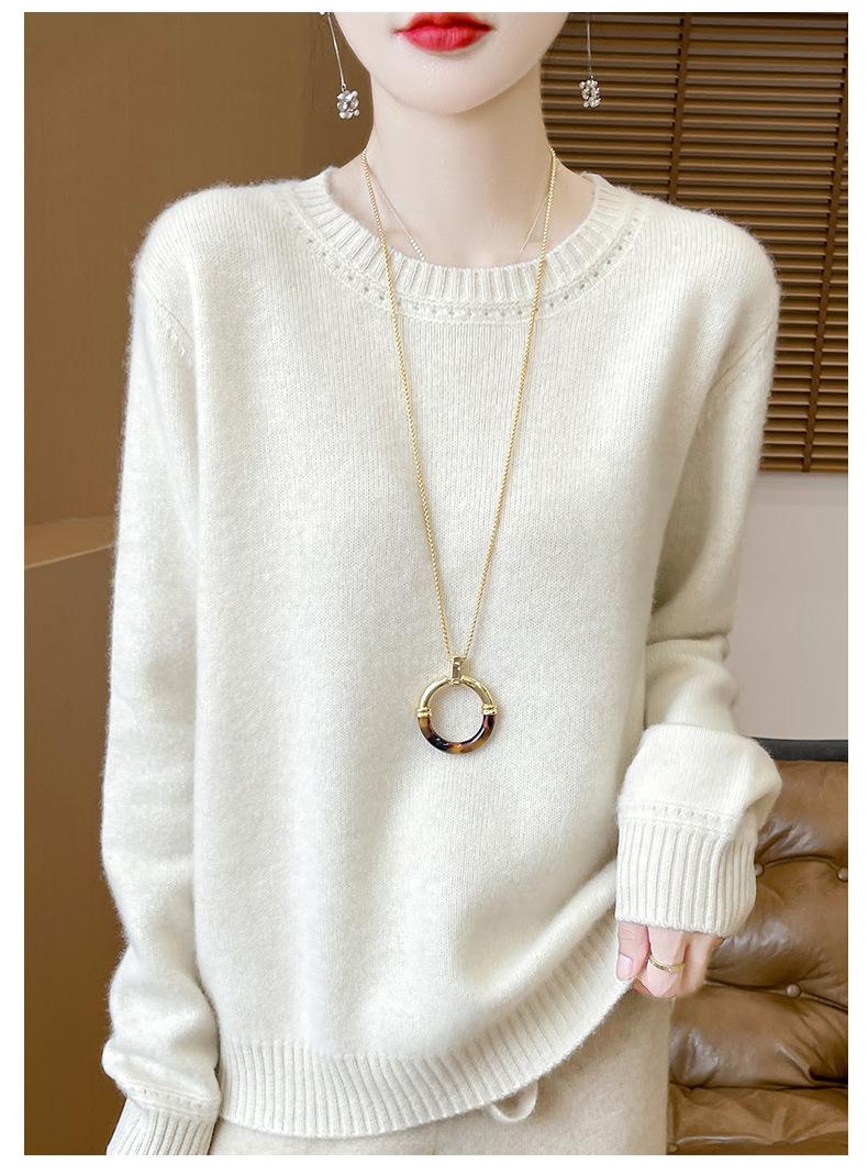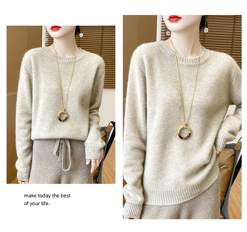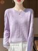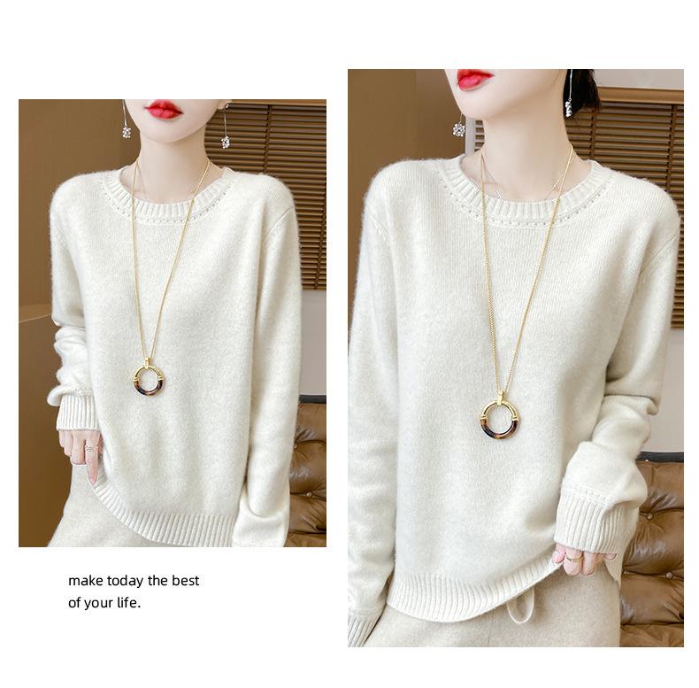 Suéter de cachemira hueco con cuello redondo para mujer, 100% cachemira pura, otoño e invierno, nuevo suéter coreano holgado de manga larga de color sólido, cómodo