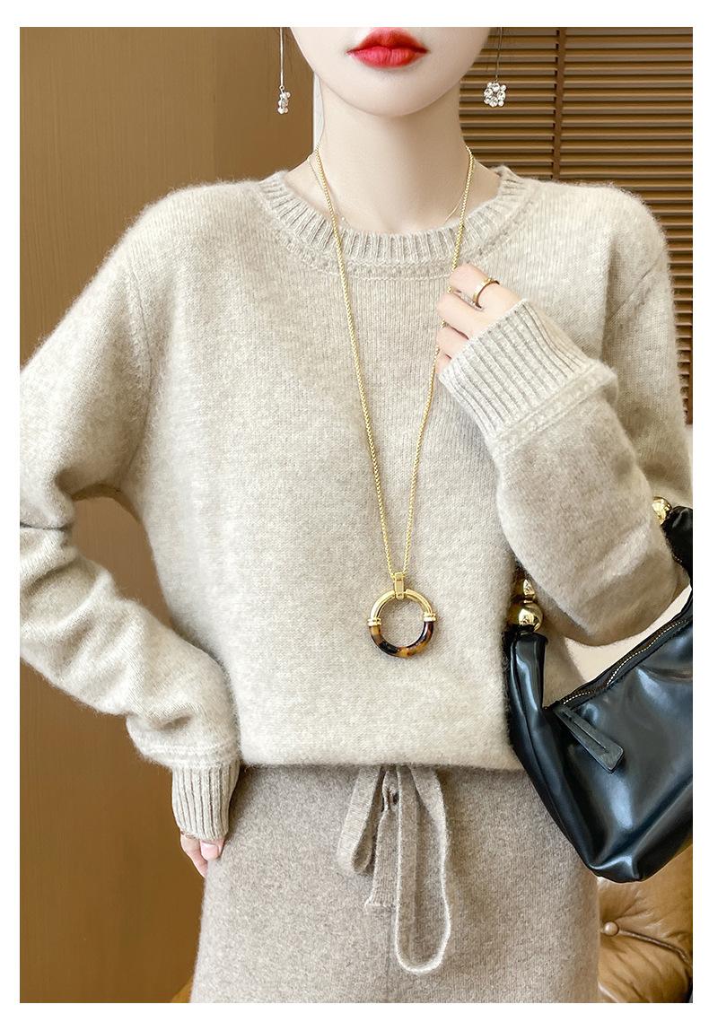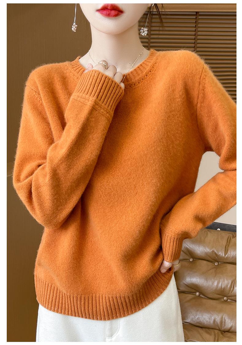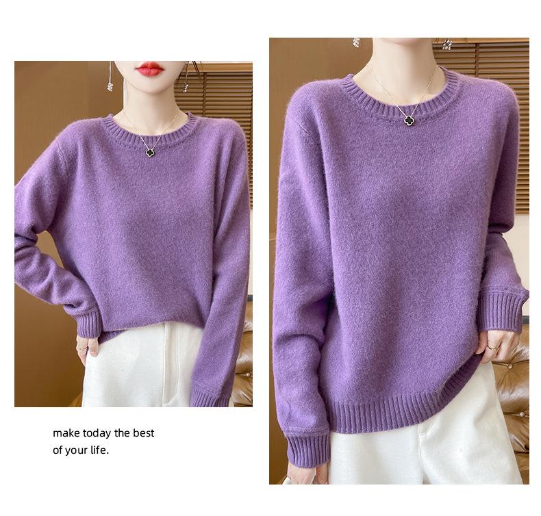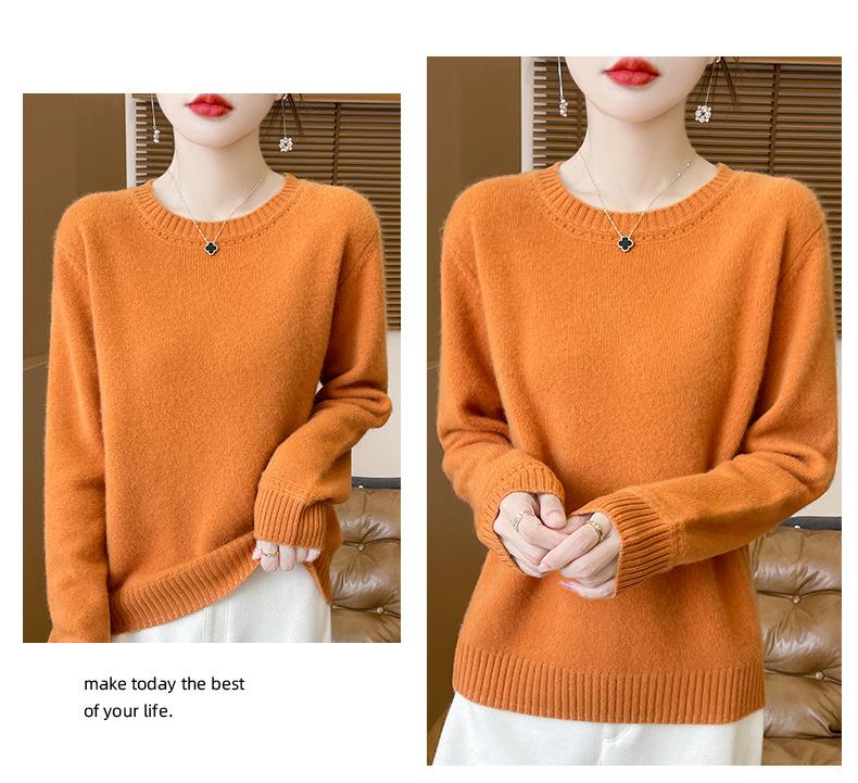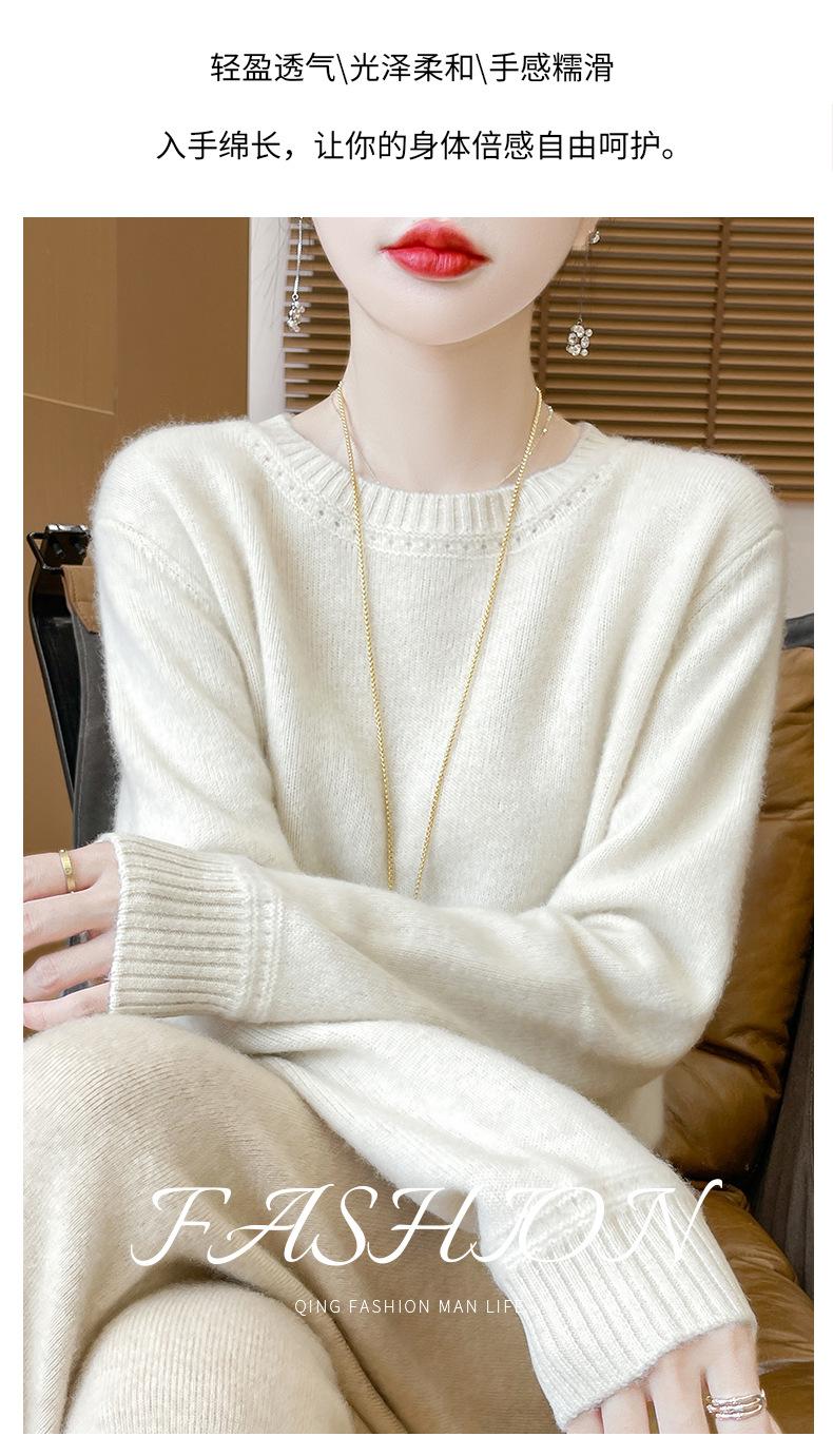Suéter de cachemira hueco con cuello redondo para mujer, 100% cachemira pura, otoño e invierno, nuevo suéter coreano holgado de manga larga de color sólido, cómodo