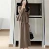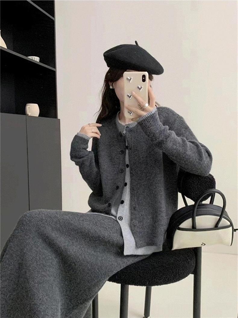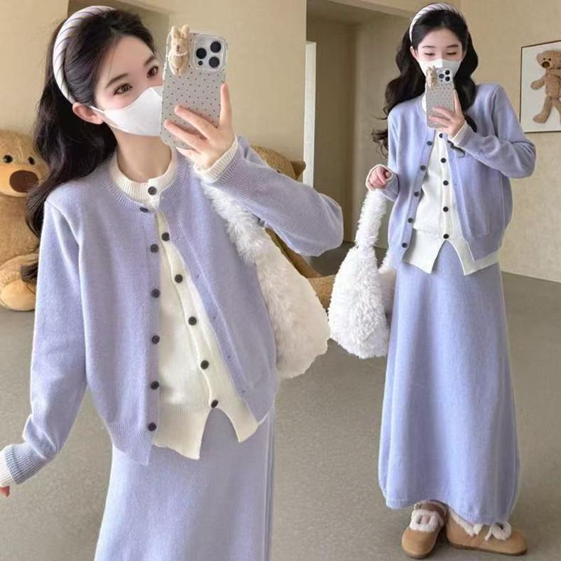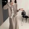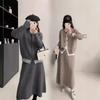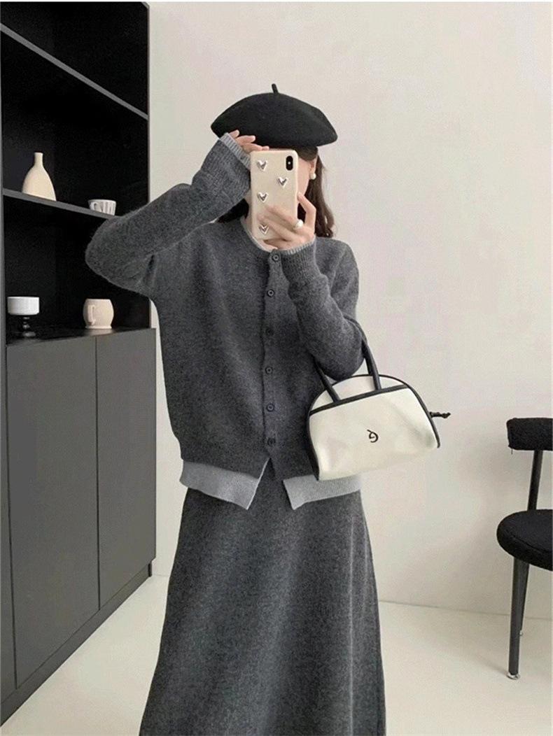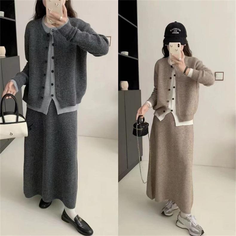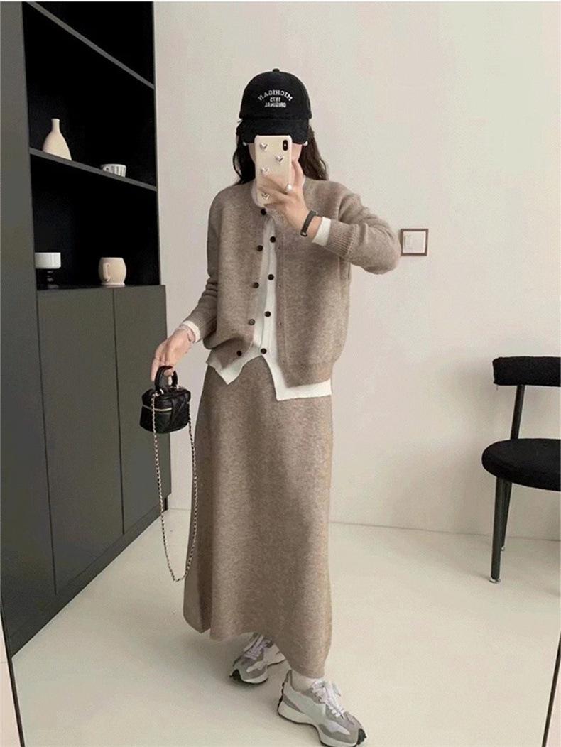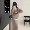 Vestido de punto nuevo de otoño e invierno para mujer, moda de dos piezas, cárdigan con contraste, falda superior, conjunto informal de dos piezas