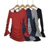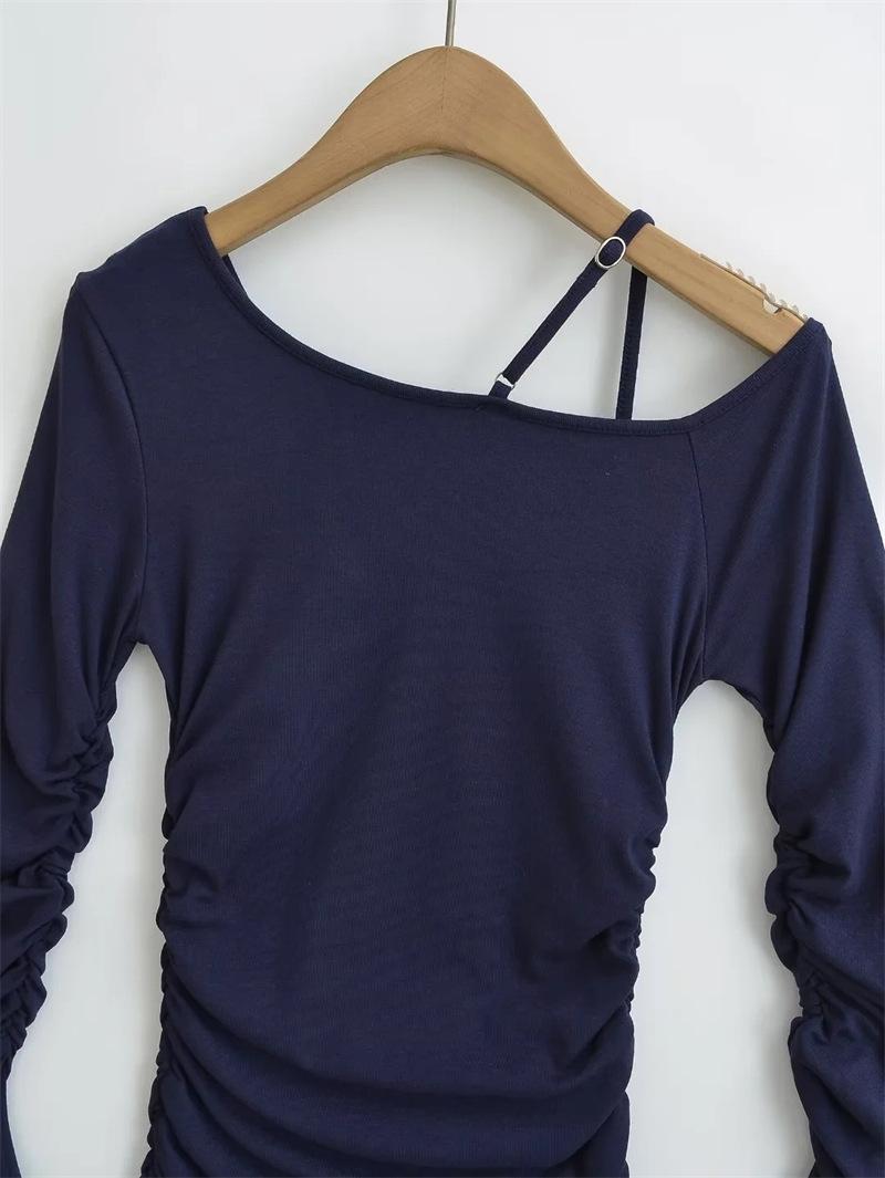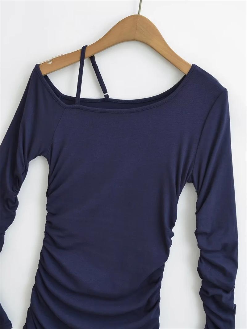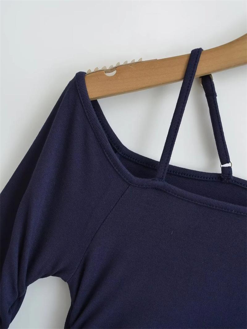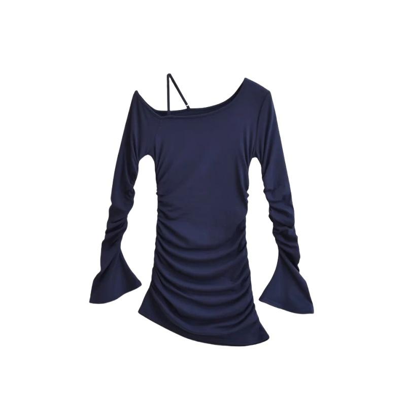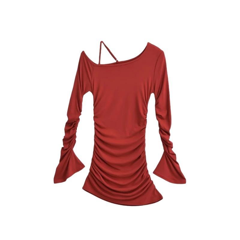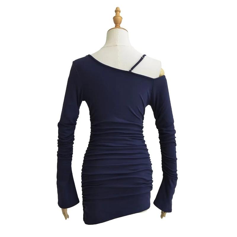 Vestido Sexy con Hombro Descubierto Ins Blogger para Chica Caliente, Vestido Sling con Hombro Descubierto para Mujer, Ajustado Elástico, Manga Acampanada Plisada, Falda de Cadera