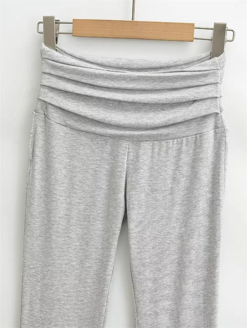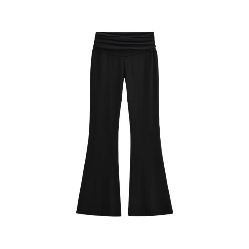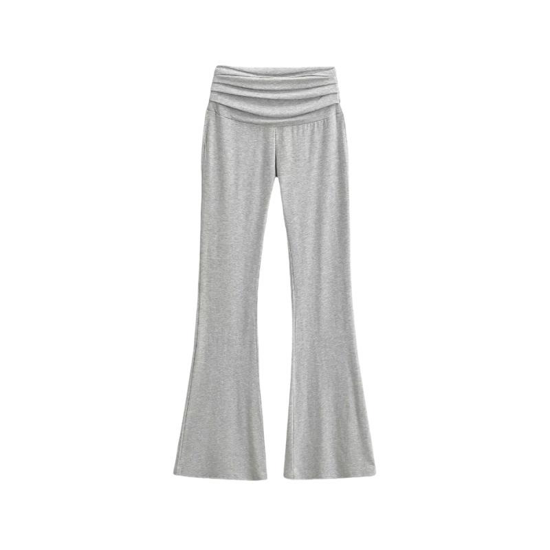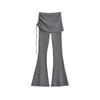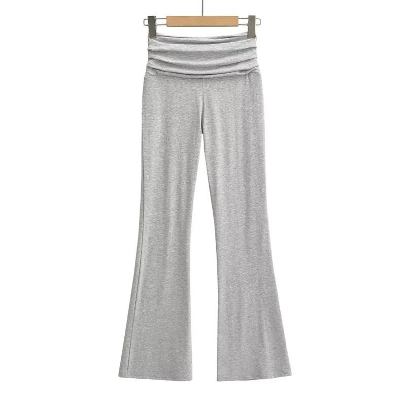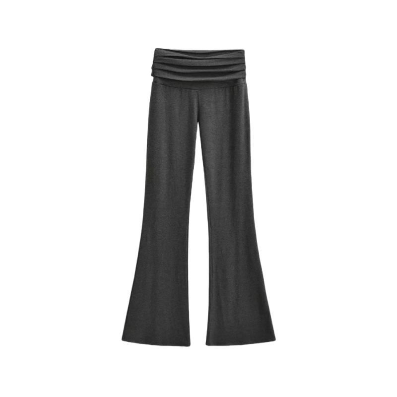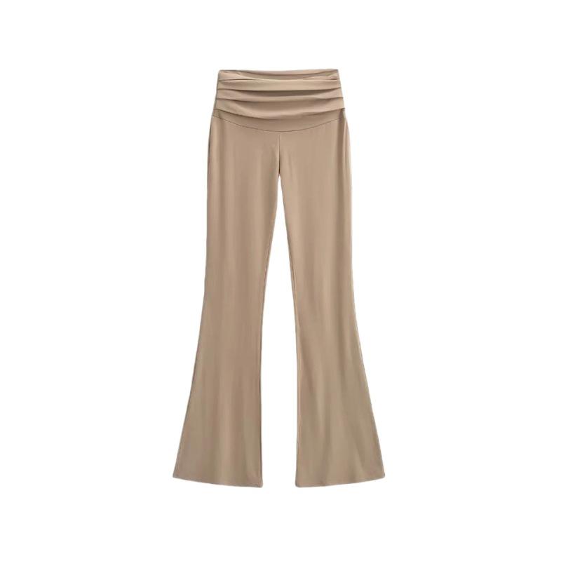 Pantalones plisados de cintura baja estilo americano retro con microcampana para mujer, sexys, elásticos, ajustados, de color liso.