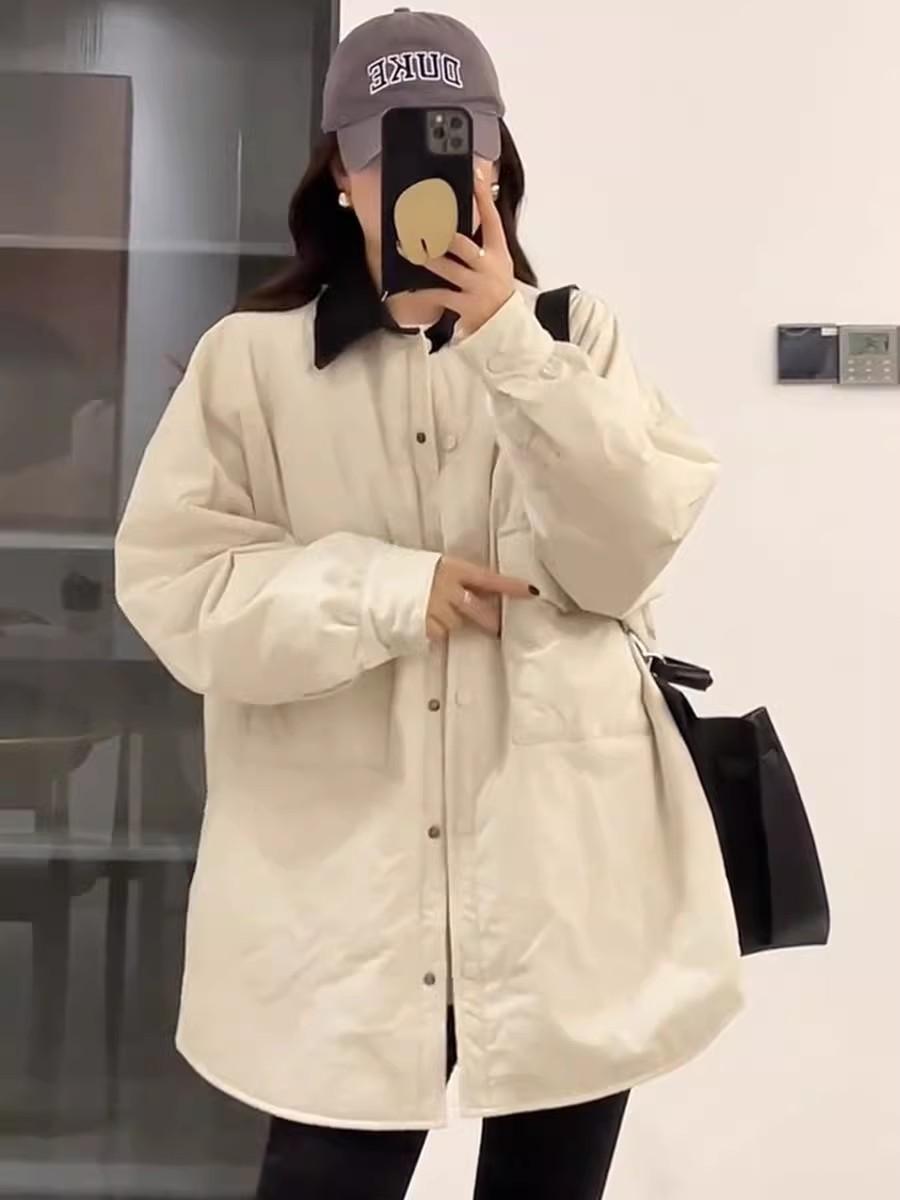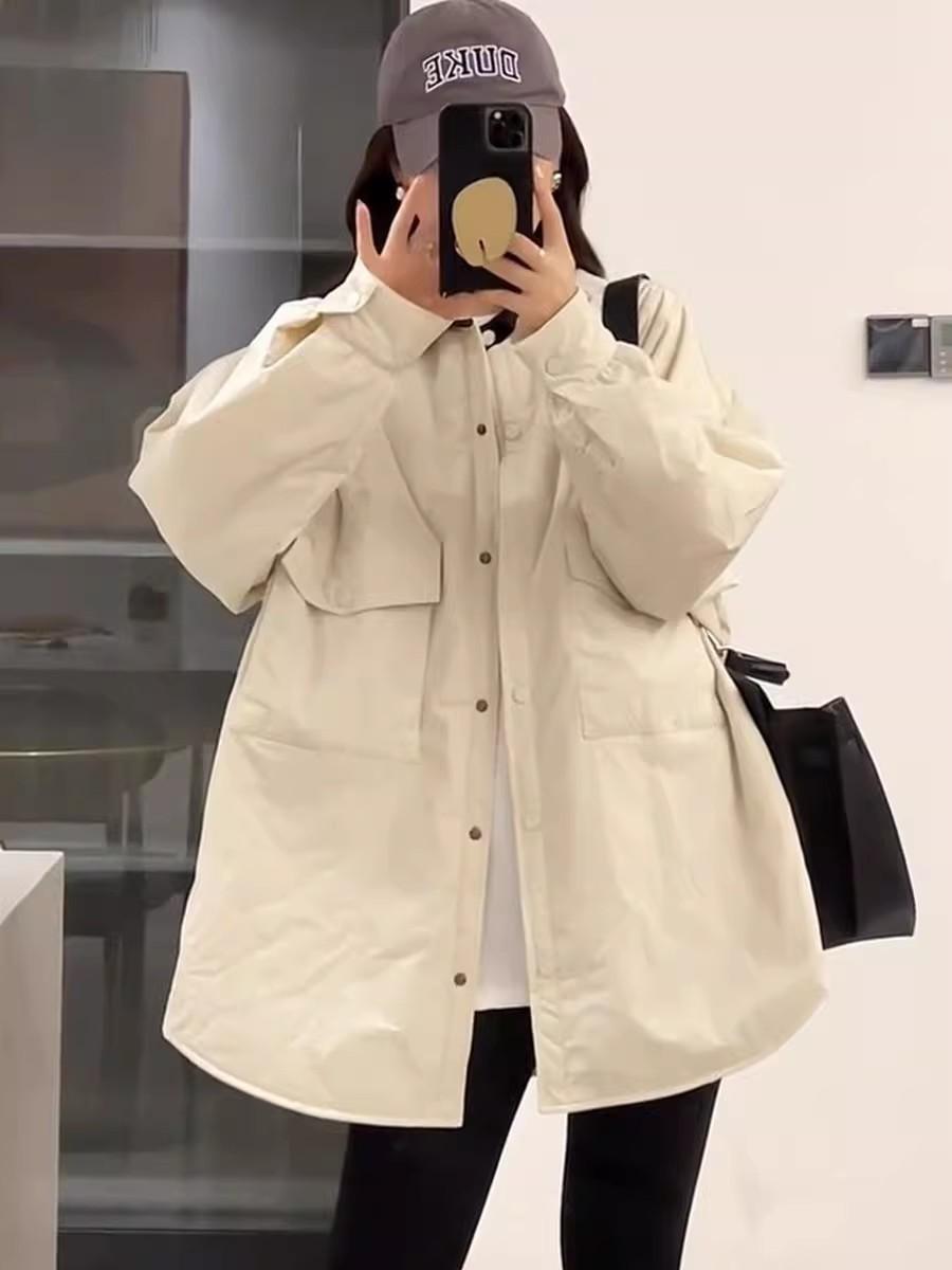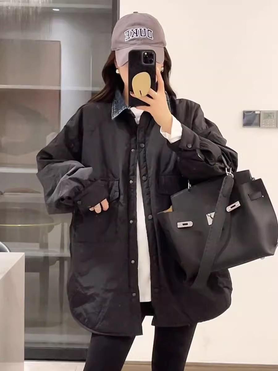 Chaqueta ligera y fina de algodón acolchada de estilo coreano para mujer, otoño e invierno 2024, nueva chaqueta de algodón acolchada con costuras holgadas, chaqueta estilo camisa