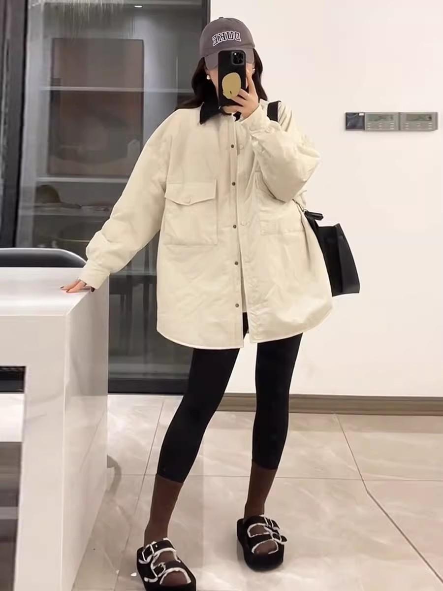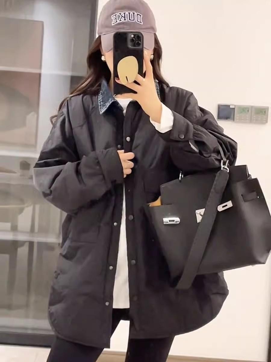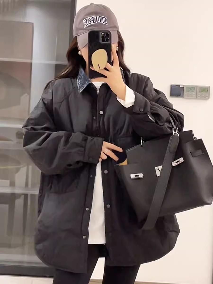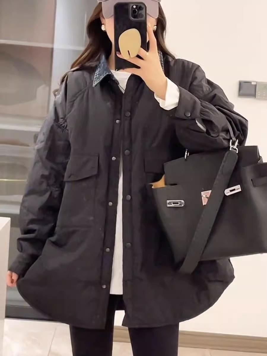 Chaqueta ligera y fina de algodón acolchada de estilo coreano para mujer, otoño e invierno 2024, nueva chaqueta de algodón acolchada con costuras holgadas, chaqueta estilo camisa