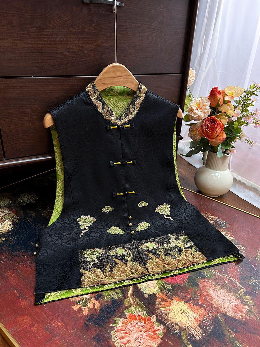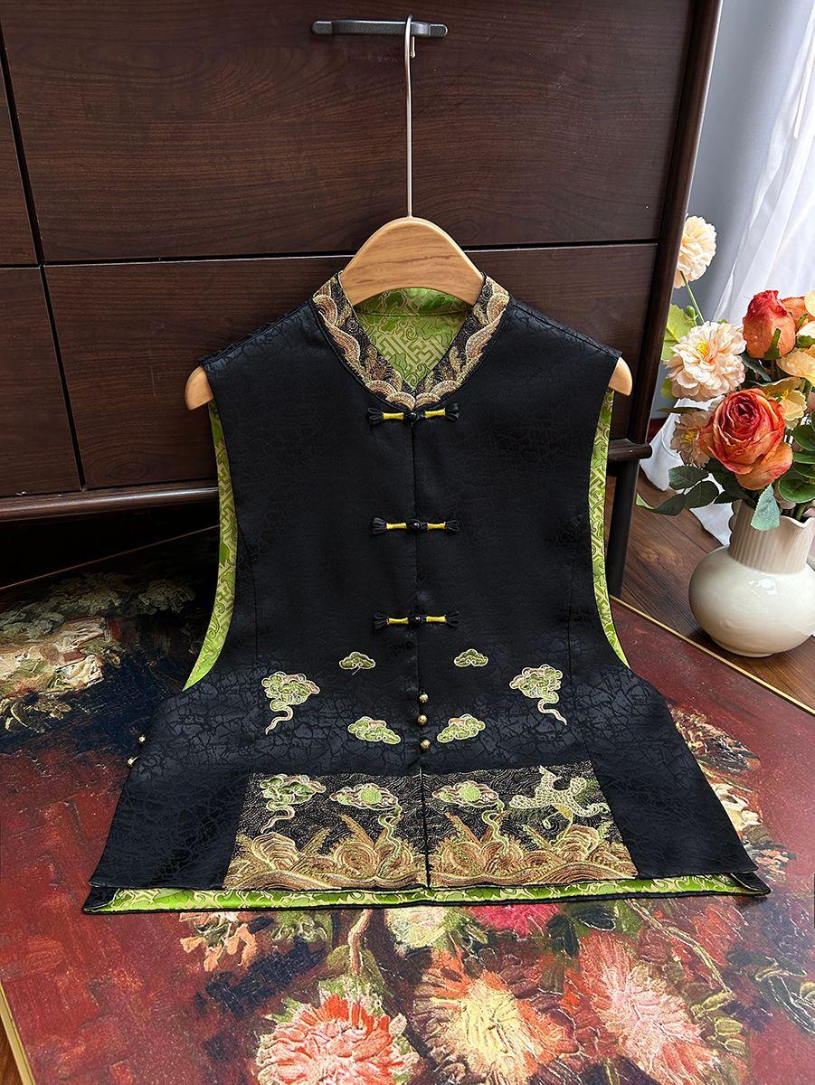 Chaleco Bordado de Industria Pesada China Nuevo 2024 Otoño Nuevo Elegante Chaleco Elegante Estilo Nacional Hebilla Vintage Chaleco Pequeño