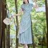 Foto Real de 2025 Nuevo Estilo de Verano Nuevo Cheongsam Mejorado Chinoiserie Socialité y Femenino Vestido Largo con Cintura Plisada y Aspecto Adelgazante