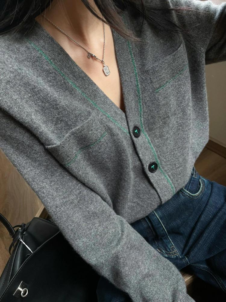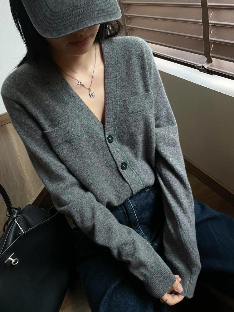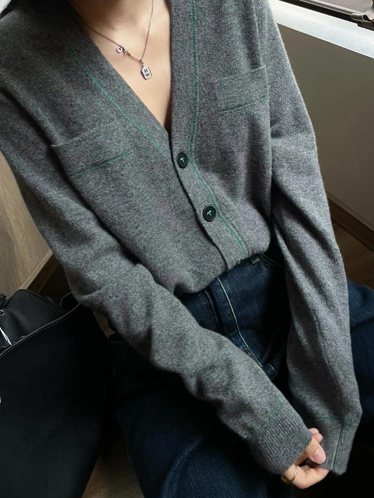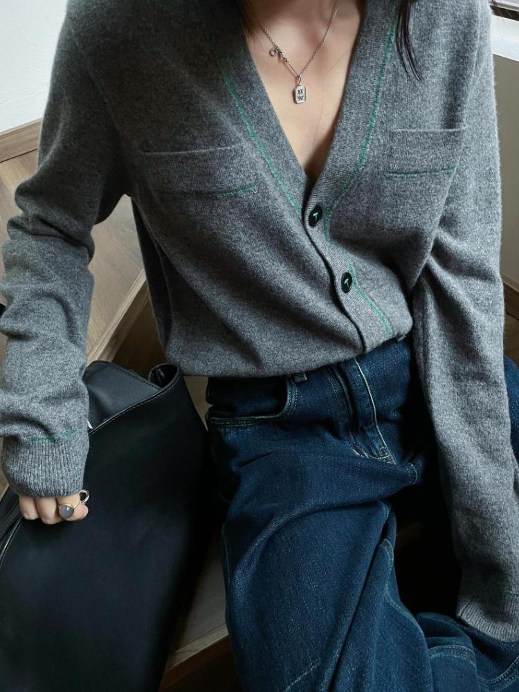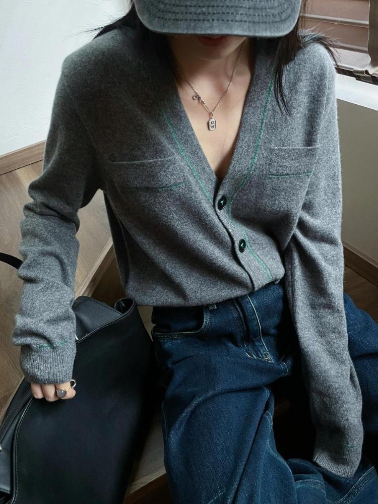 Versión Coreana Otoño 2025 Nuevo Cárdigan de Cachemira con Cuello en V Top para Mujer Otoño Suéter de Lana Tejido Chaqueta Base