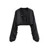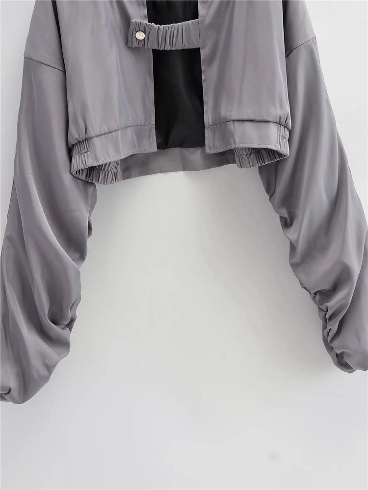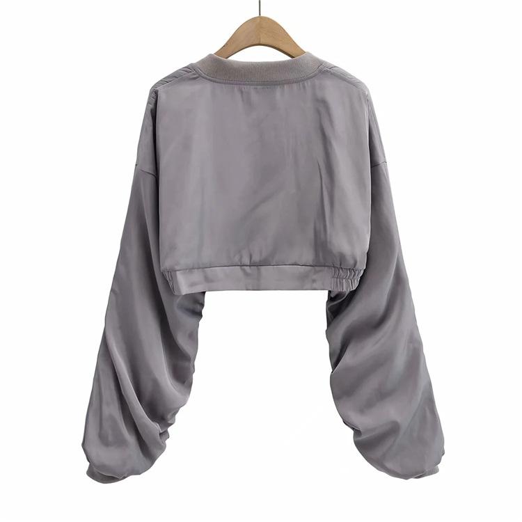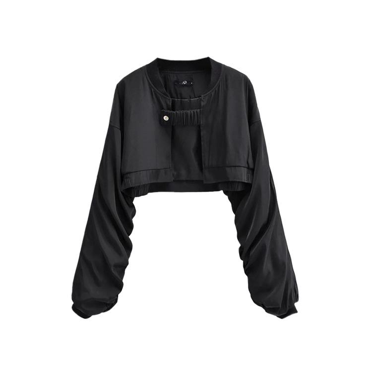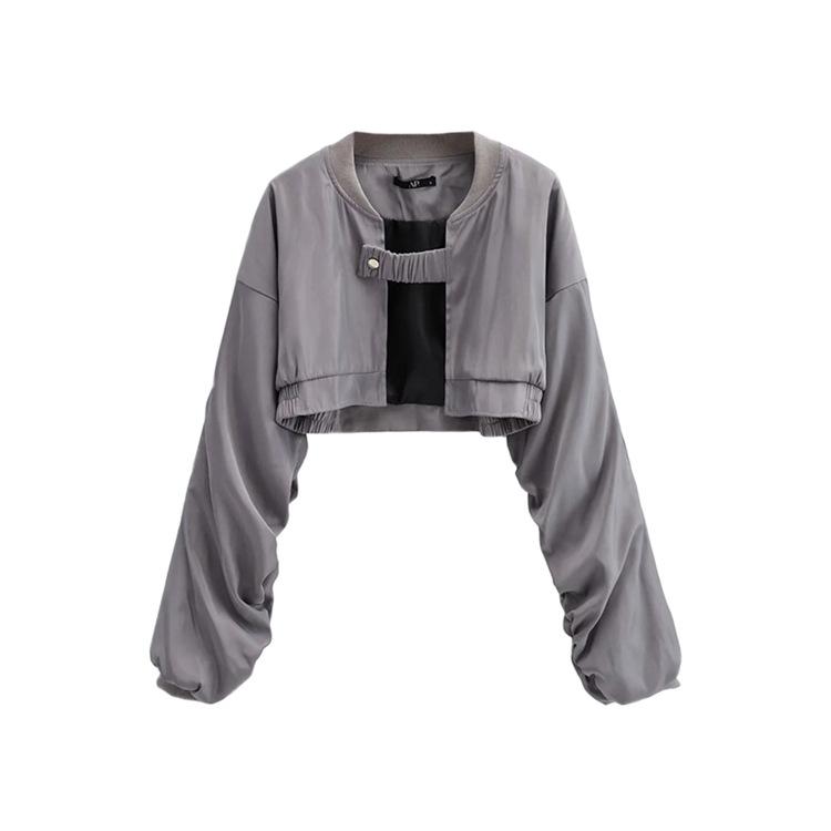 Chaqueta tipo cárdigan de manga larga, holgada, estilo americano, estilo urbano, estilo chica sexy, diseño para mujer, plisada, súper corta.