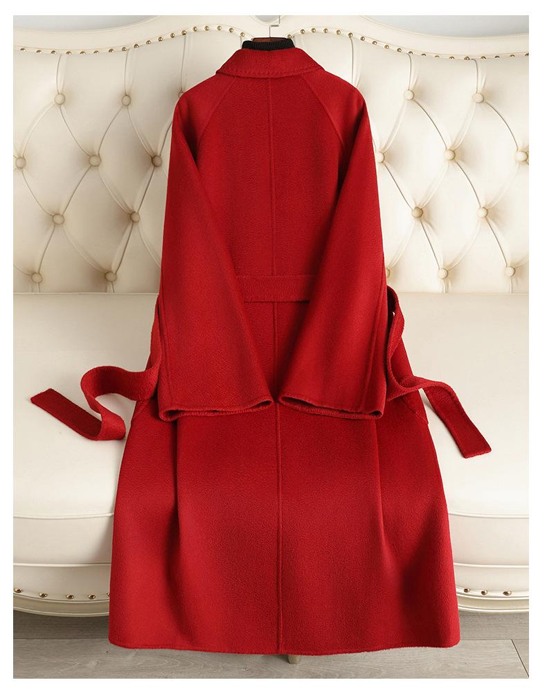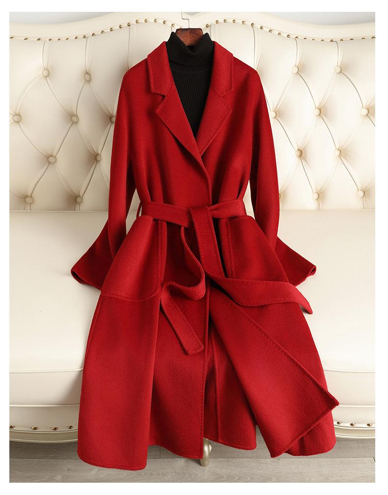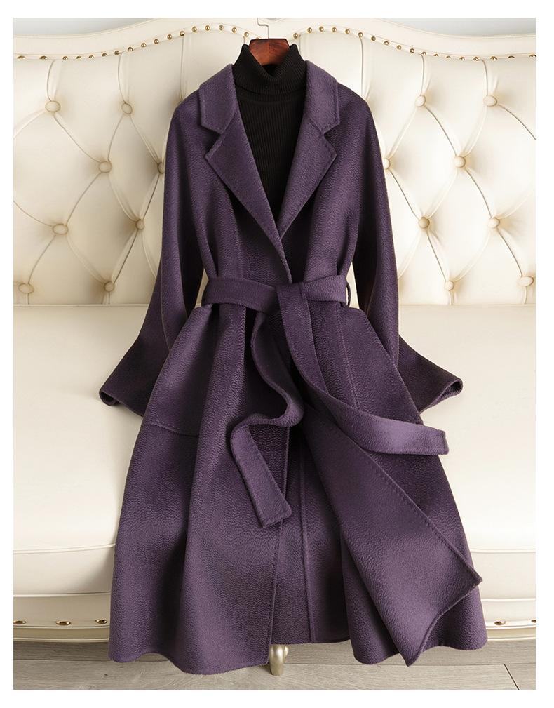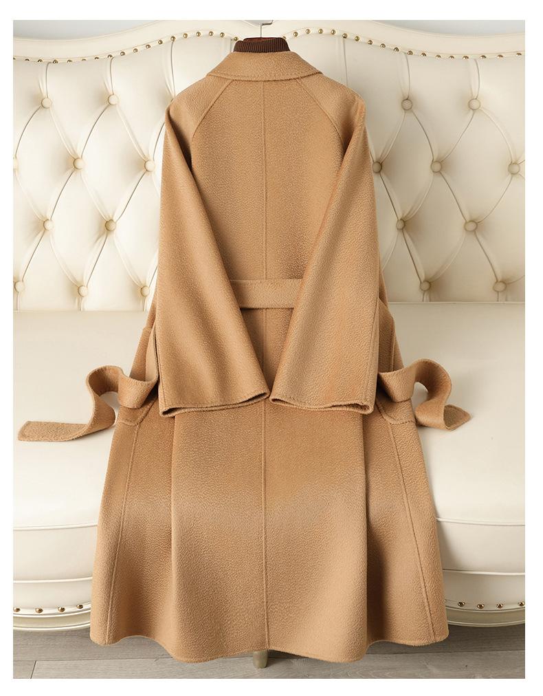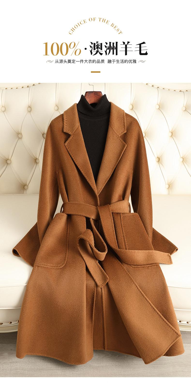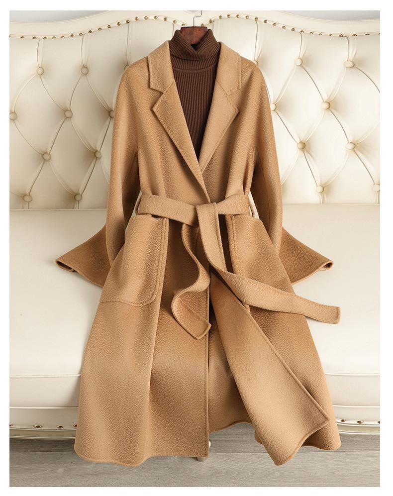 Abrigo de Lana Doble Faz con Ondas de Agua Marca M para Mujer, Estilo Largo, Nuevo Modelo Otoño e Invierno 2025, Abrigo de Lana de Alta Gama por Encima de la Rodilla