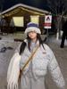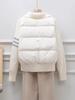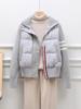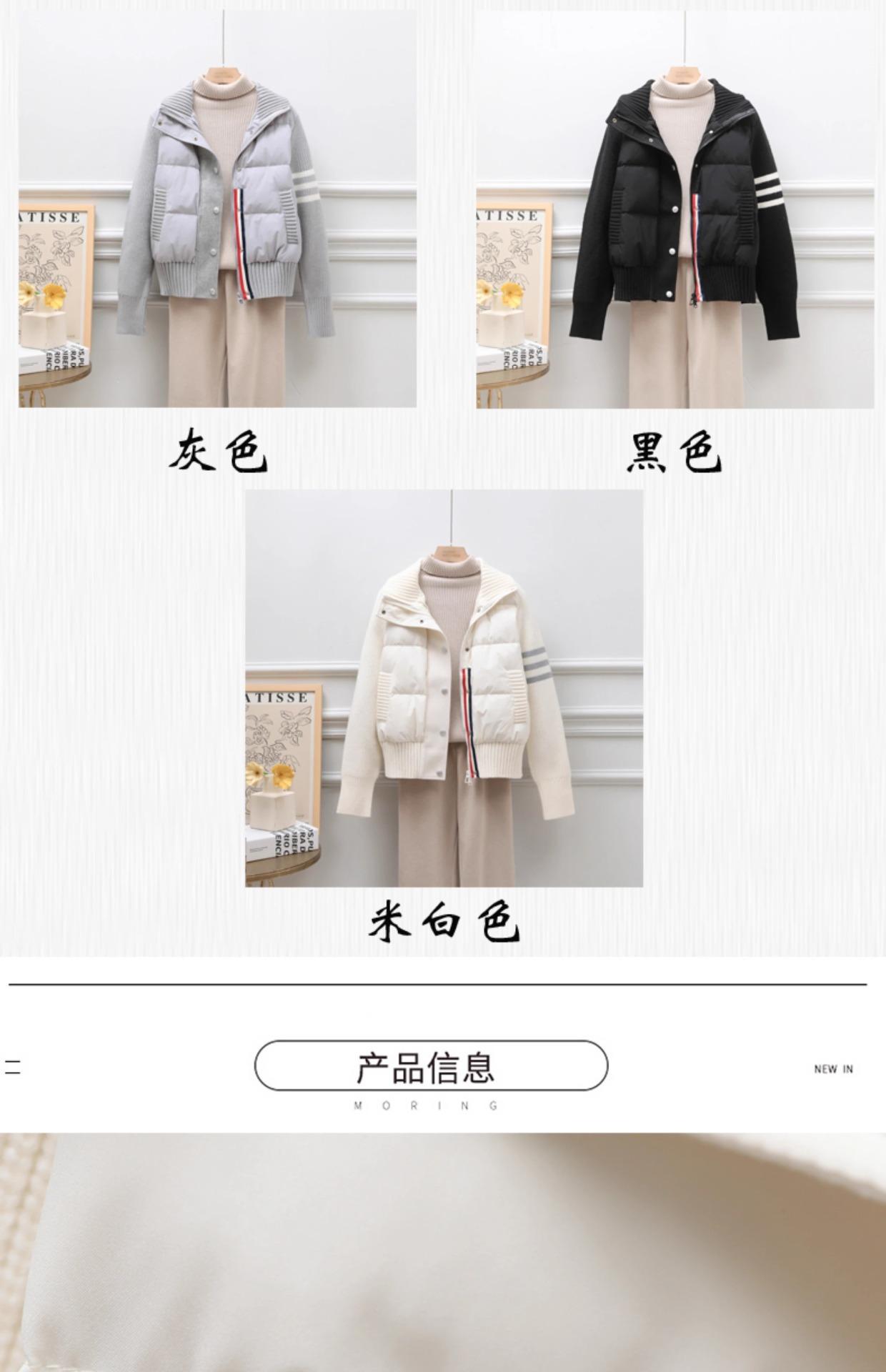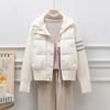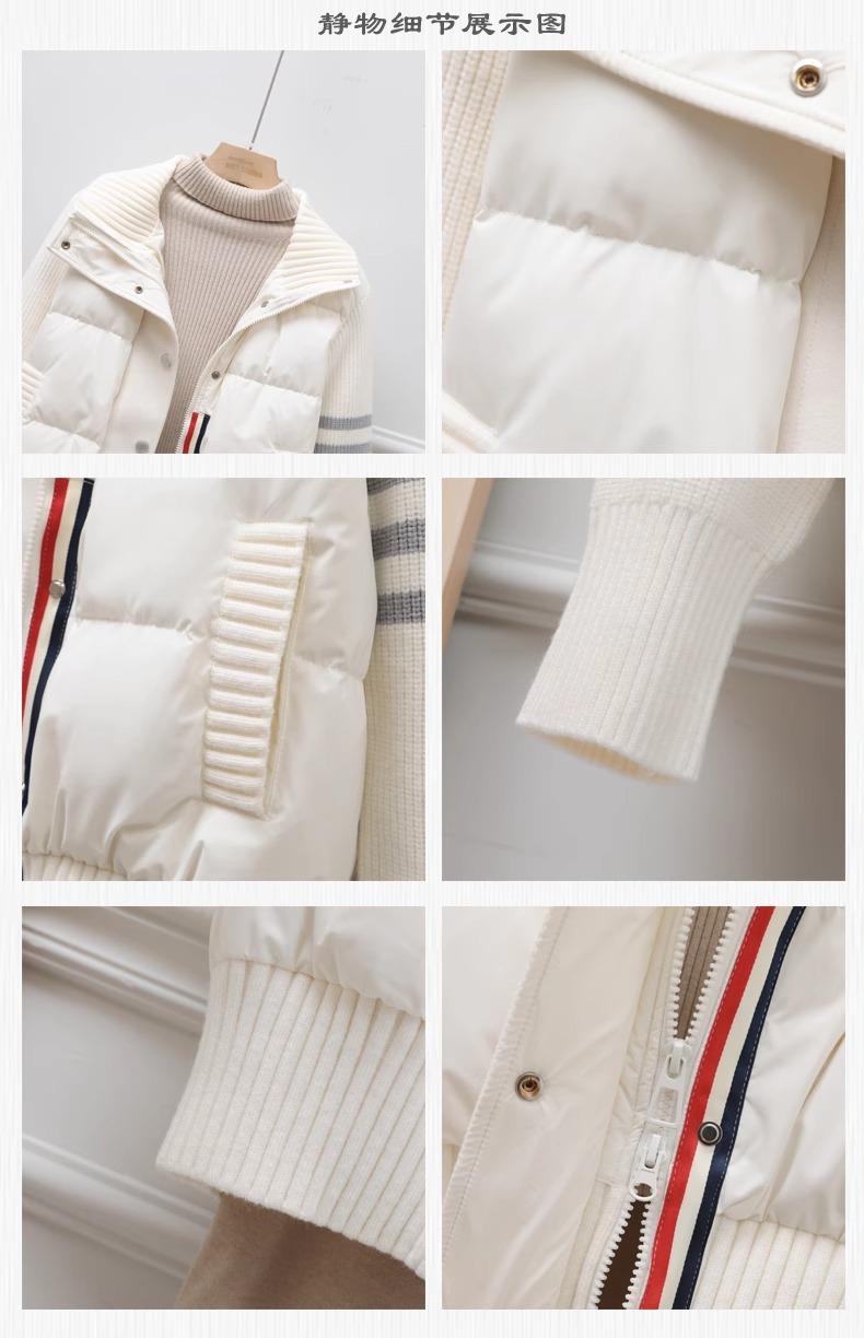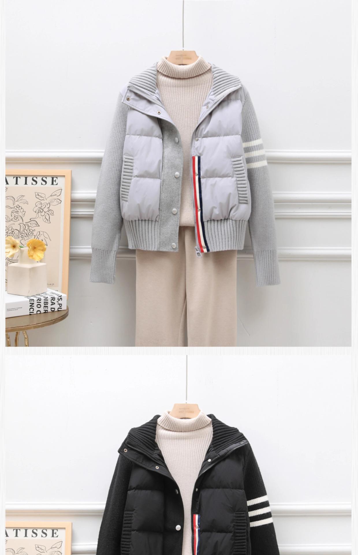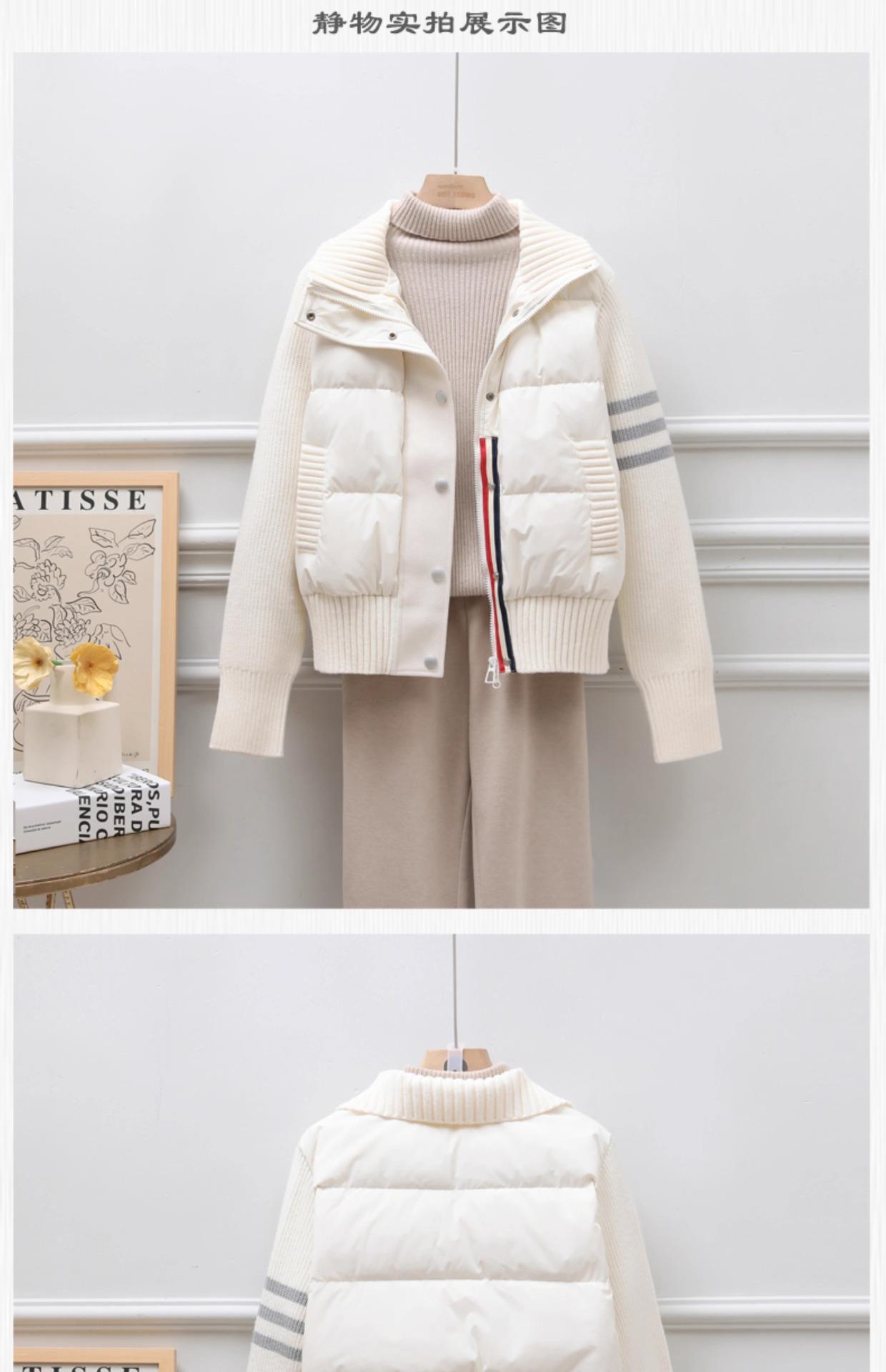 Chaqueta corta de plumón estilo coreano para mujeres petite, nuevo estilo otoño e invierno 2025, diseño patchwork de punto, ropa exterior nicho