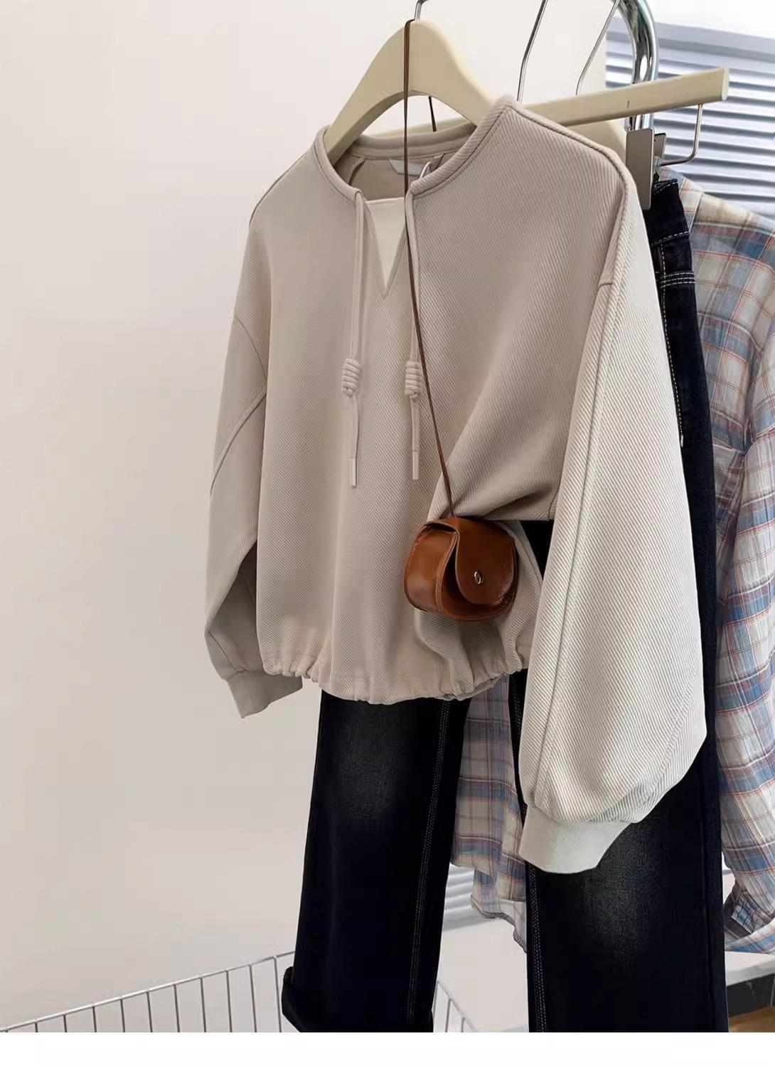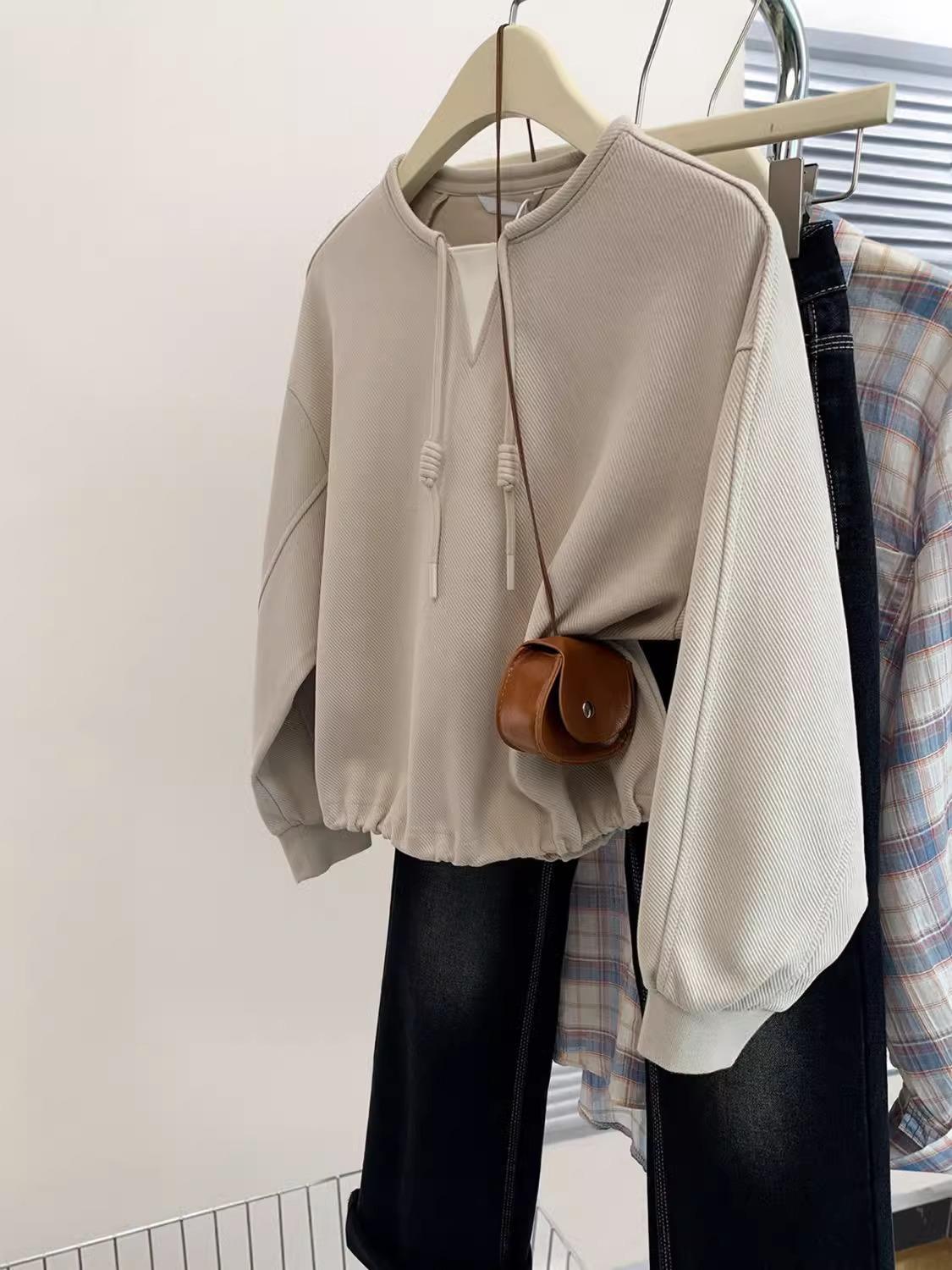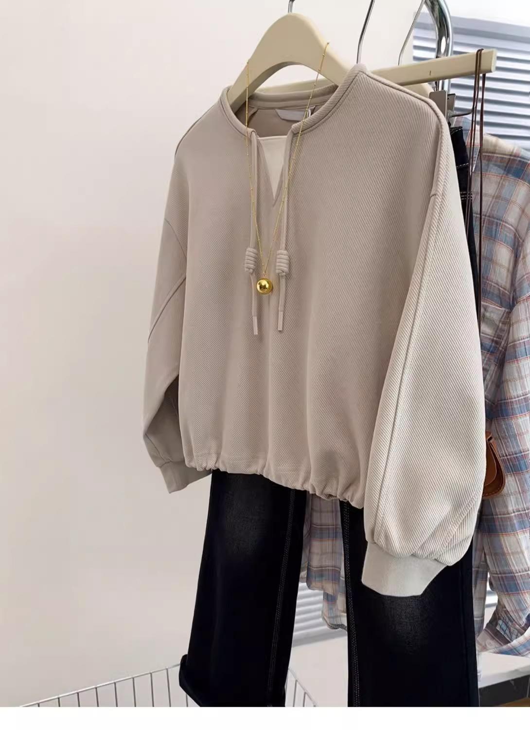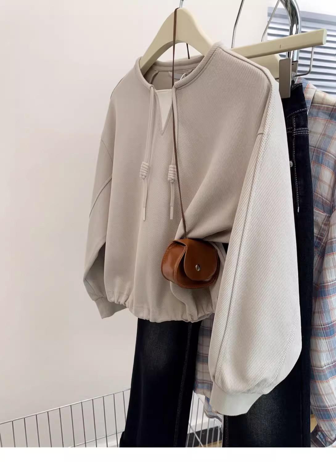 Sudadera original de trabajo de dos piezas con capucha para mujer Otoño 2024 Pequeña Suelta Manga larga Versátil