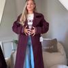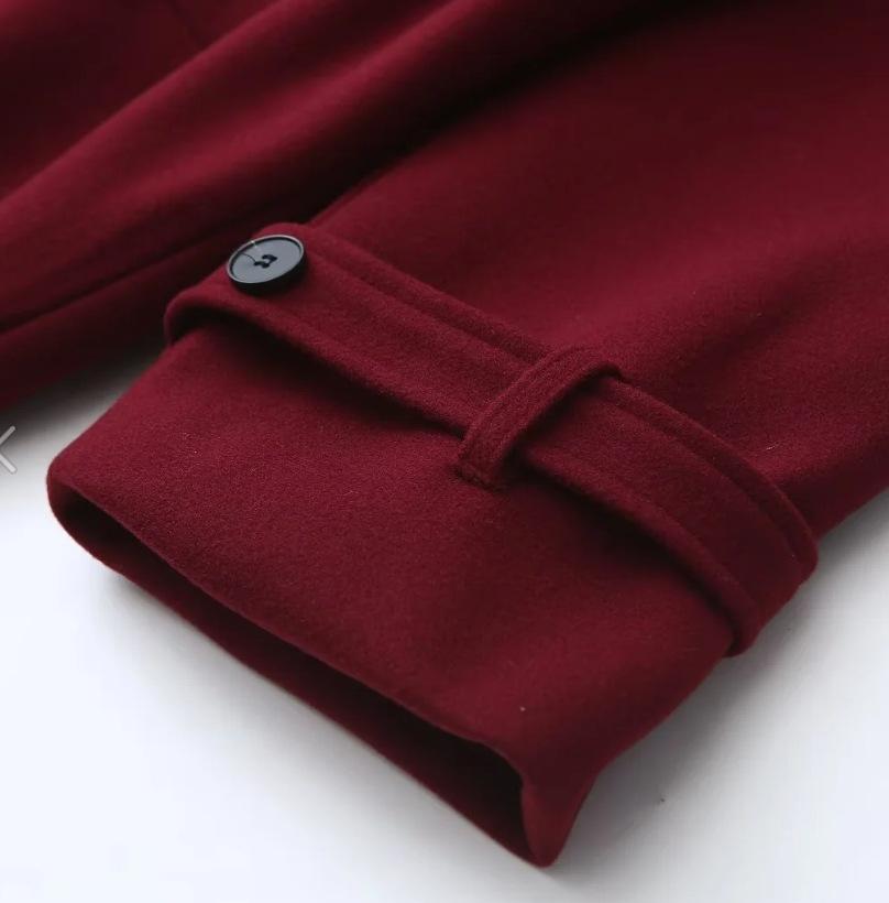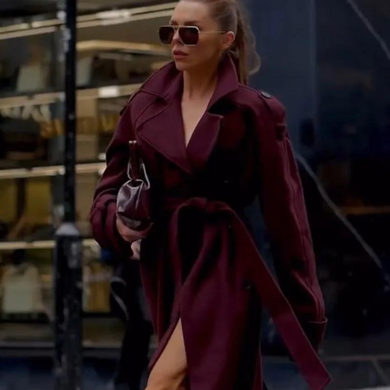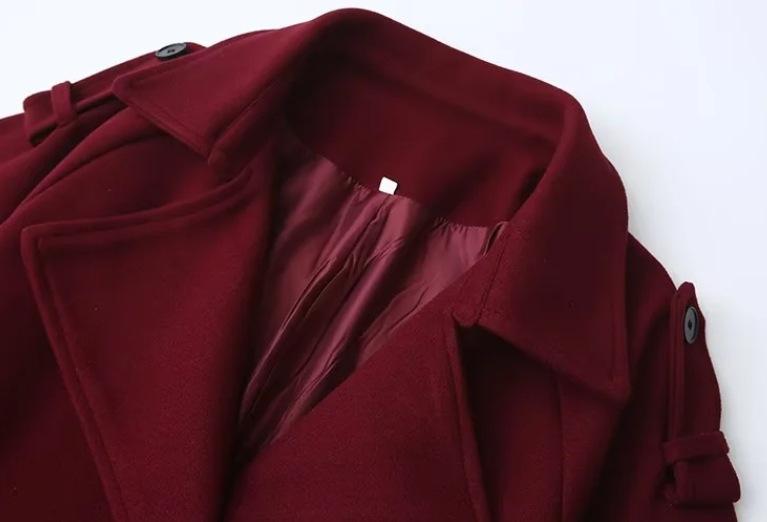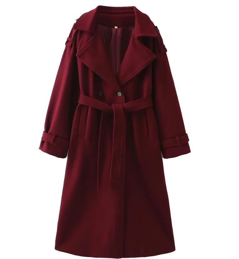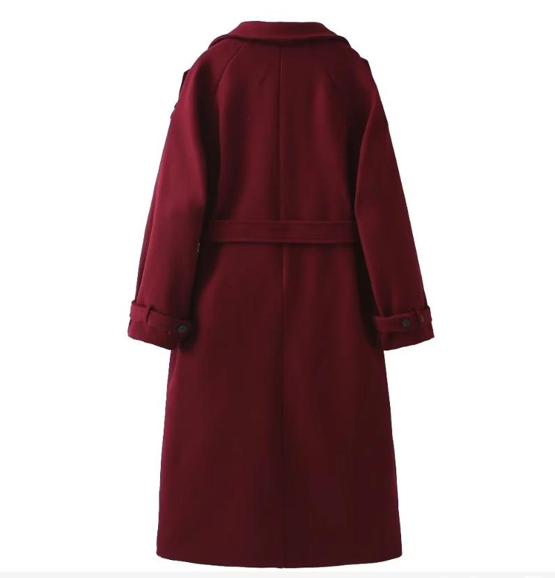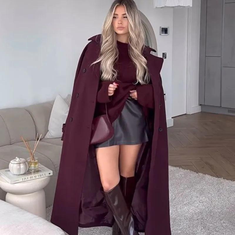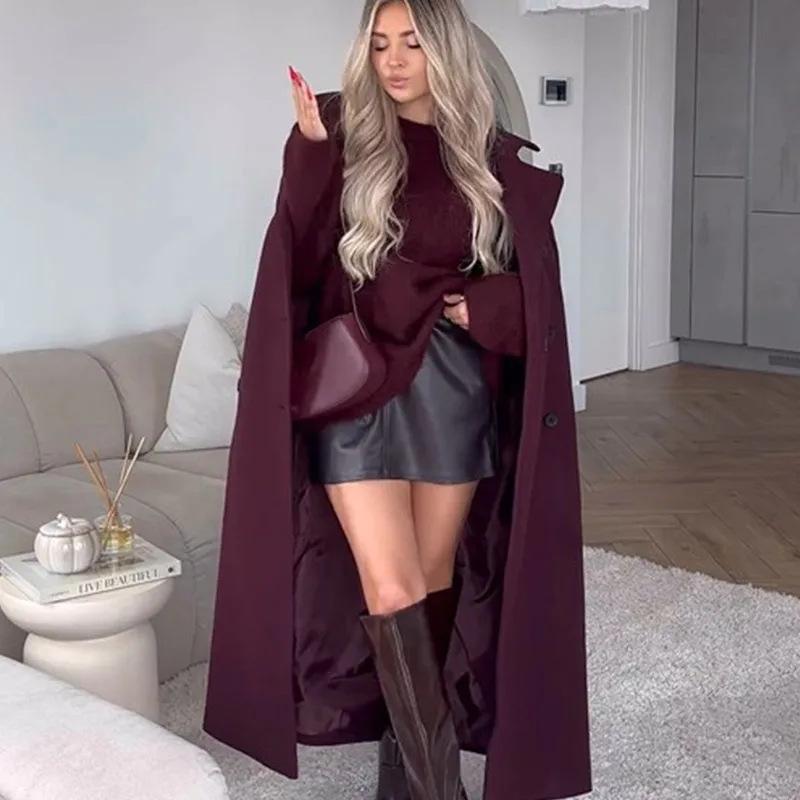 Ropa Europea y Americana Transfronteriza Aliexpress Popular Borgoña Suelto Solapa Manga Larga Abrigo de Un Botón