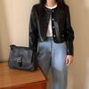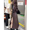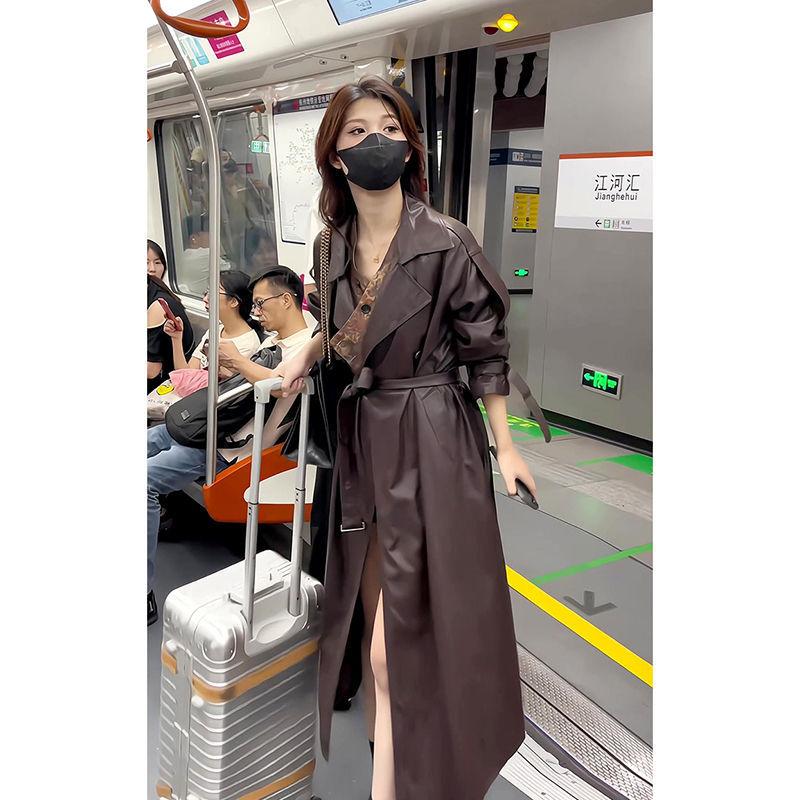 Chaqueta de Cuero Retro para Mujer 2025 Otoño Nuevo Diseño Estilo Coreano Moda Más Fácil de Combinar Solapa Cortavientos Abrigo Largo