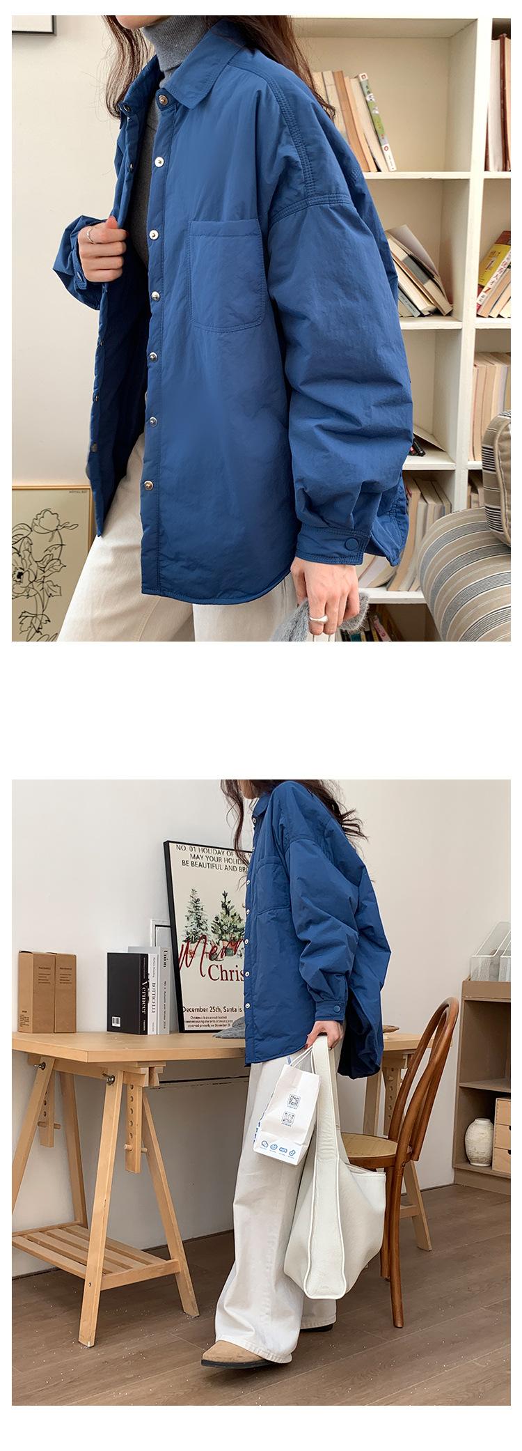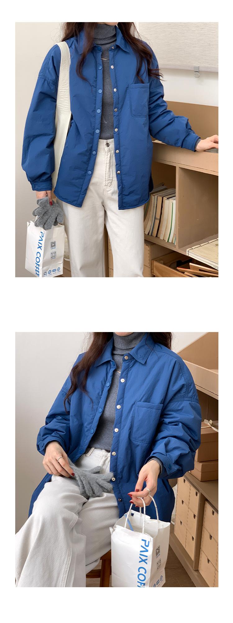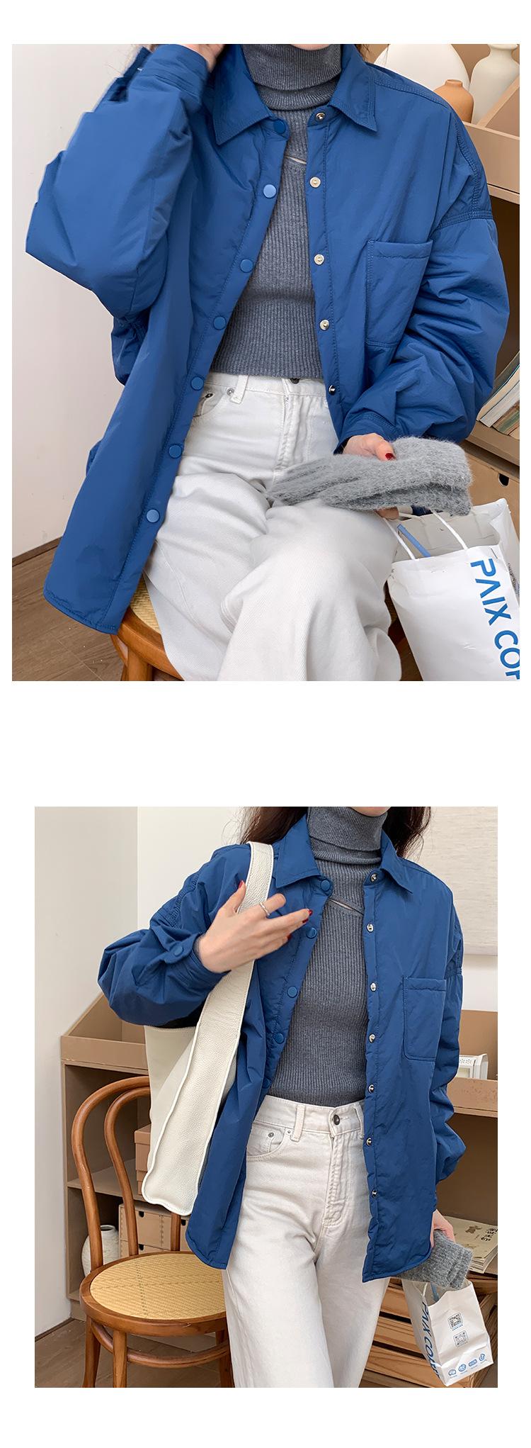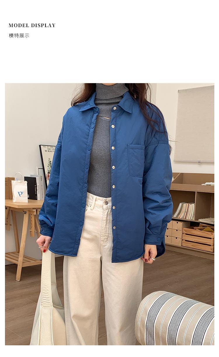 Chaqueta Camisera Acolchada Holgada Azul Klein de Alta Gama para Mujer Invierno Nuevo Estilo Coreano Camisa de Algodón Cálida