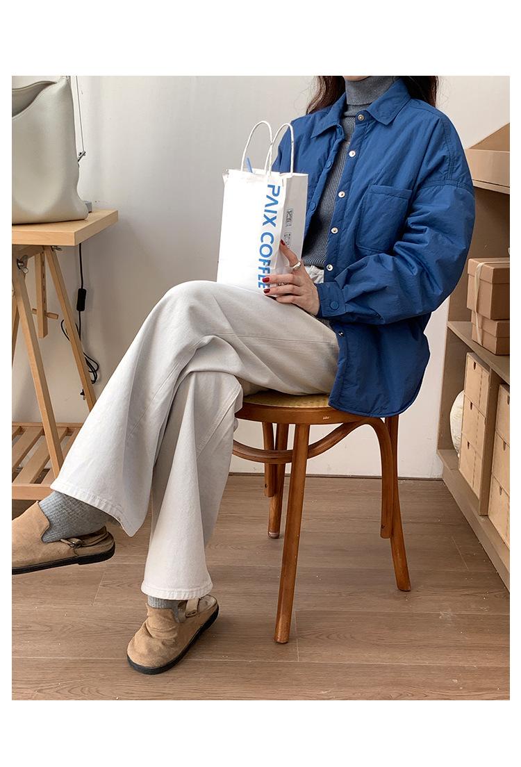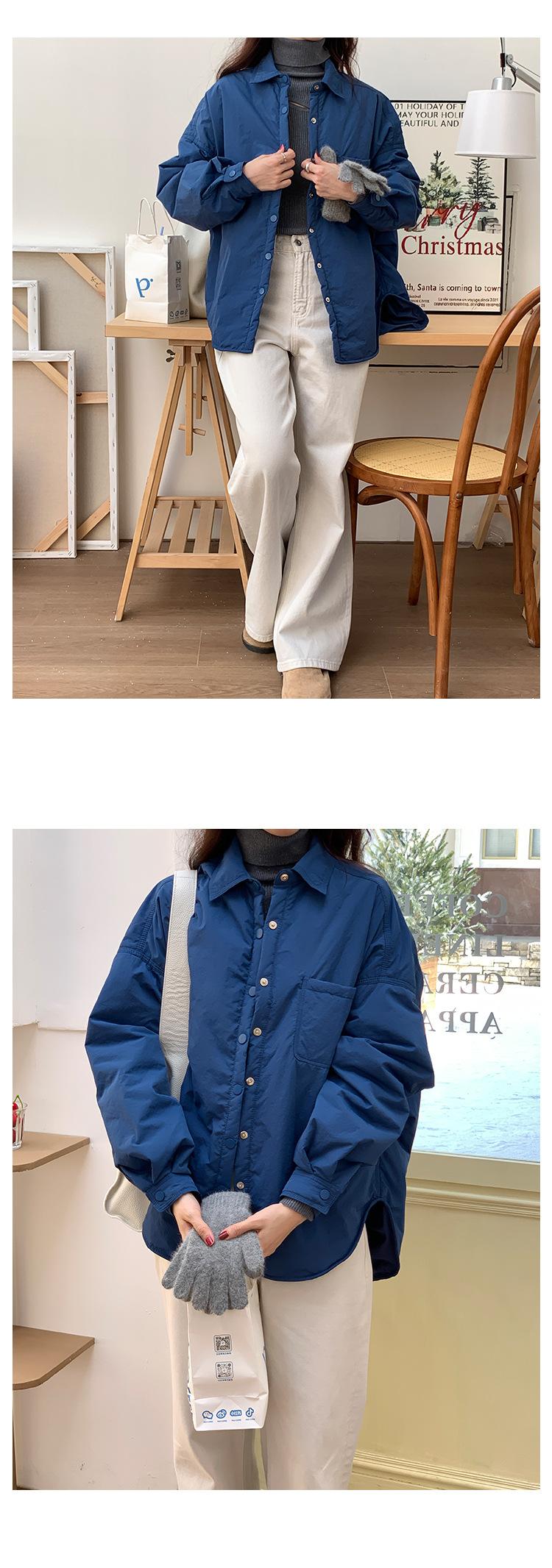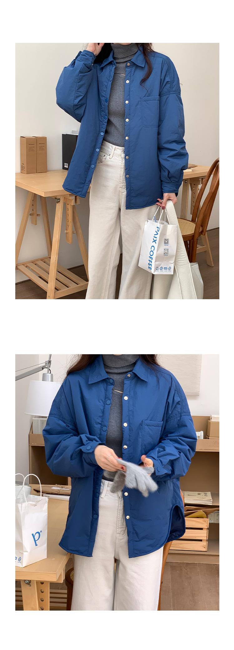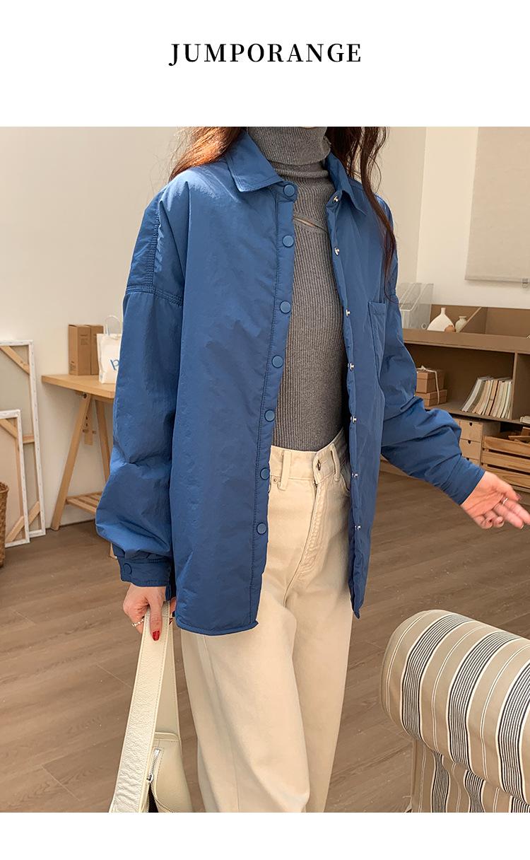 Chaqueta Camisera Acolchada Holgada Azul Klein de Alta Gama para Mujer Invierno Nuevo Estilo Coreano Camisa de Algodón Cálida