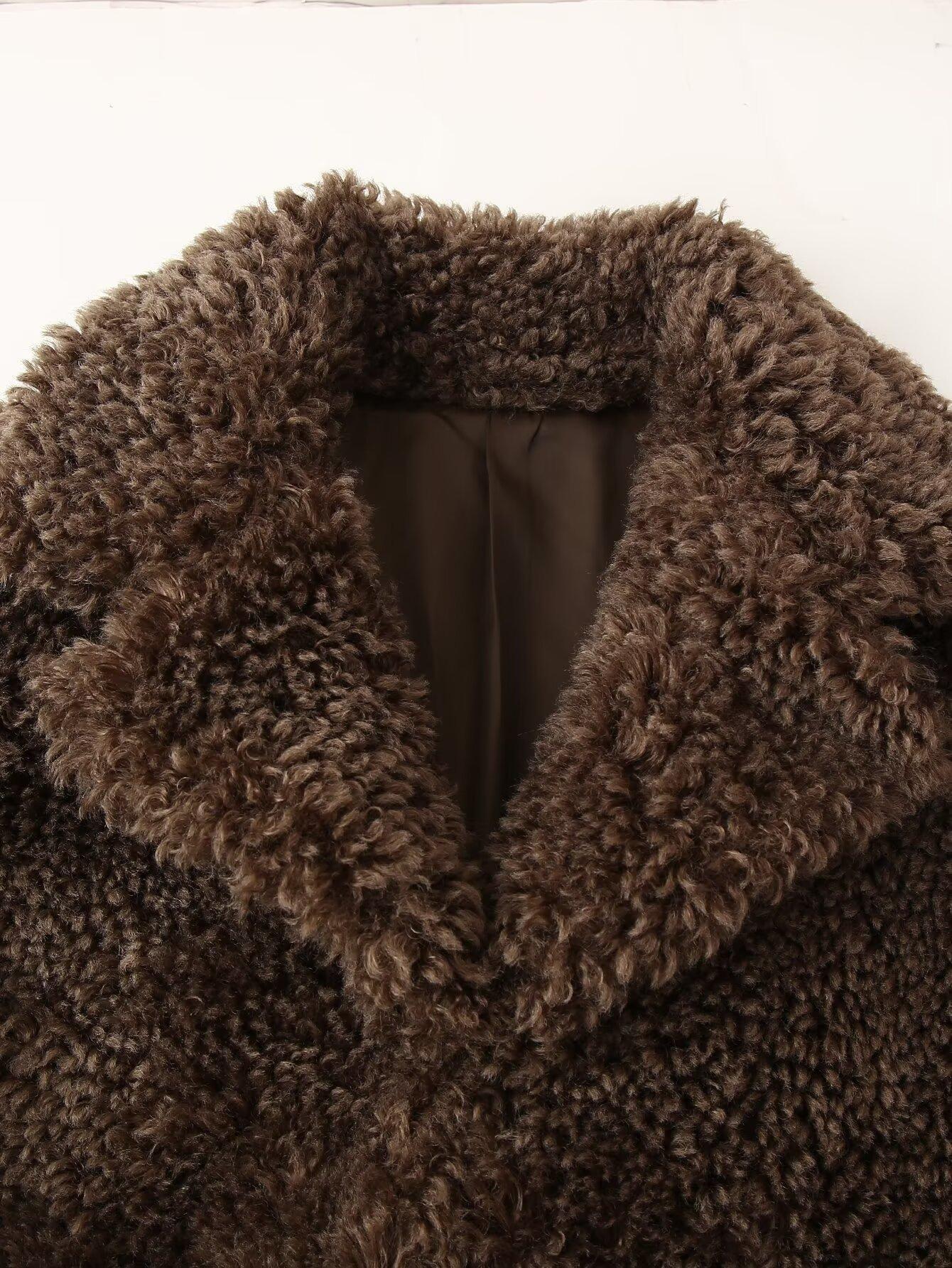 Abrigo corto con efecto de piel sintética para mujer, otoño e invierno 2024, estilo transfronterizo europeo y americano, W028 6526