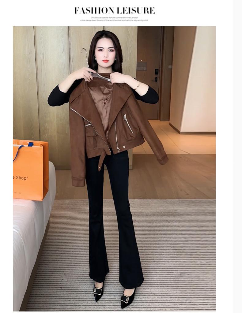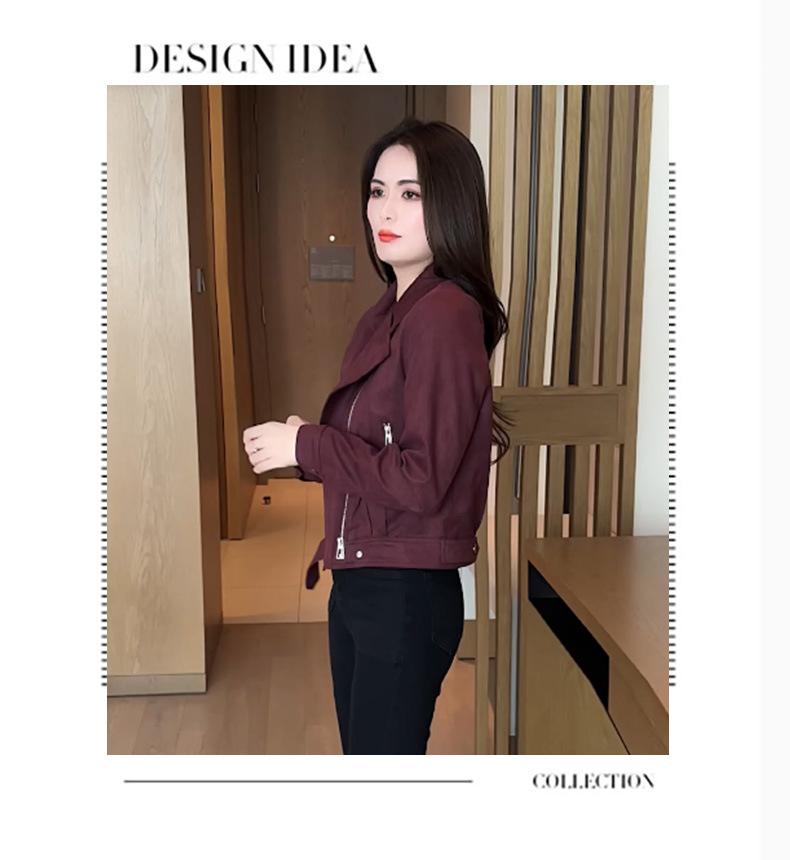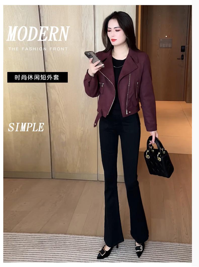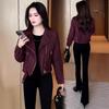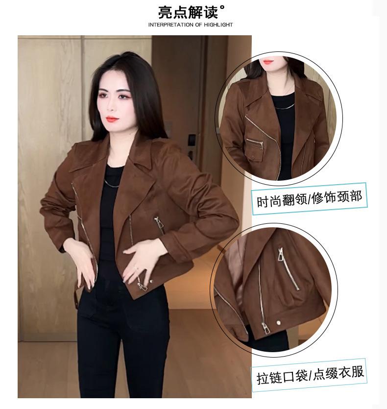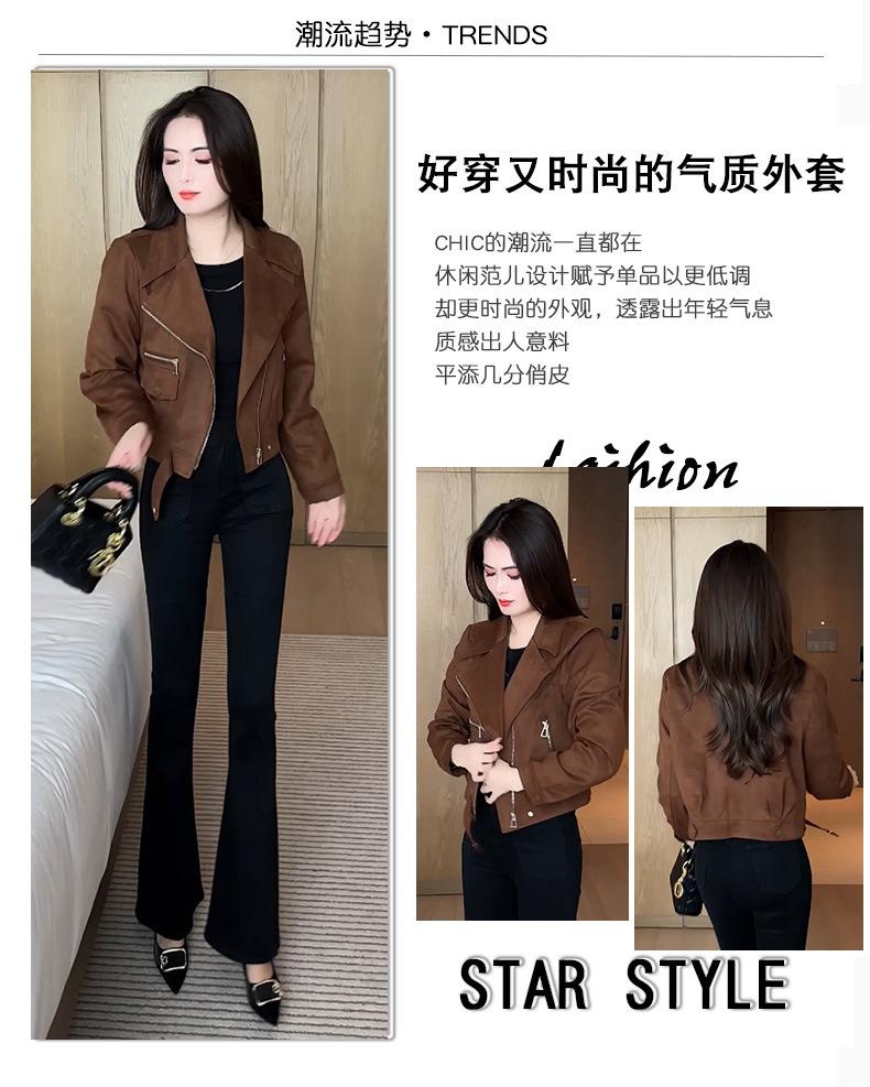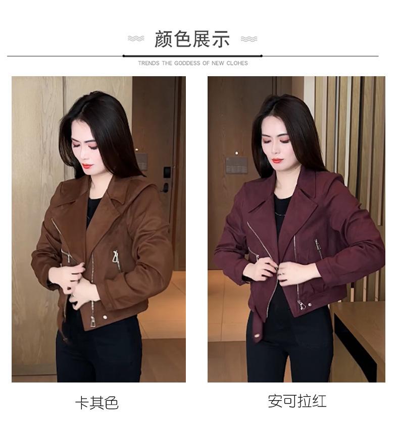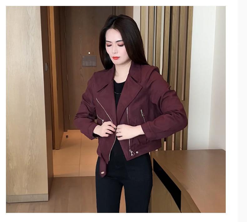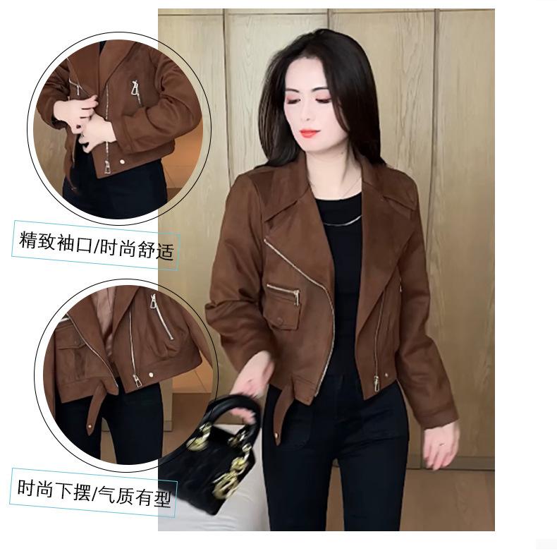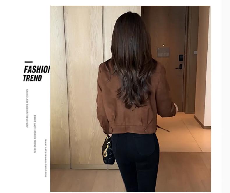 Abrigo Corto de Gamuza para Mujer 2024 Otoño Nuevo Estilo Slim y Versátil Chaqueta de Cuero de Motociclista Top Trendy