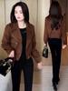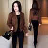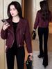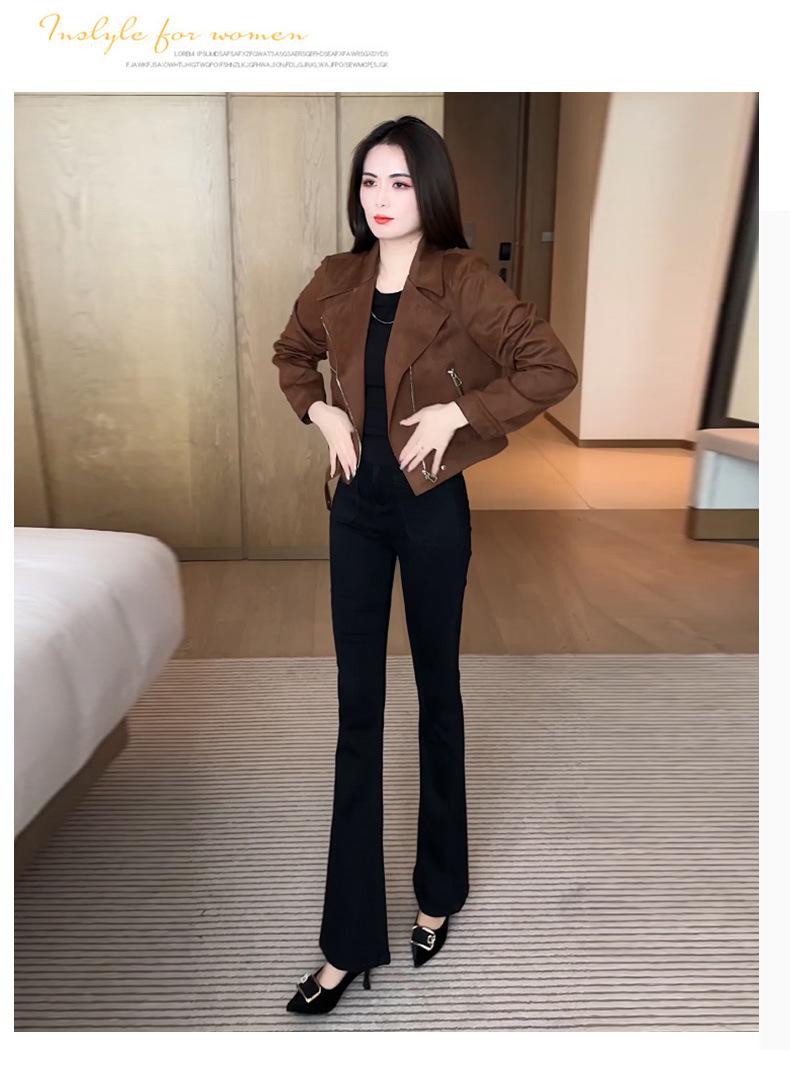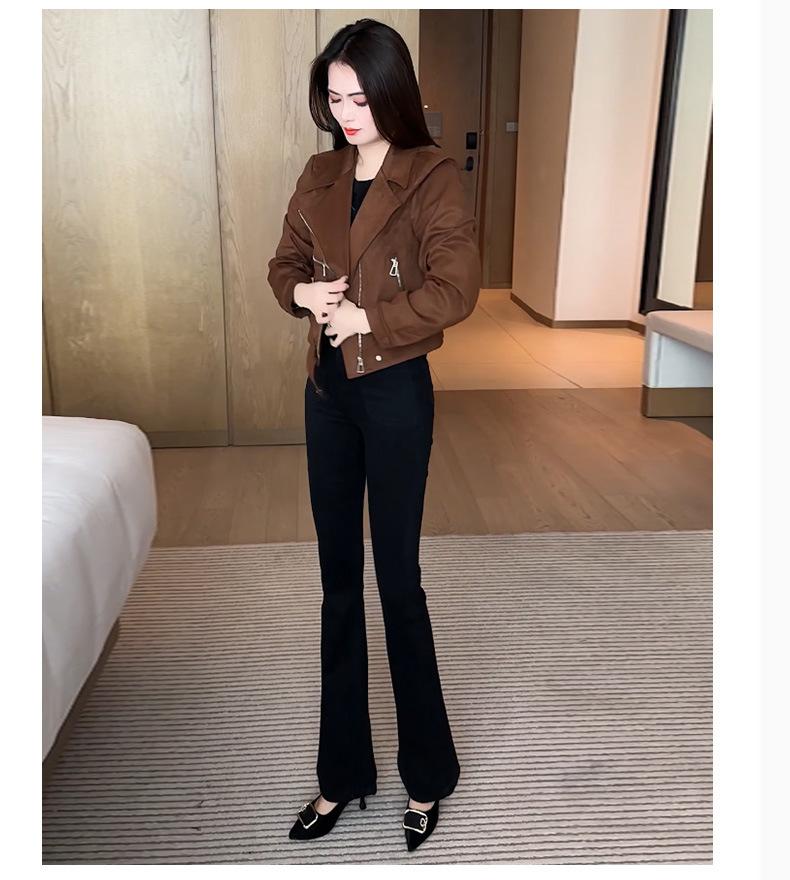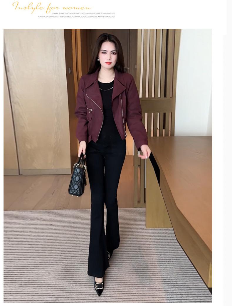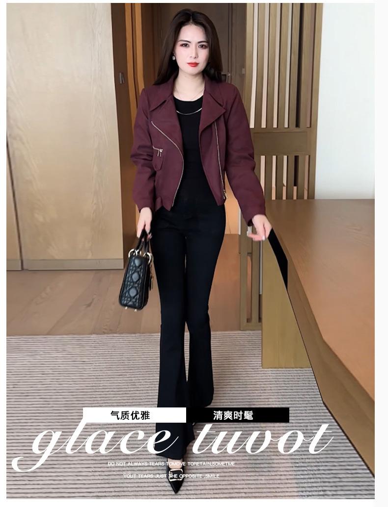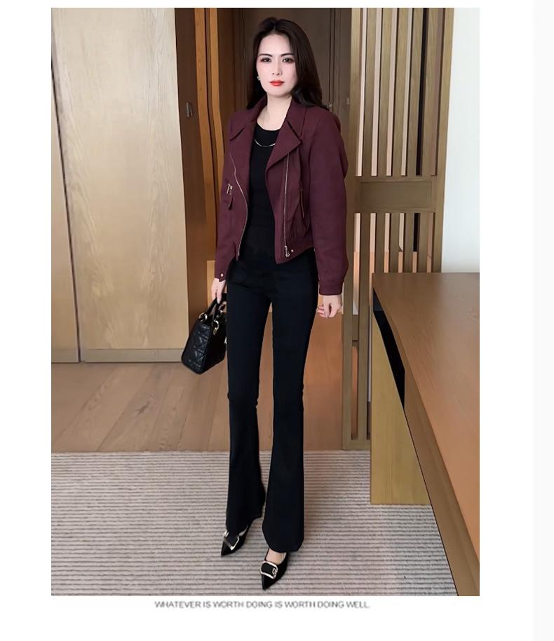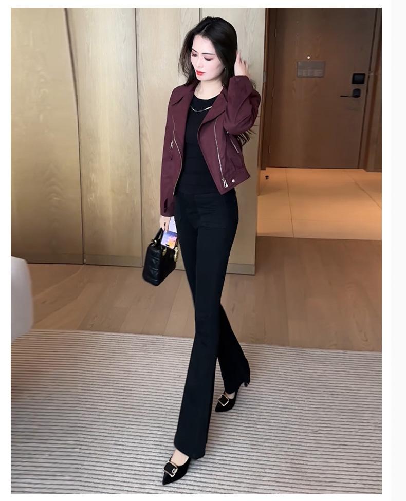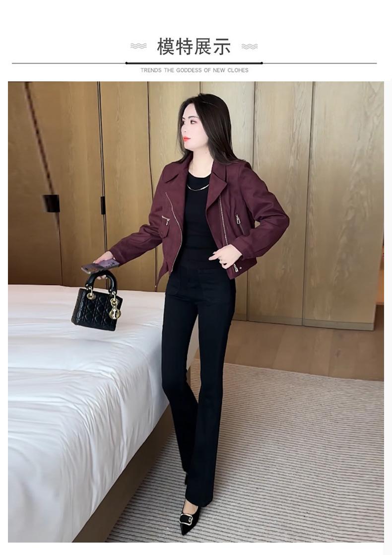 Abrigo Corto de Gamuza para Mujer 2024 Otoño Nuevo Estilo Slim y Versátil Chaqueta de Cuero de Motociclista Top Trendy