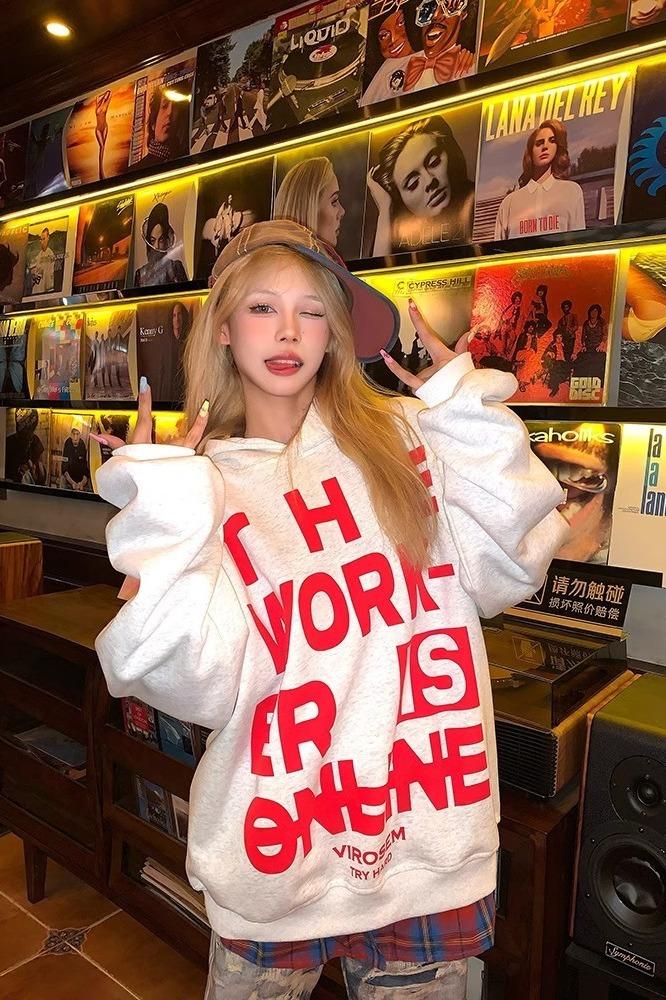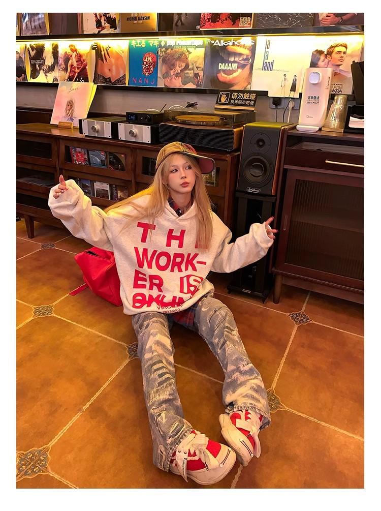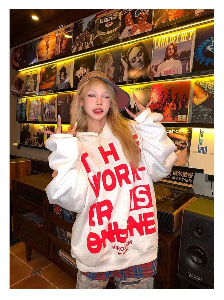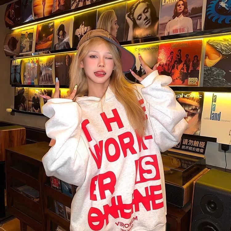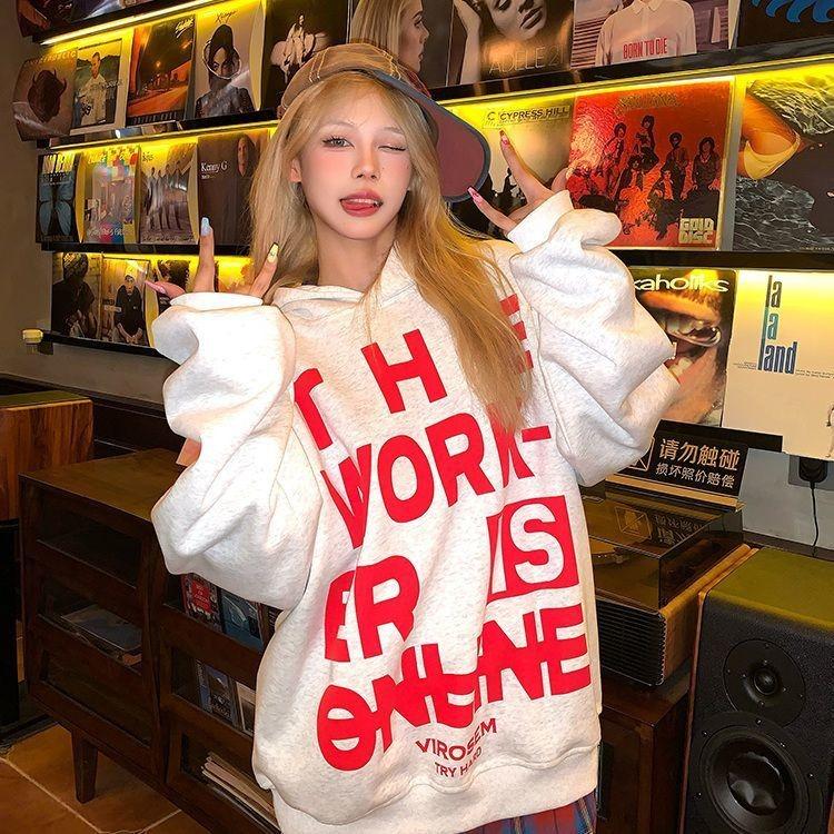 Sudadera con capucha retro estilo Hong Kong, nueva, holgada, combinable con todo, de marca nacional, estilo americano, para mujer, de principios de otoño, holgada, a la moda.