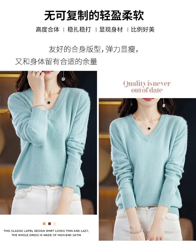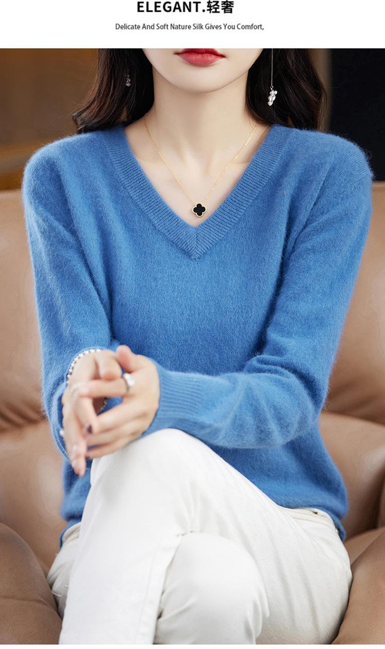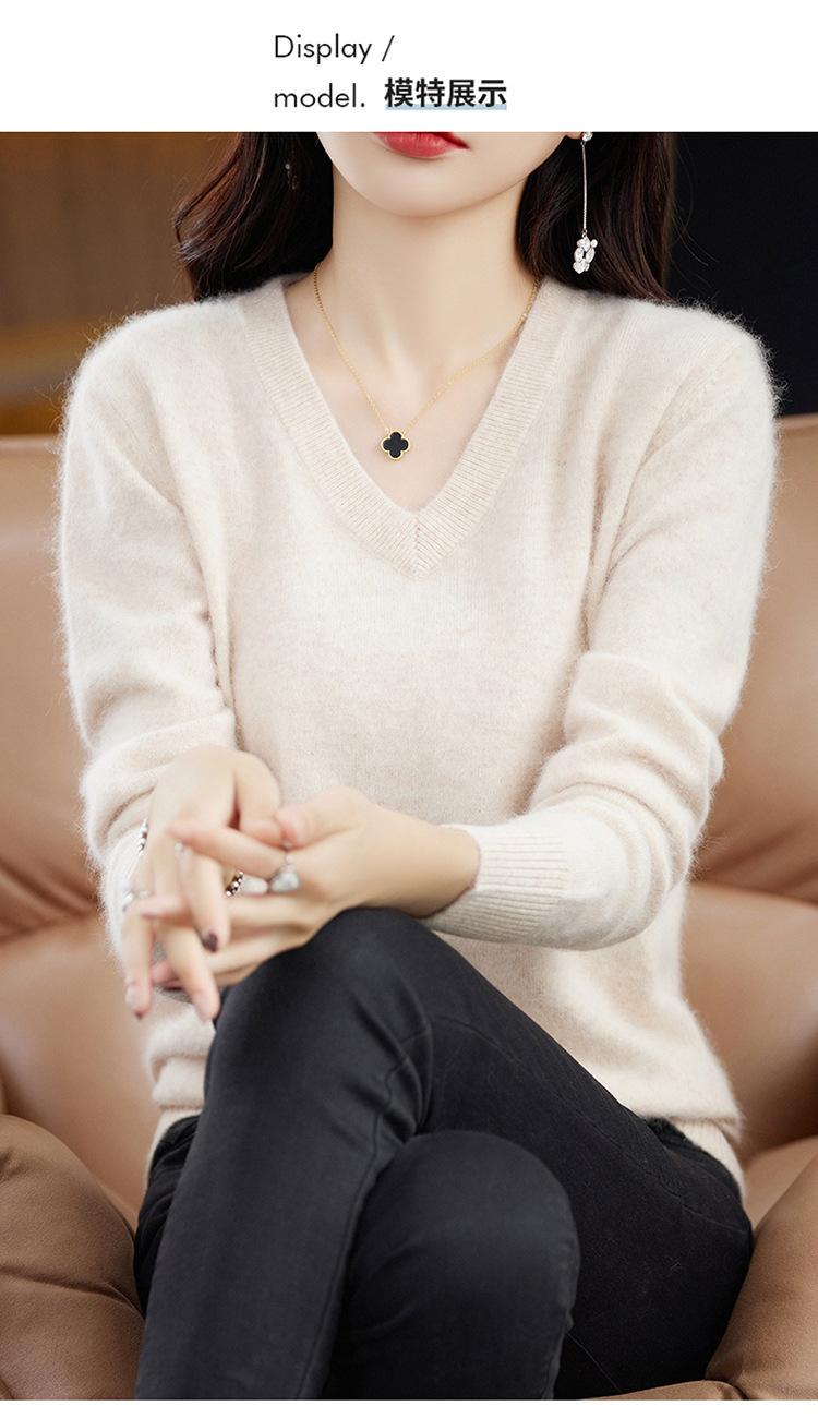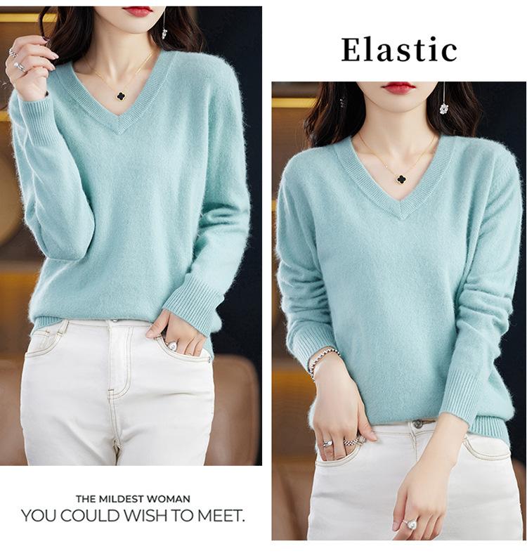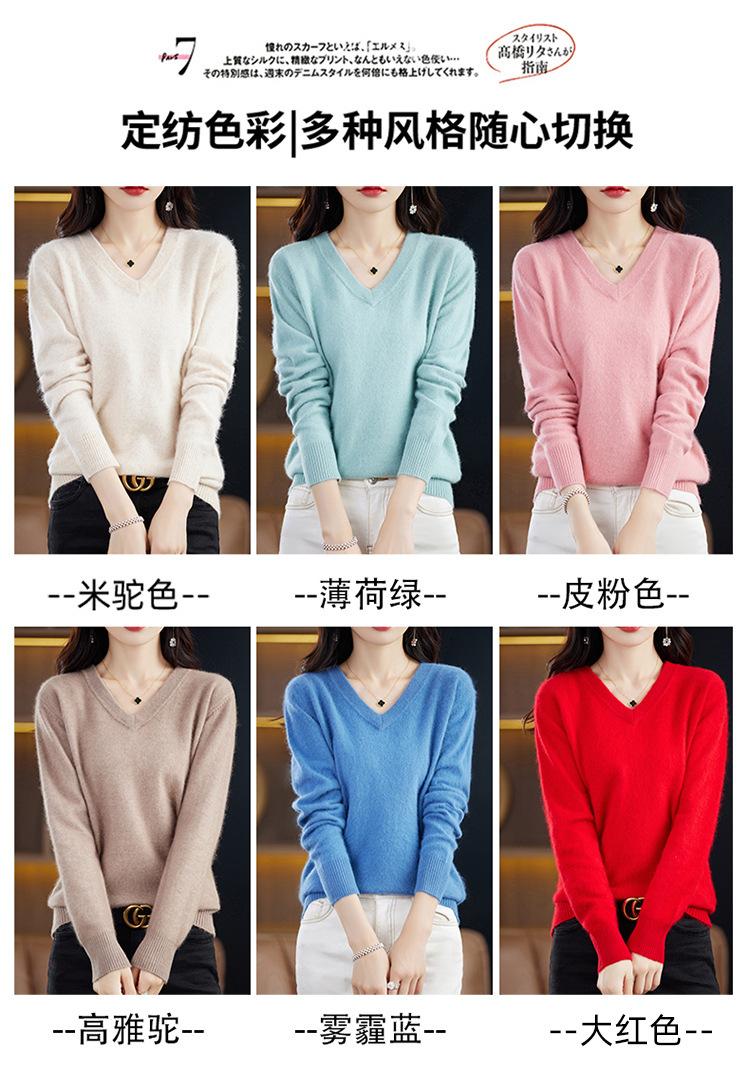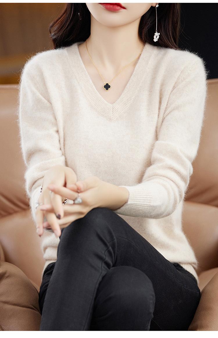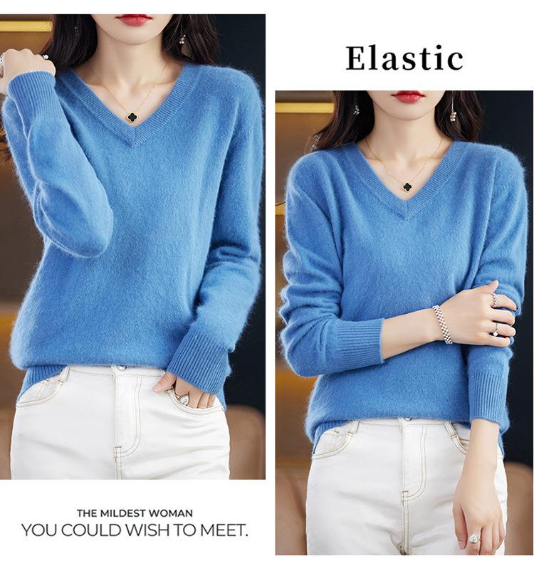 Venta al por mayor 24 otoño e invierno nuevo suéter de visón para mujer cuello en V suelto corto color sólido suéter base cálido suéter de punto