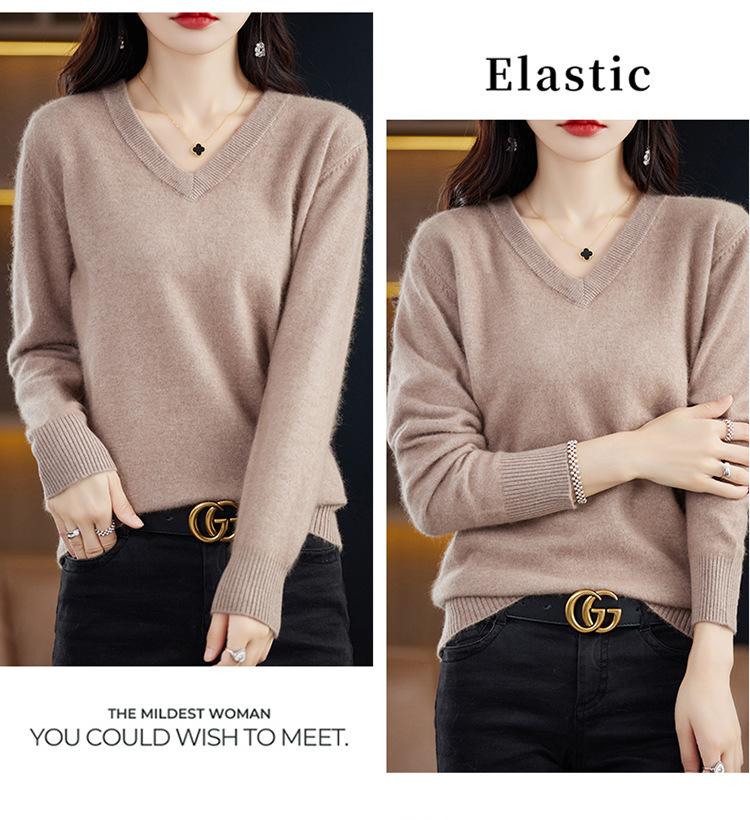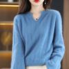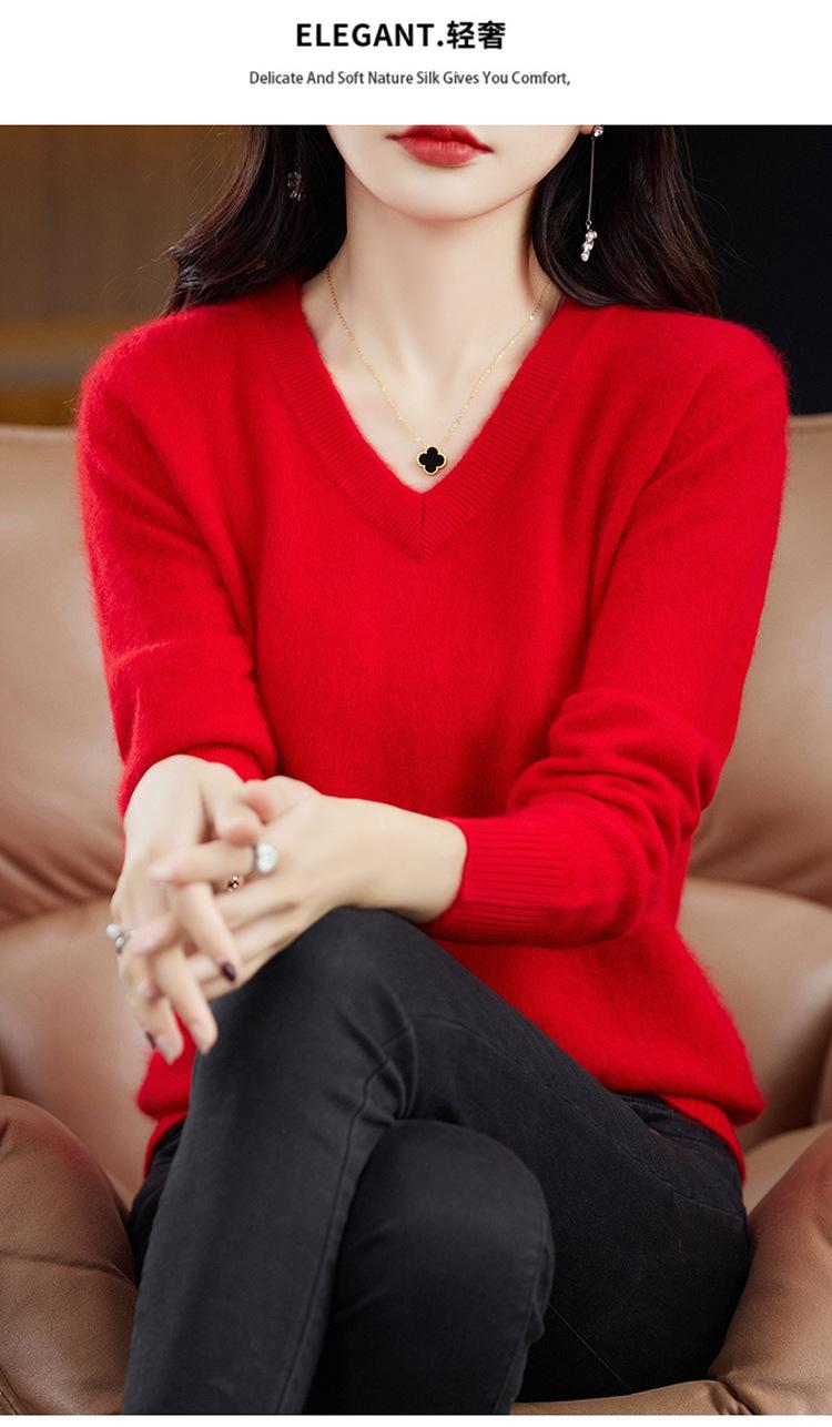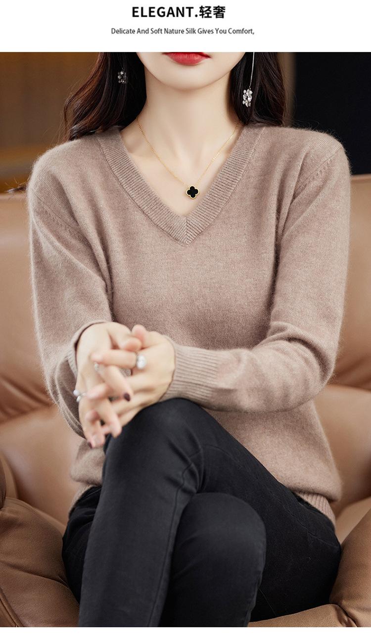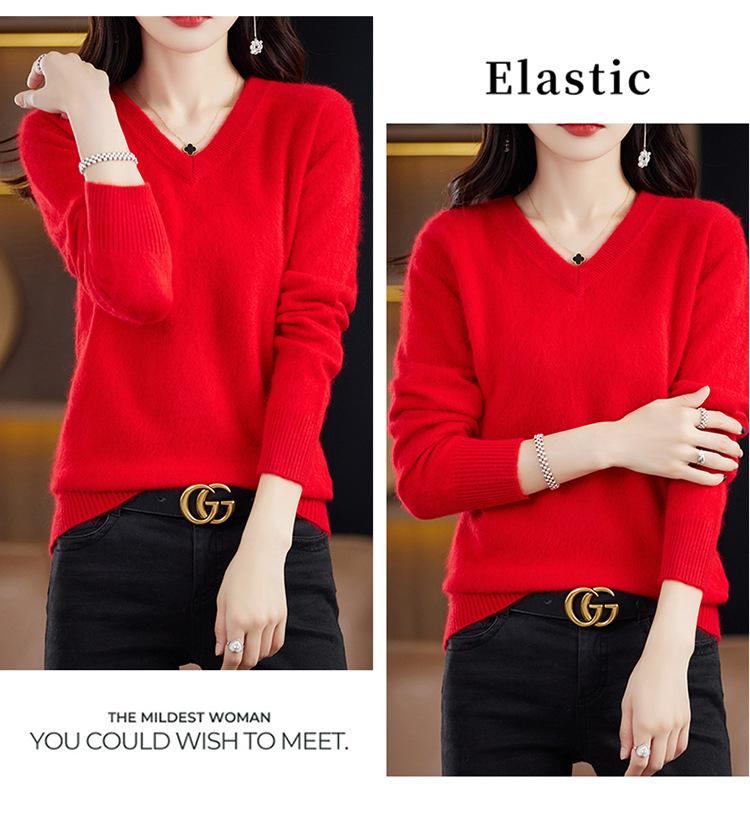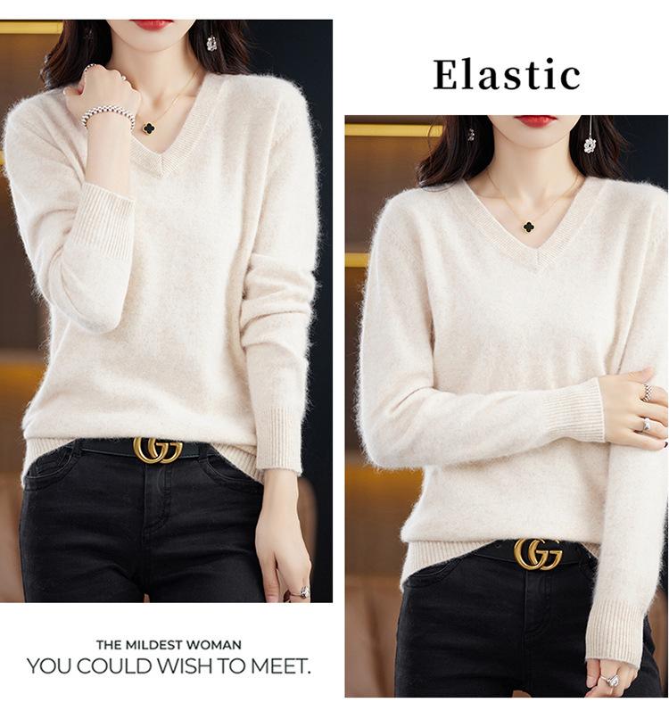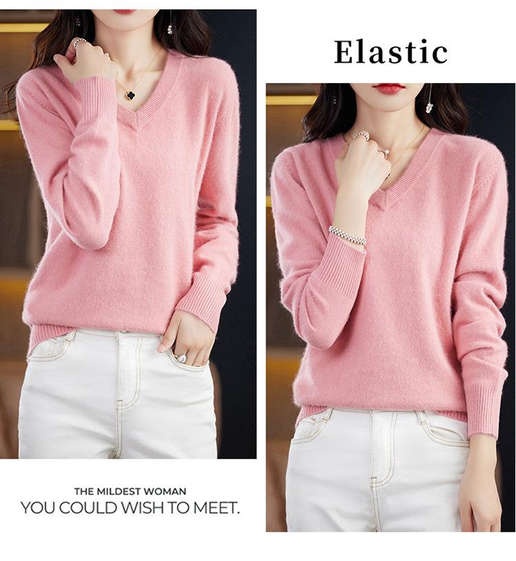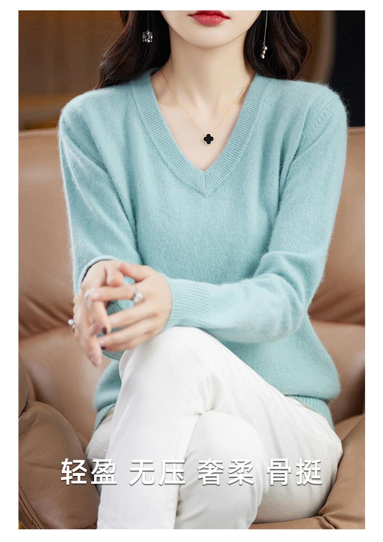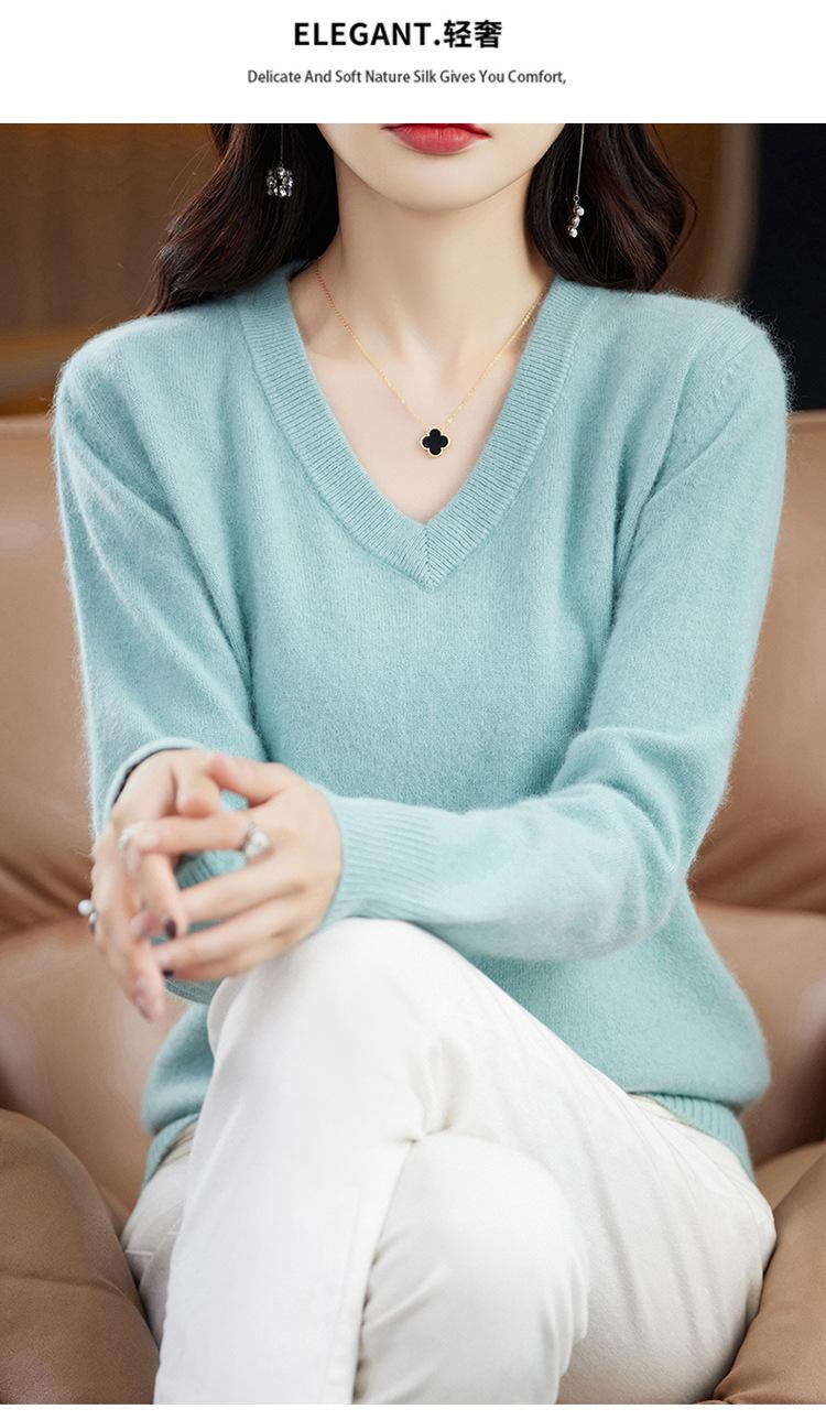 Venta al por mayor 24 otoño e invierno nuevo suéter de visón para mujer cuello en V suelto corto color sólido suéter base cálido suéter de punto