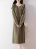 Vestido de lana de manga larga de talla grande, cuello redondo, por encima de la rodilla, holgado, nuevo estilo, grueso, de longitud media, para otoño e invierno, de punto, falda recta