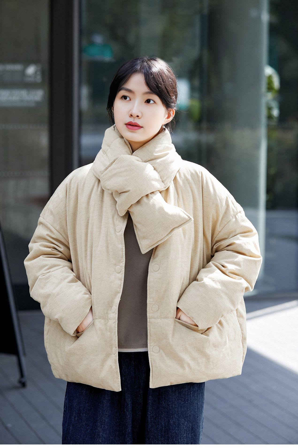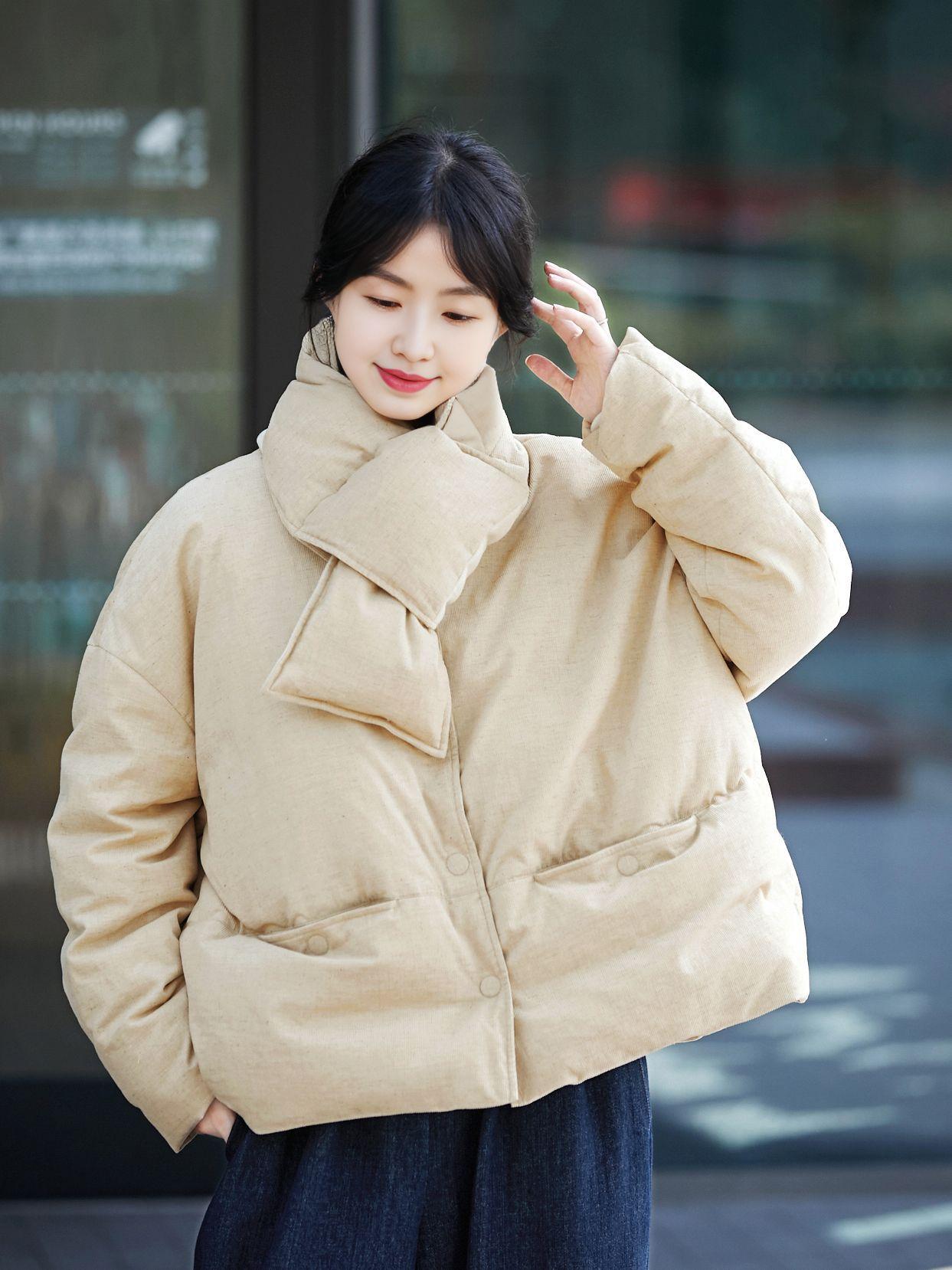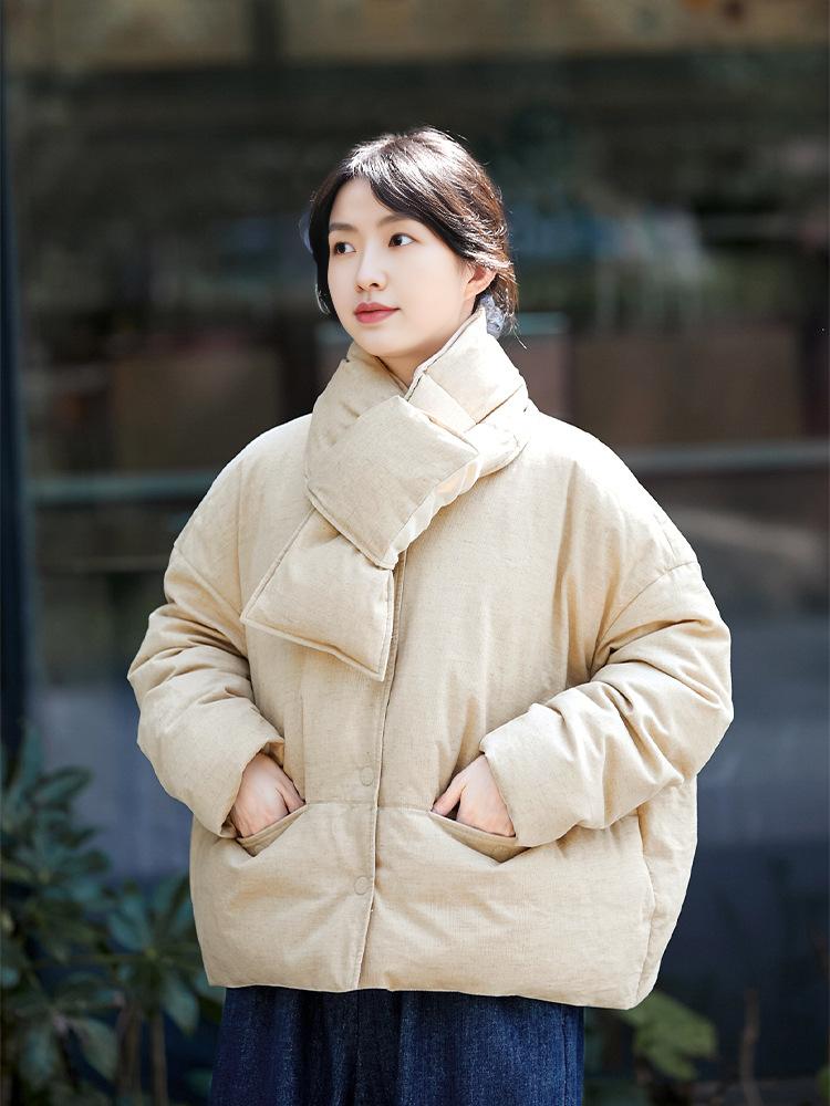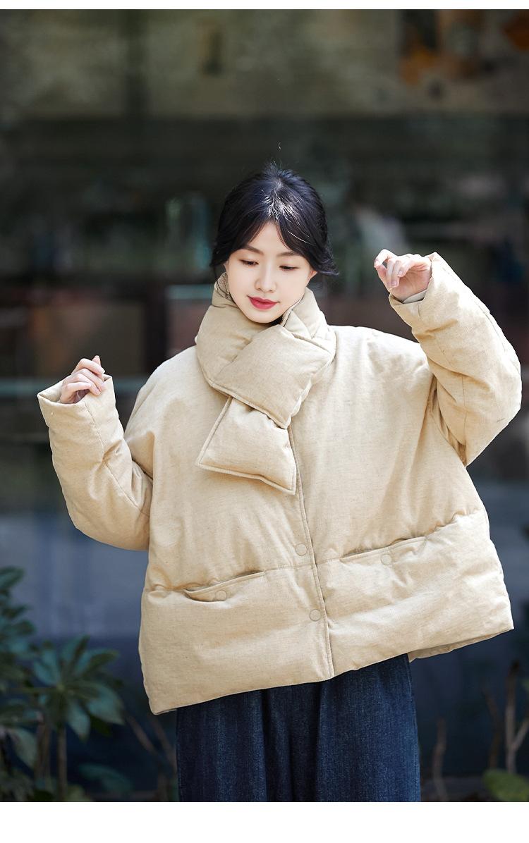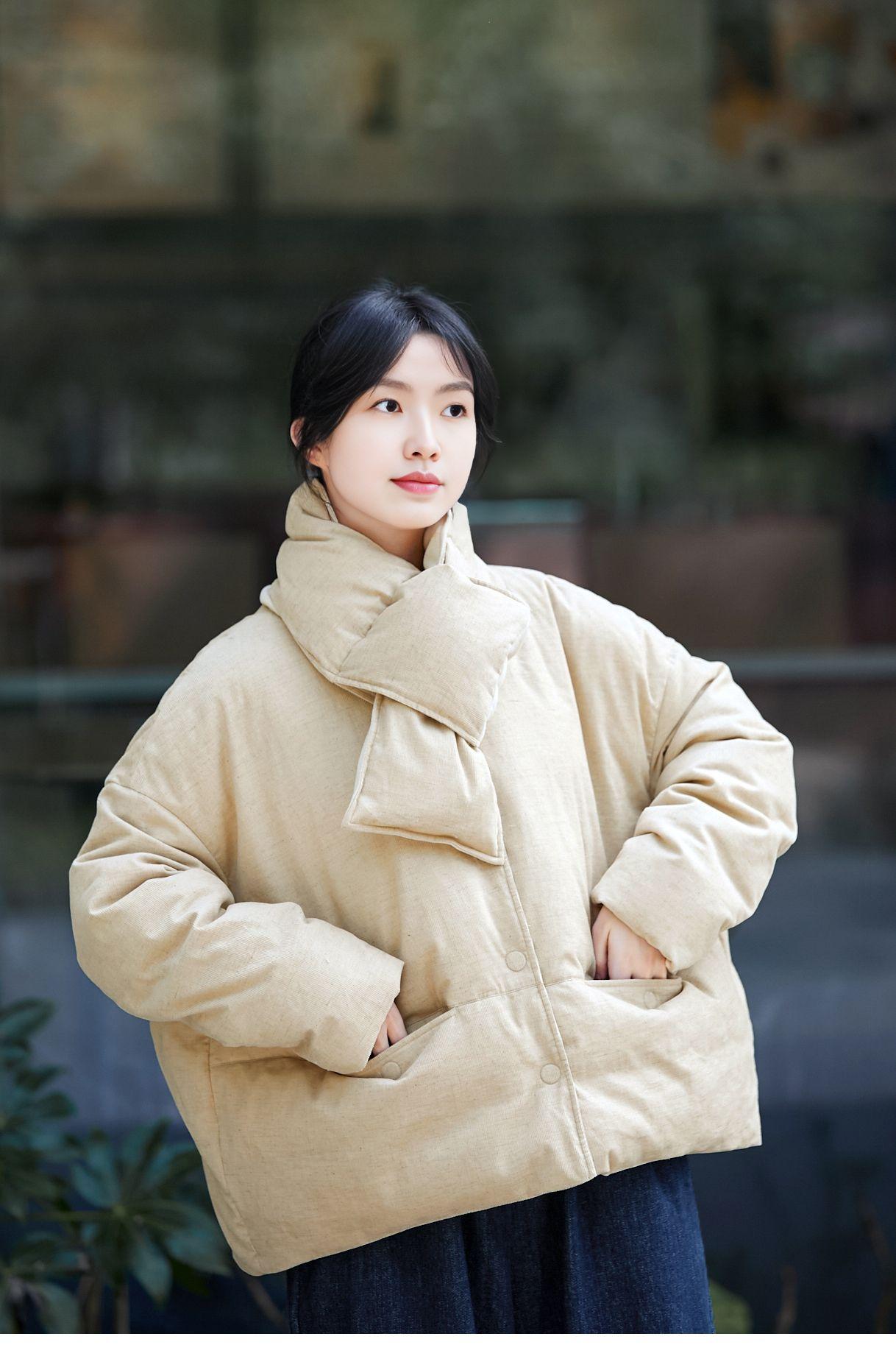Park hemp color down jacket, Plain hemp scarf