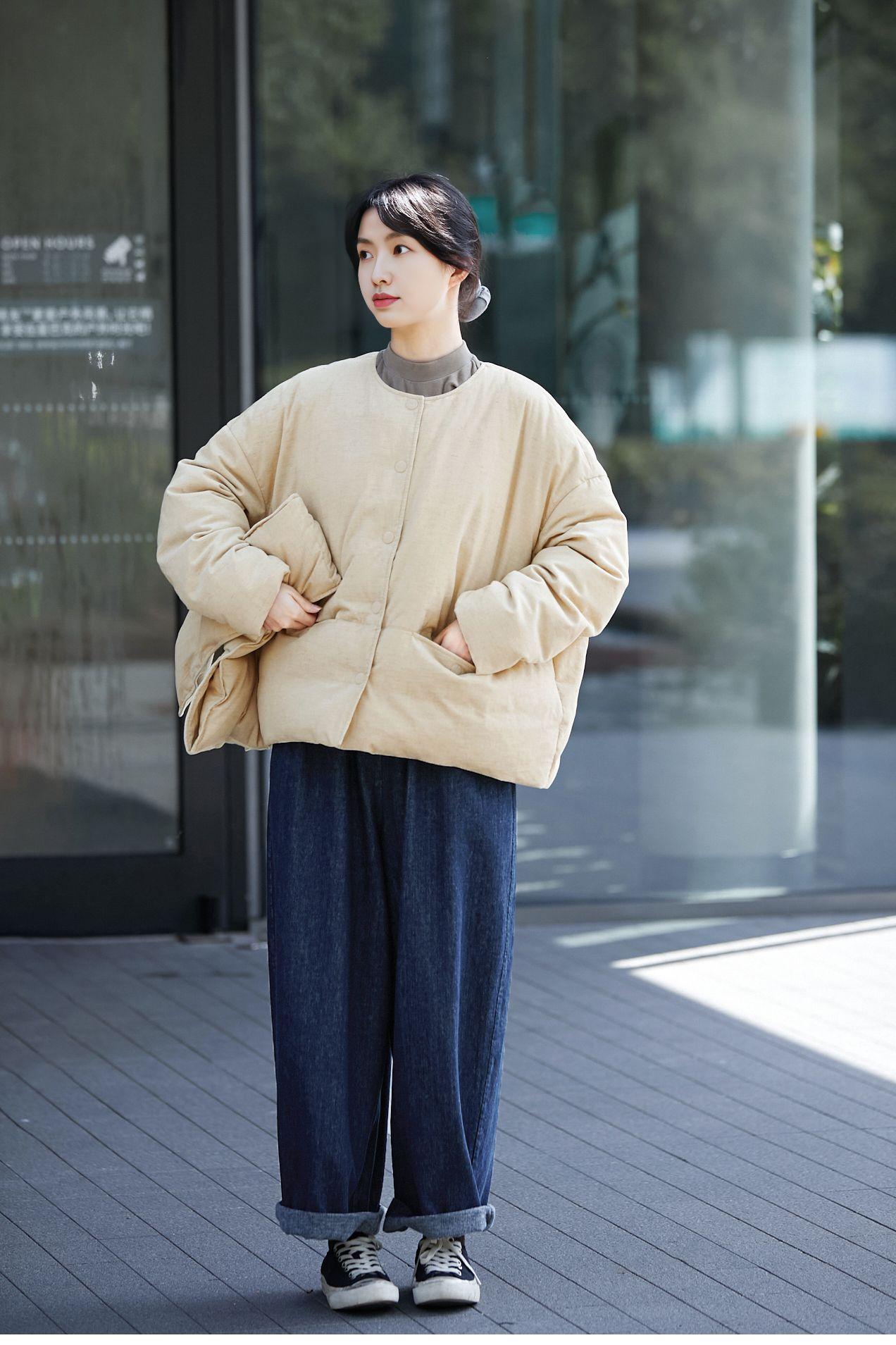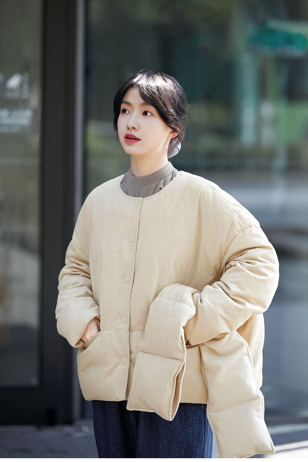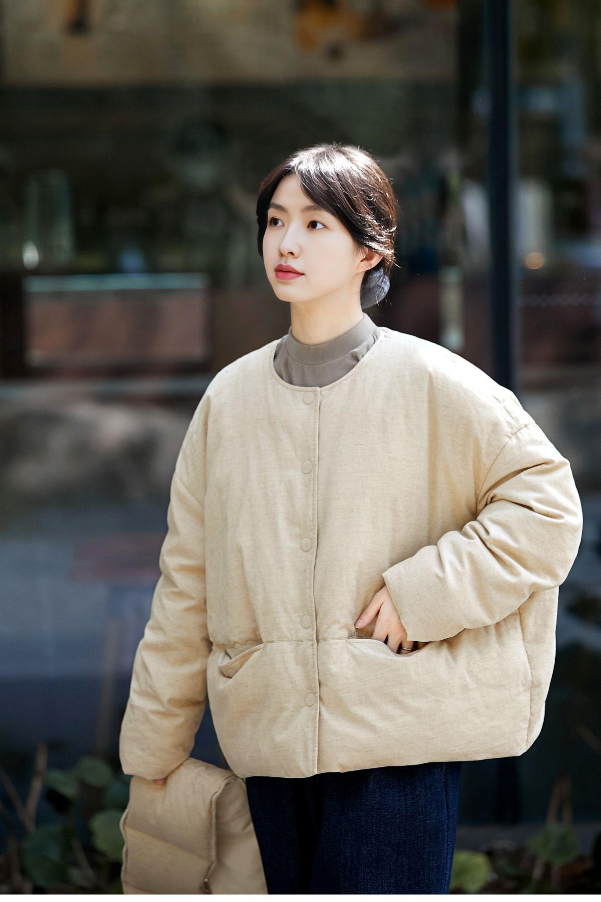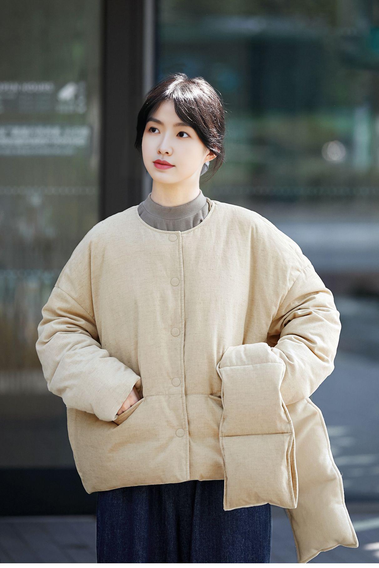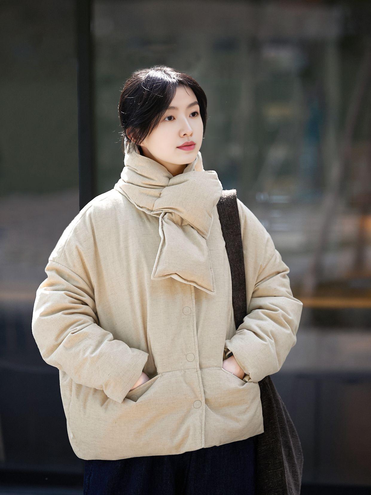 Park hemp color down jacket, Plain hemp scarf