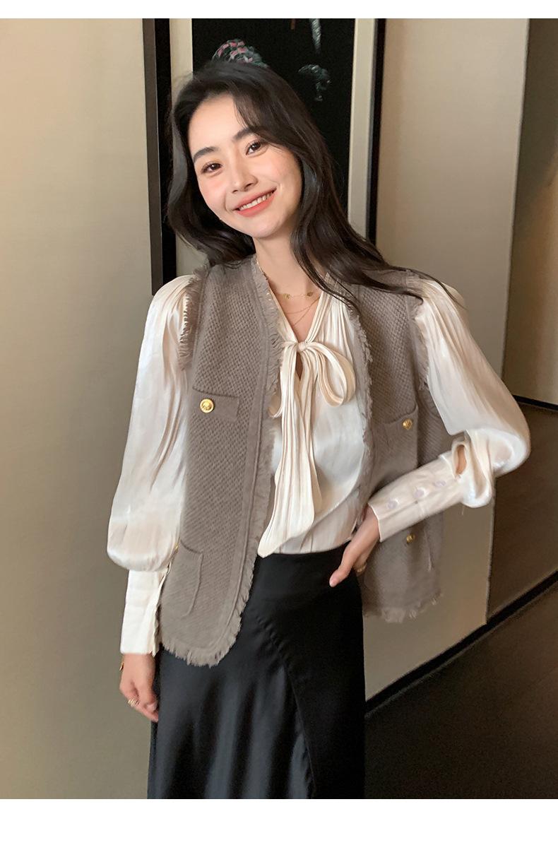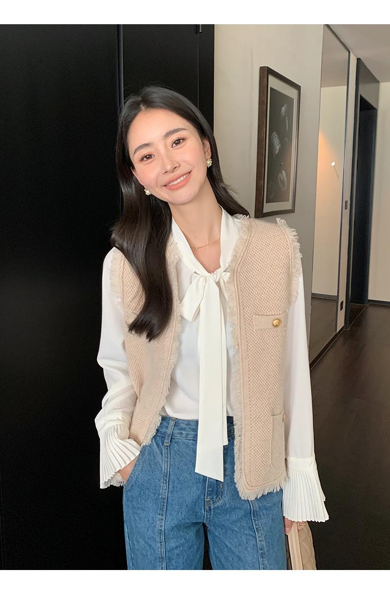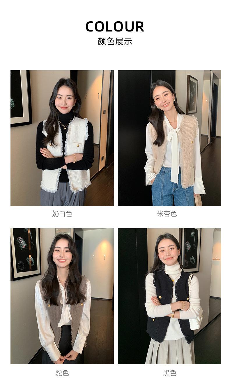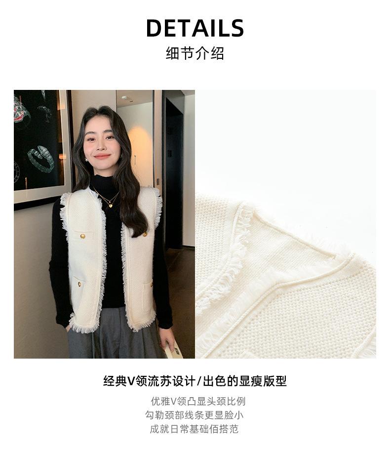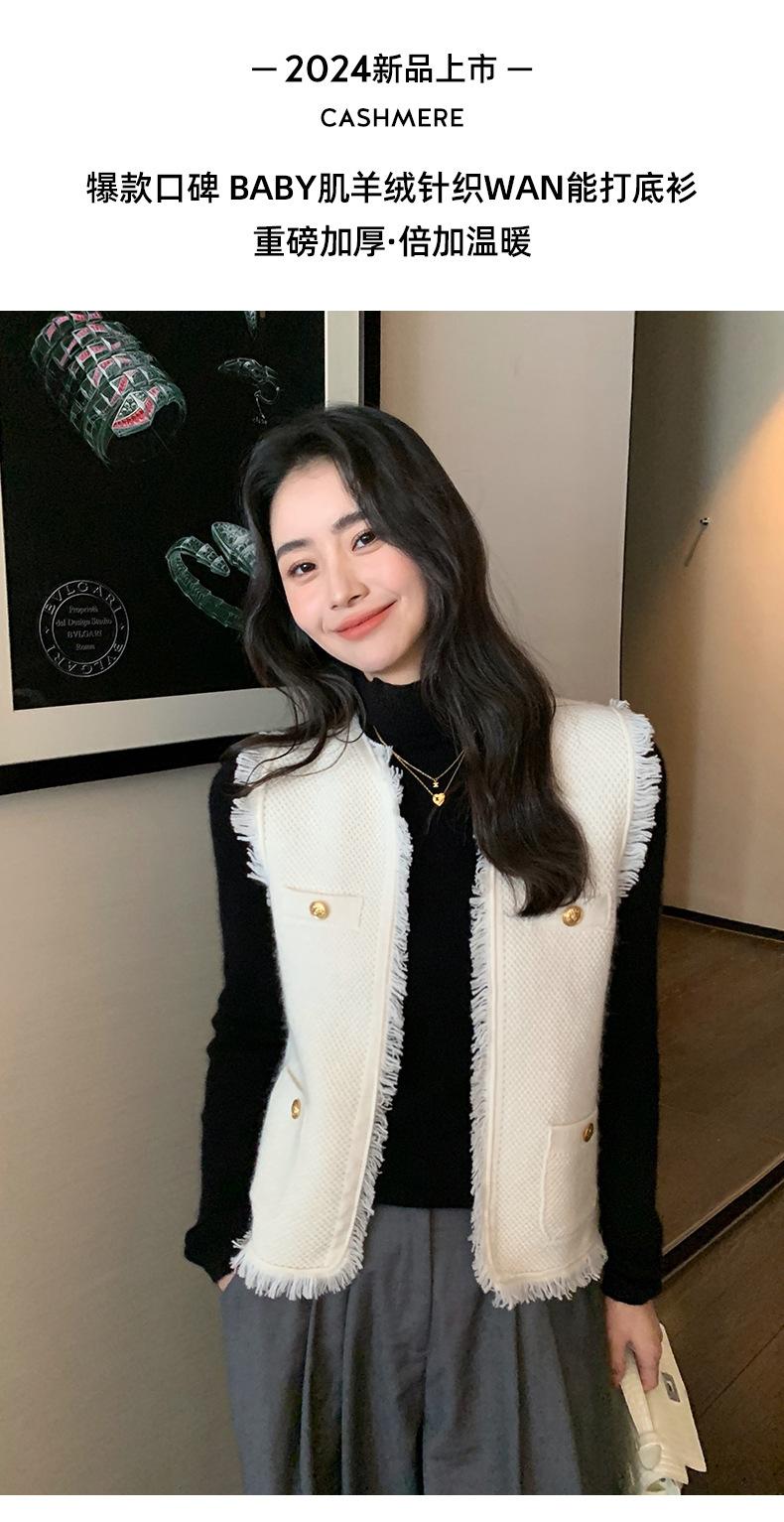 Chaleco de cachemira con cuello en V para mujer, de lana Chanel, holgado, sin mangas, cálido y agradable para la piel.