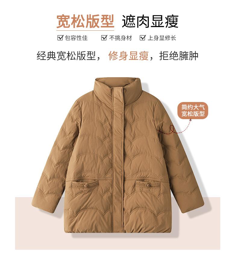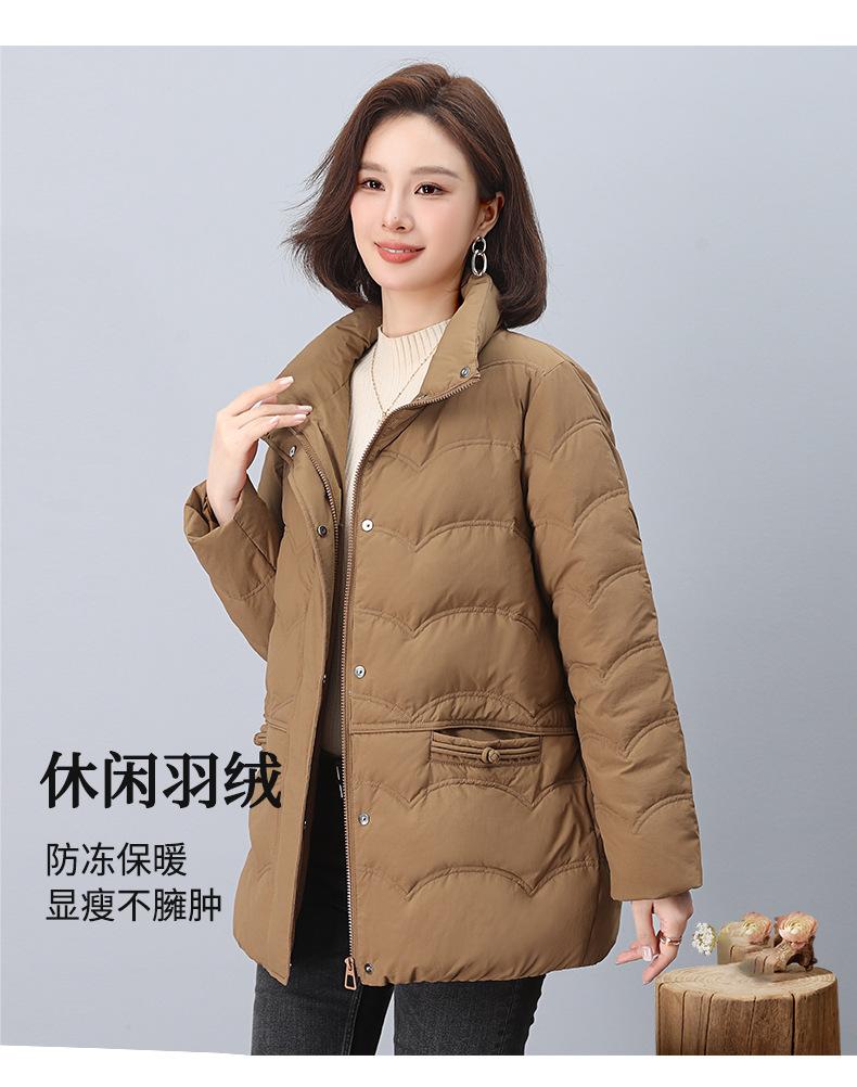 Chaqueta de Plumón Ligera para Mujer de Largo Medio 2024 Invierno Nueva Moda Madre de Mediana Edad Estilo Occidental Chaqueta de Plumón de Pato Blanco