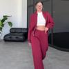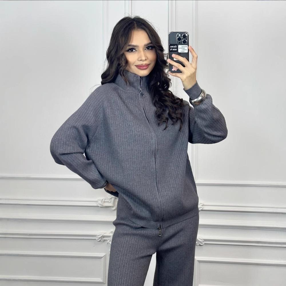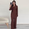 Otoño 2024 Nuevo Europeo y Americano Amazon Transfronterizo para Mujer Color Sólido Tejido Top Corto Pantalones Casuales Conjunto de Dos Piezas