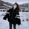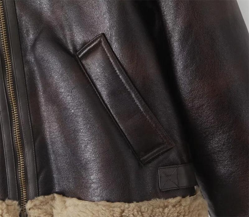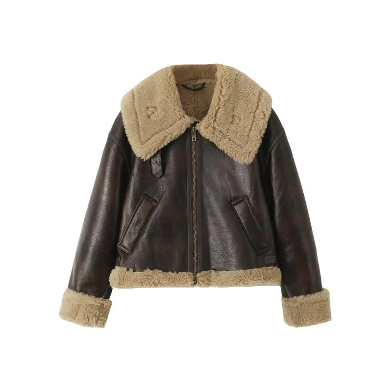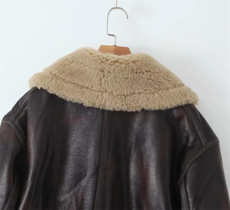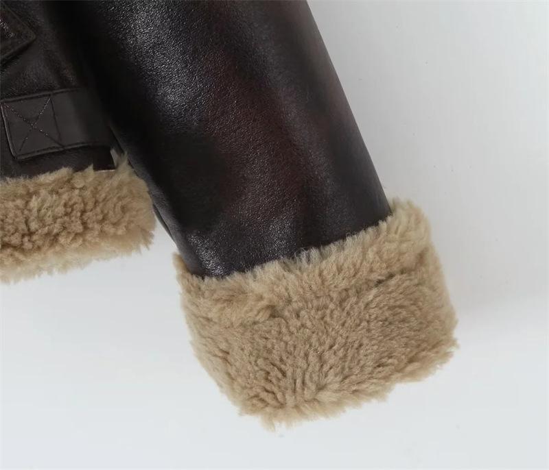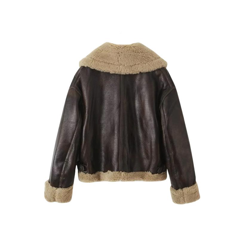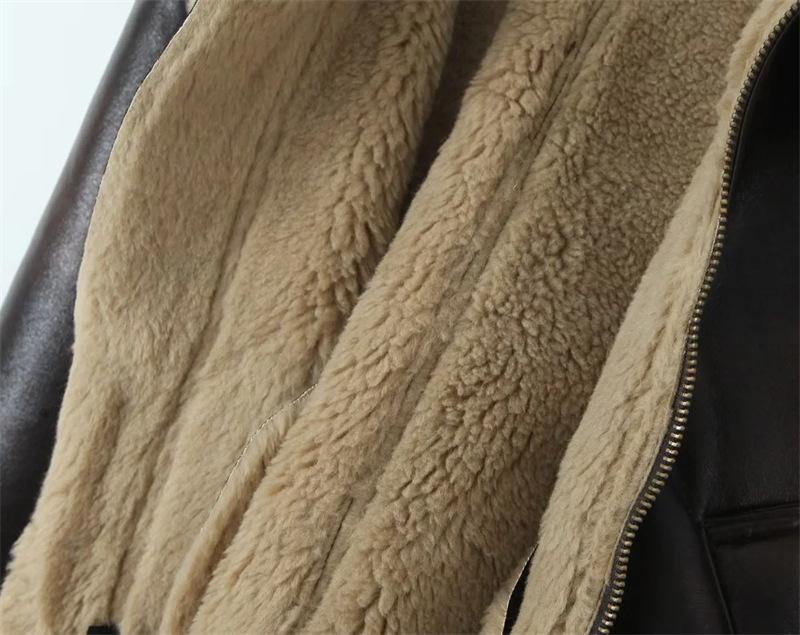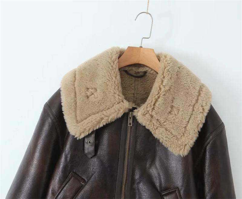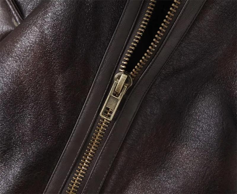 Estilo Europeo y Americano Nuevo Cárdigan Peludo con Solapa y Cremallera Abrigo Grueso para Mujer Estilo Callejero Chica Caliente Suelto Guapo Abrigo de Cuero