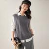 Chaleco de cachemira con cuello en V apilado para mujer, grueso, sin mangas, holgado, combinable, elegante, base 1