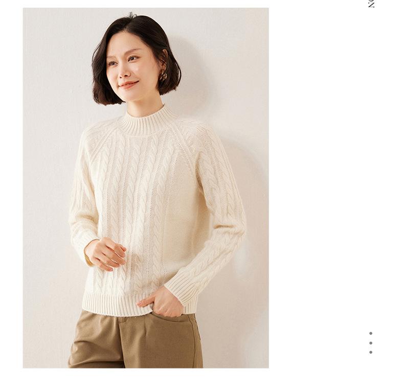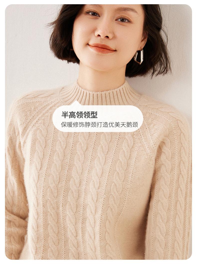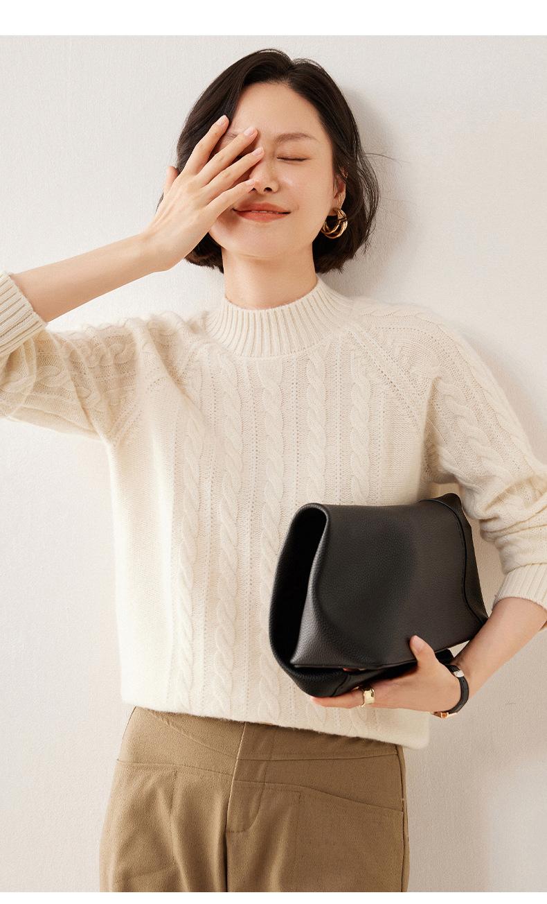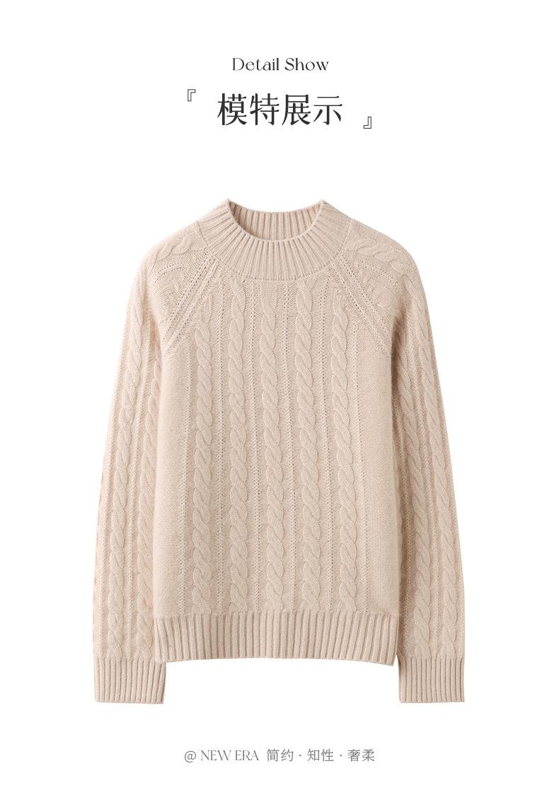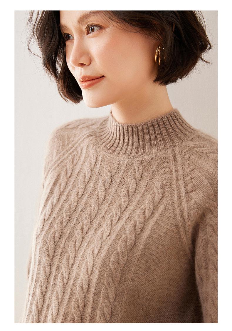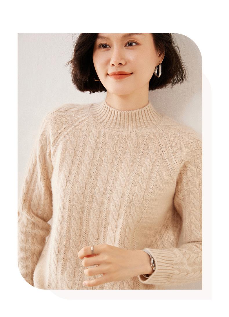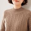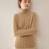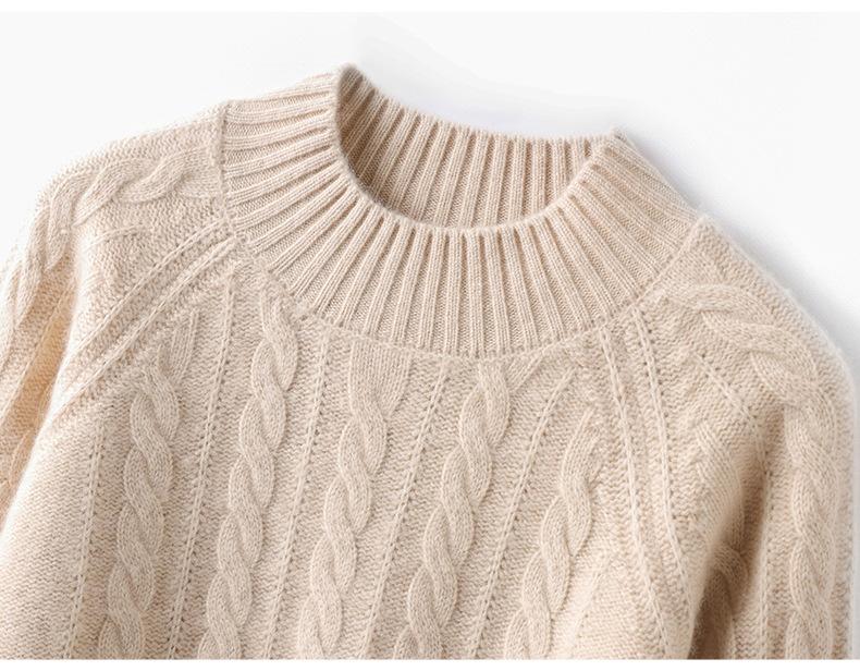 Suéter de Cachemira de Montaña Grueso y Pesado para Mujer Cuello Alto Suelto Jersey Tejido Cálido Trenzado Manga Raglán Suéter Base