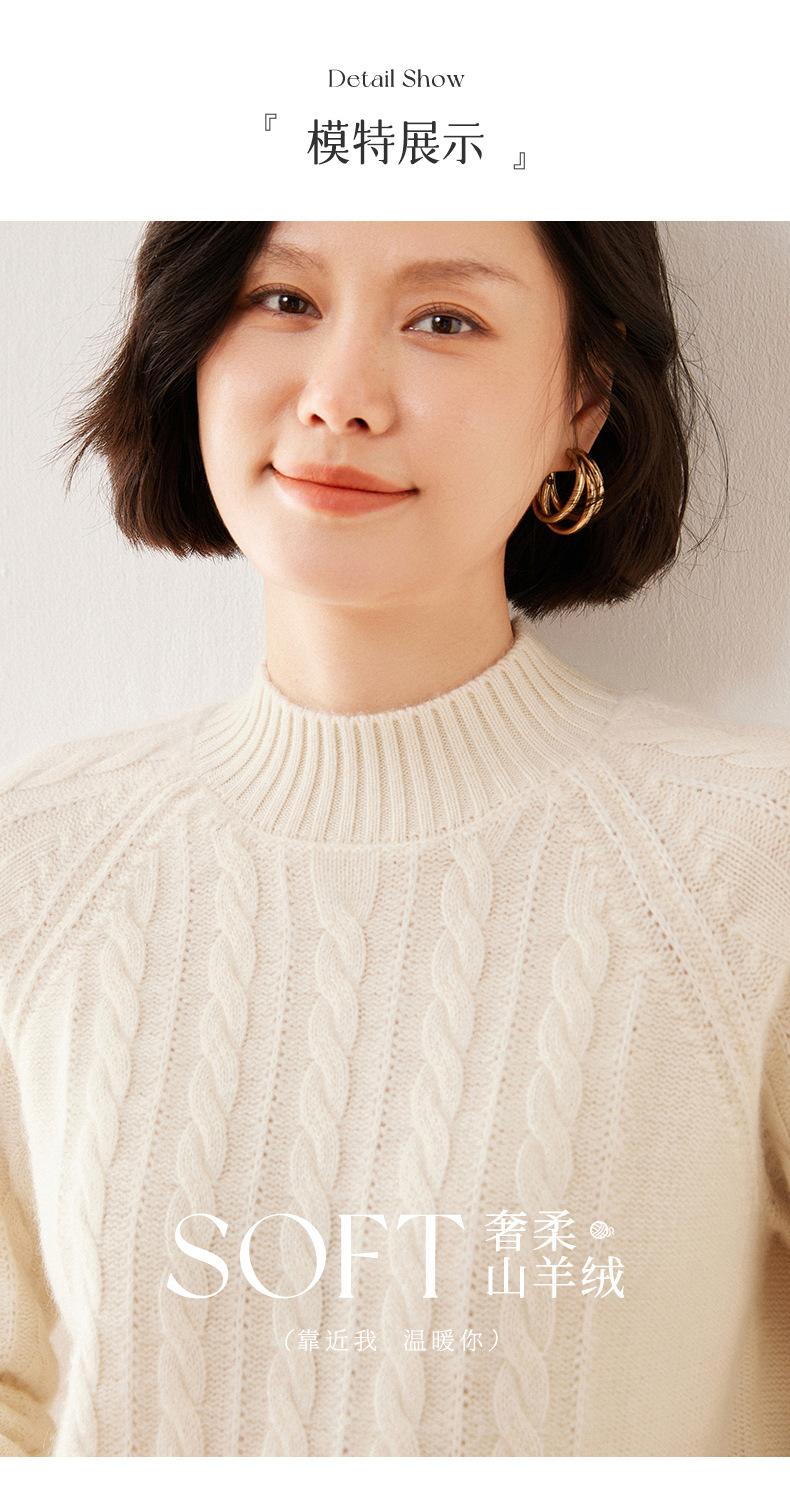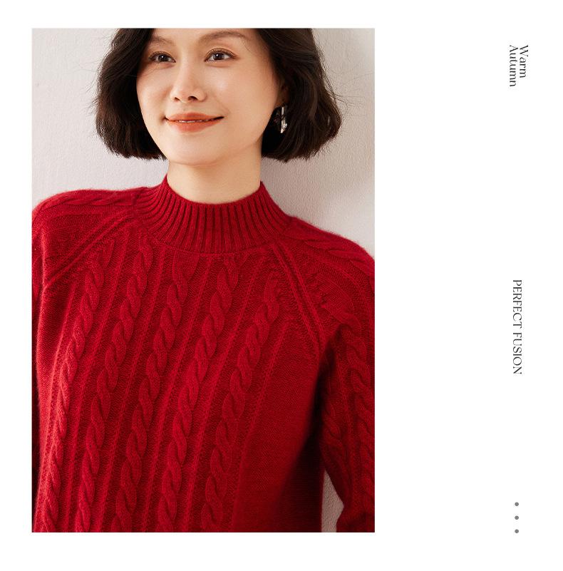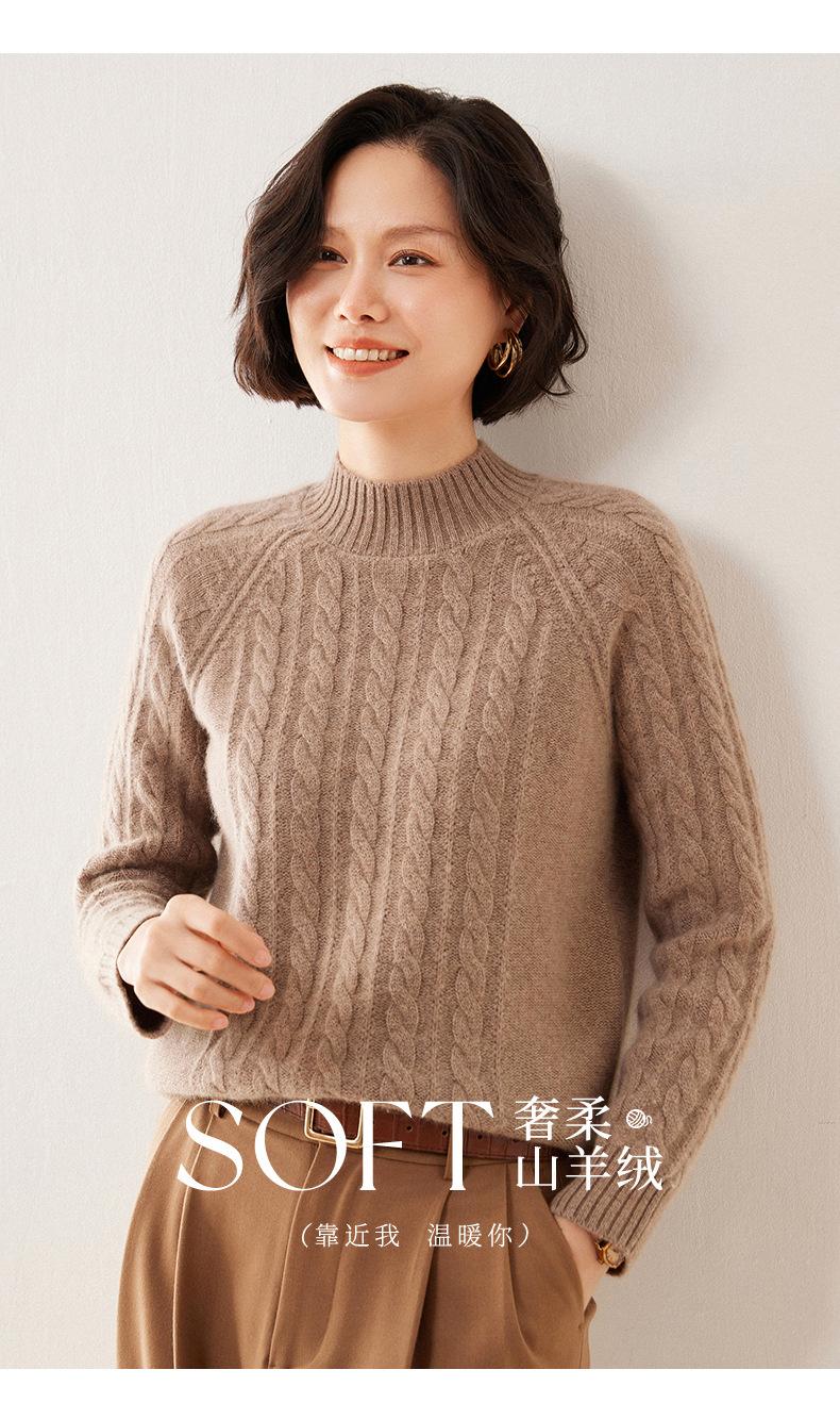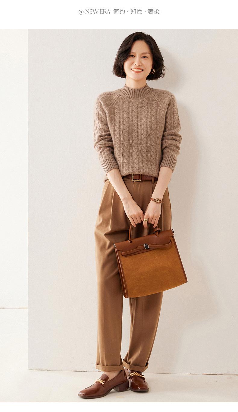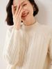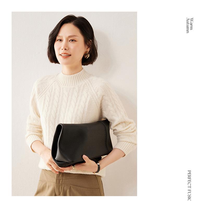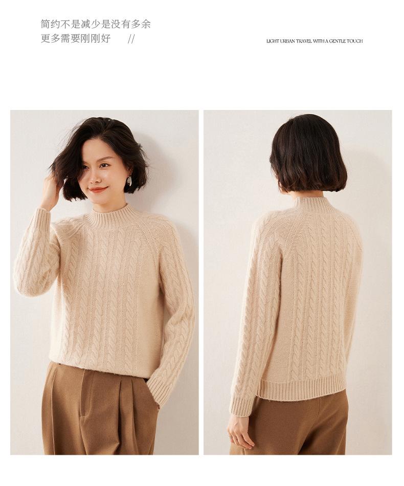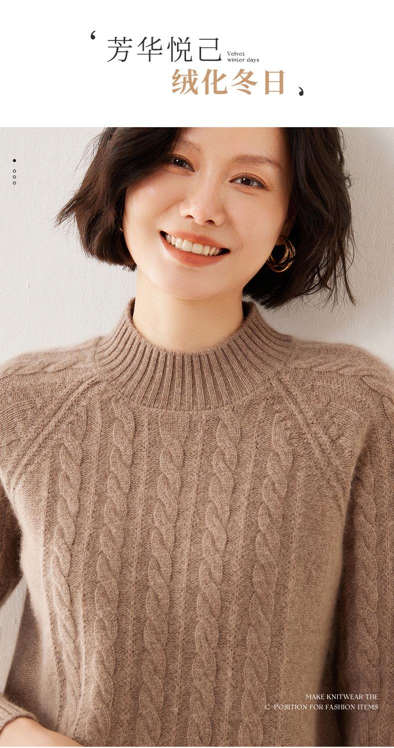 Suéter de Cachemira de Montaña Grueso y Pesado para Mujer Cuello Alto Suelto Jersey Tejido Cálido Trenzado Manga Raglán Suéter Base