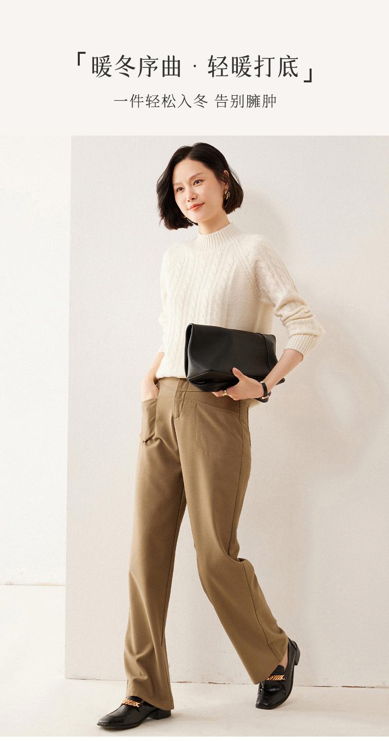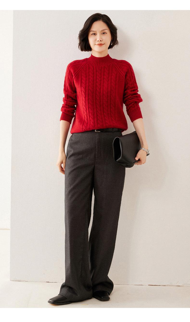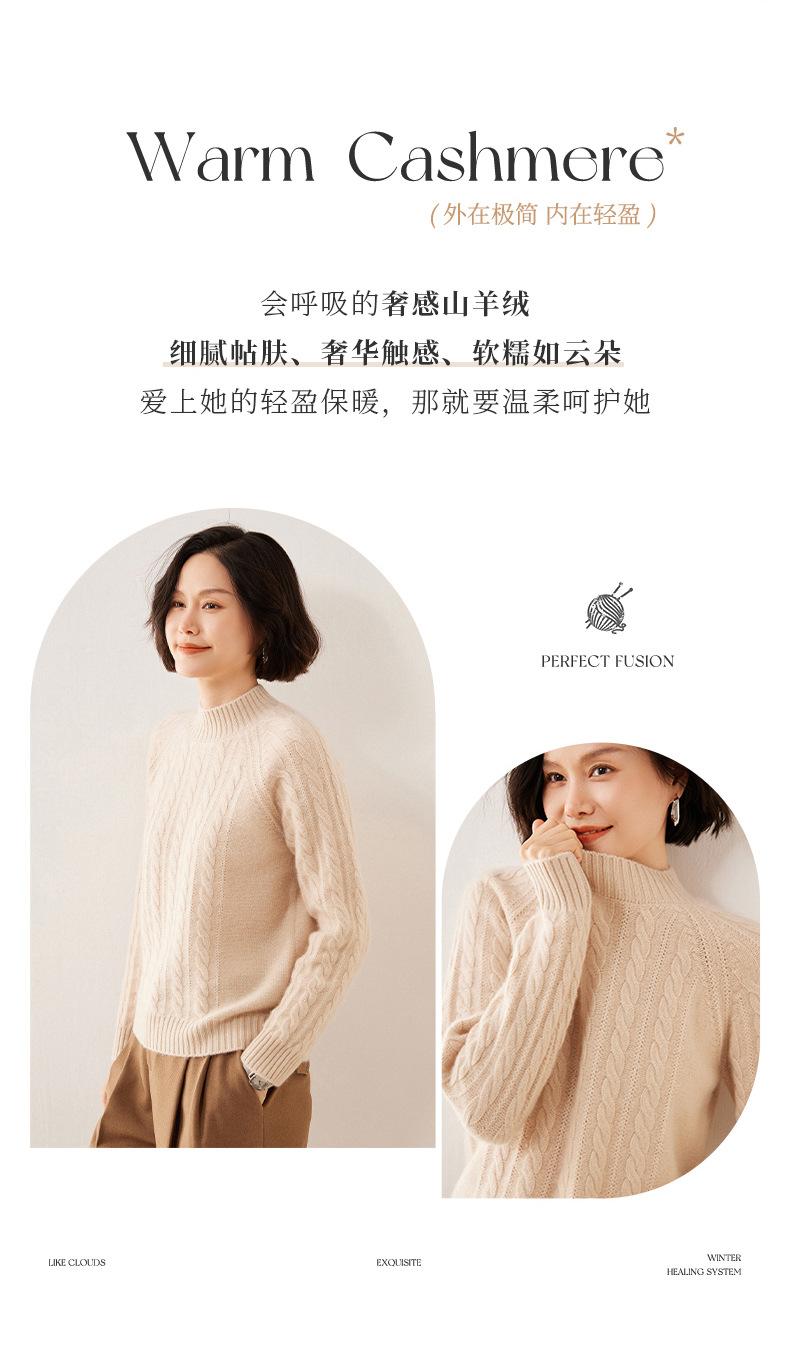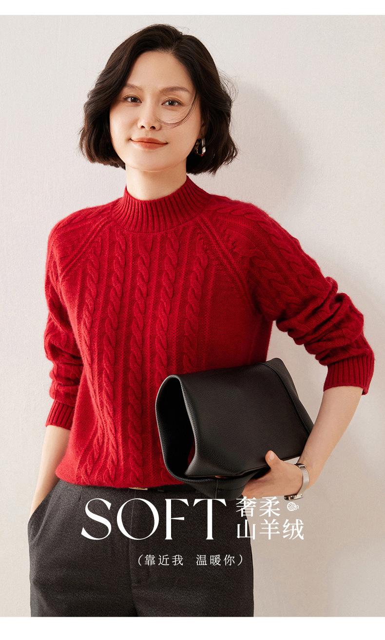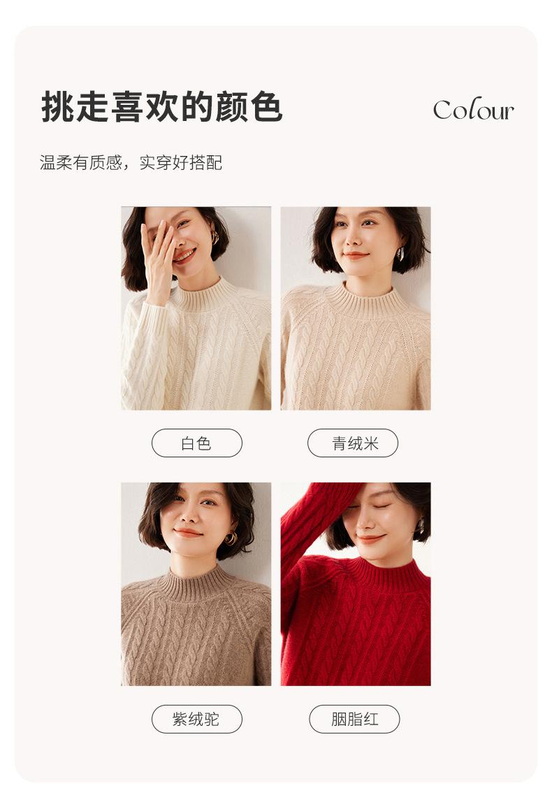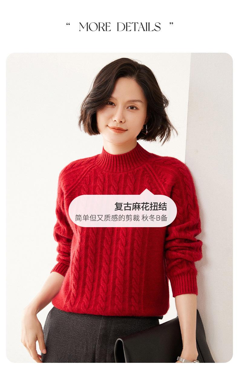 Suéter de Cachemira de Montaña Grueso y Pesado para Mujer Cuello Alto Suelto Jersey Tejido Cálido Trenzado Manga Raglán Suéter Base