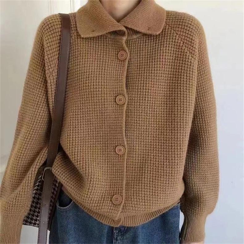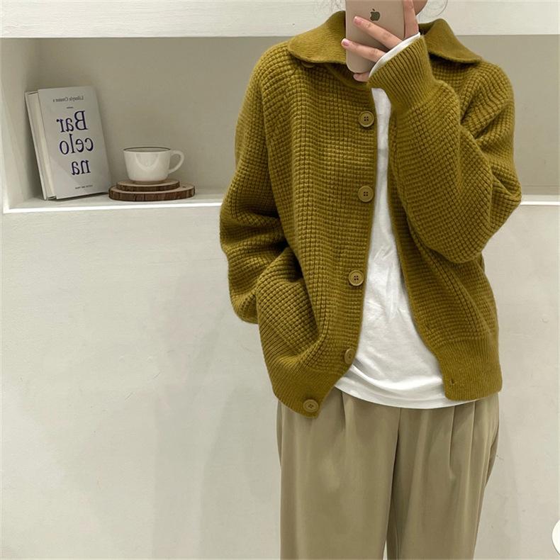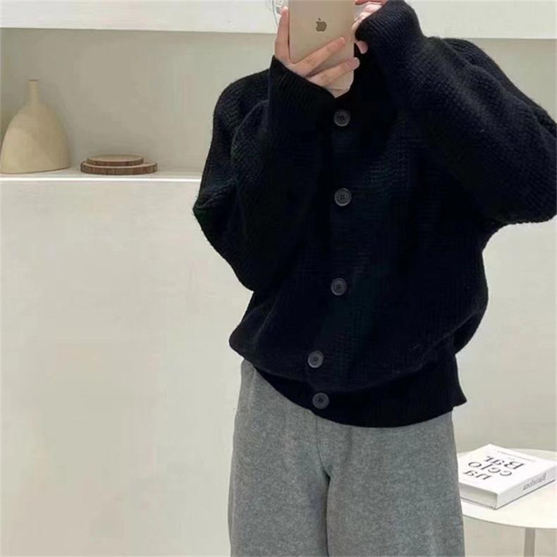 Suéter vintage para mujer, otoño e invierno 2023, nuevo suéter coreano de manga larga, estilo holgado, color liso, abrigo para mujer
