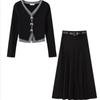 [Cinturón] Otoño Nuevo Cárdigan de Punto Traje de Falda Falda Plisada de Cintura Alta Elegante Conjunto de Dos Piezas