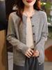 Suéter básico de lana suave y encerado para mujer, cárdigan de punto suelto de manga larga, cuello redondo, sin costuras, moderno y combinable.