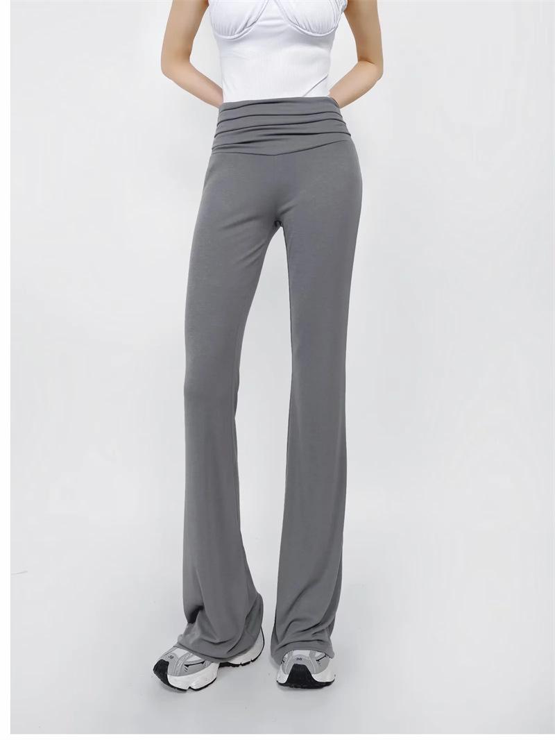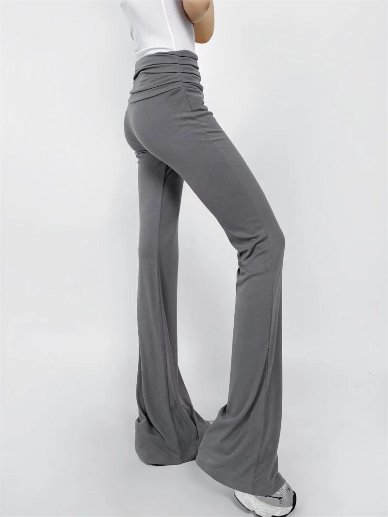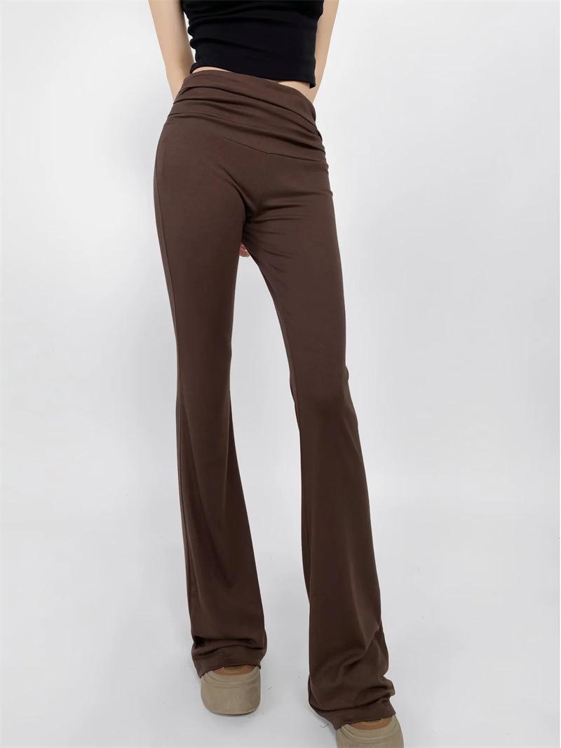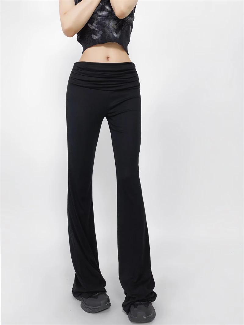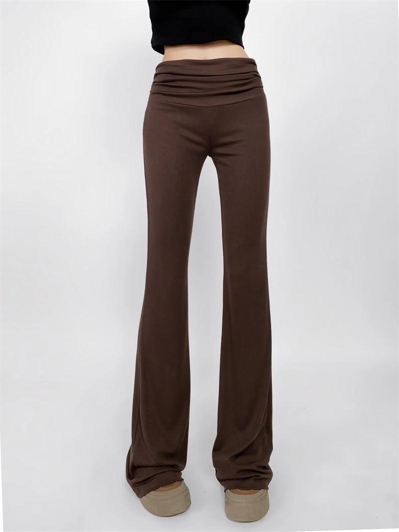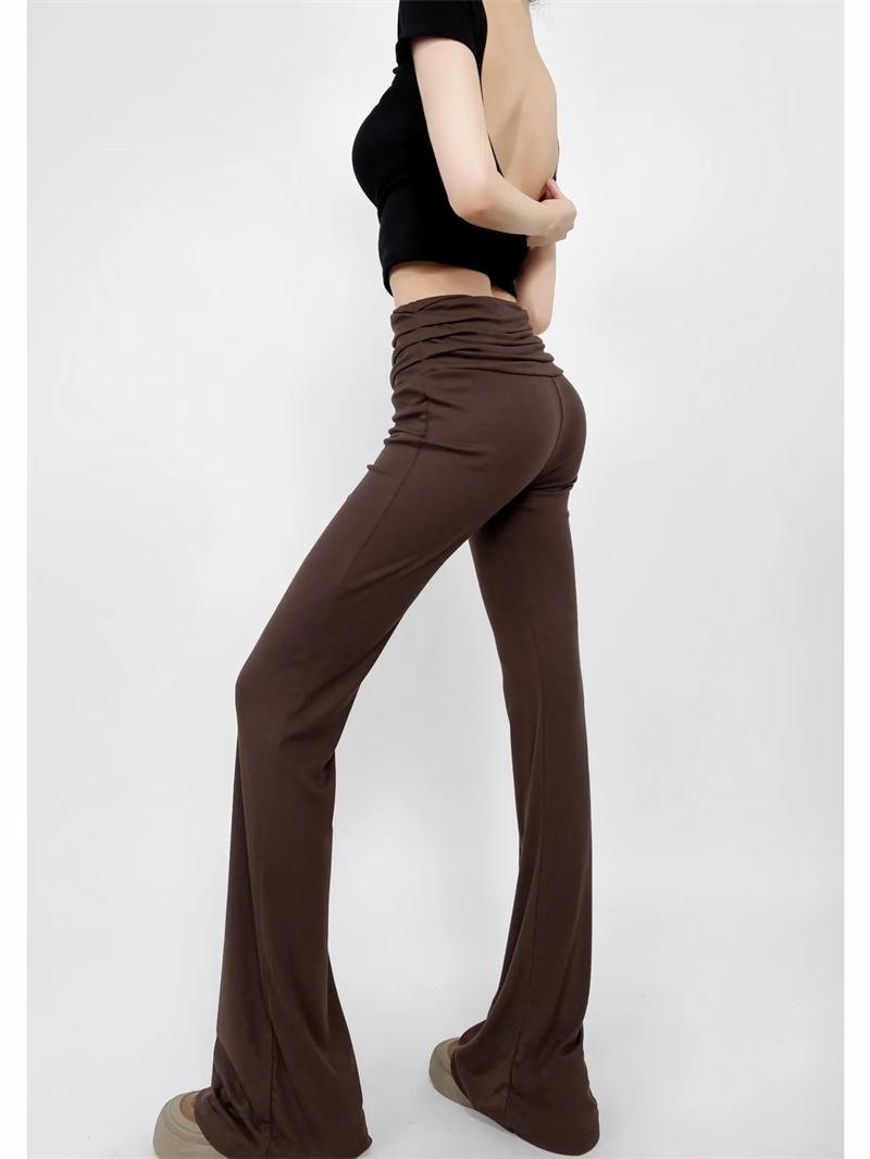 Pantalones plisados de cintura baja estilo americano retro para mujer, con microcampana, sexys, elásticos, ajustados, informales, de color liso