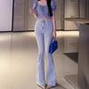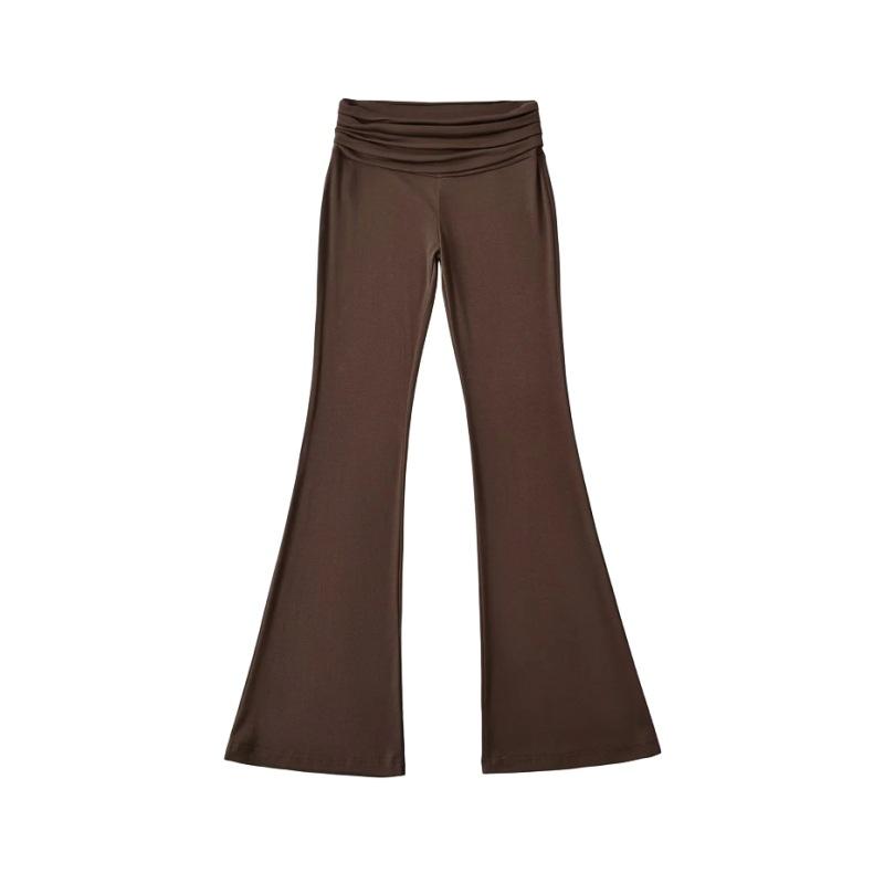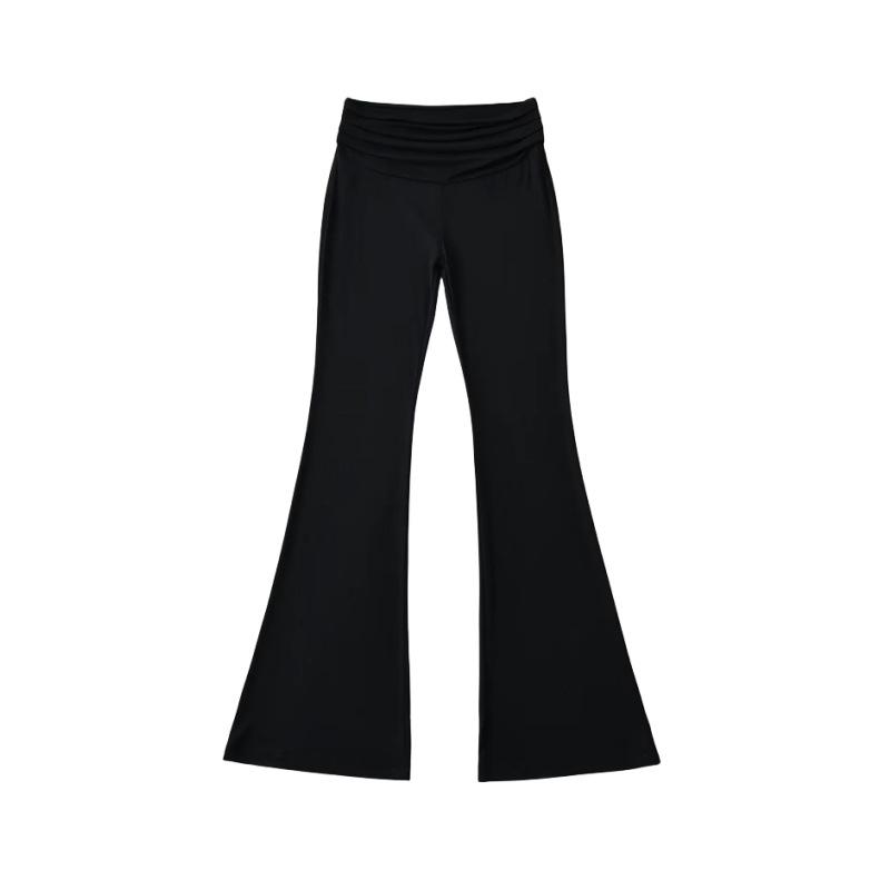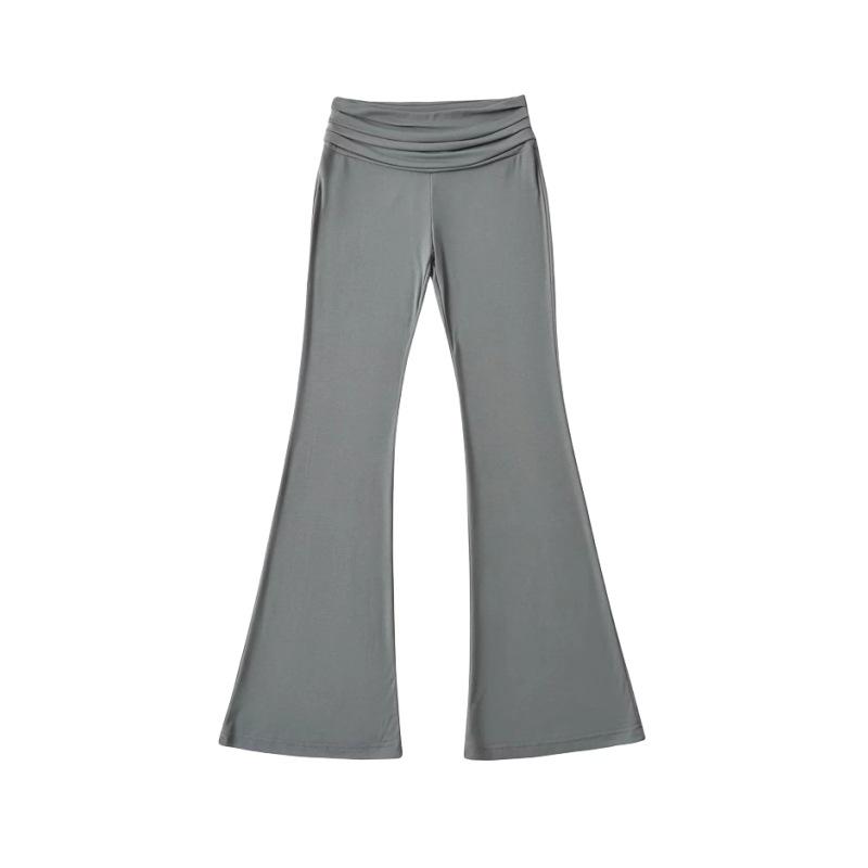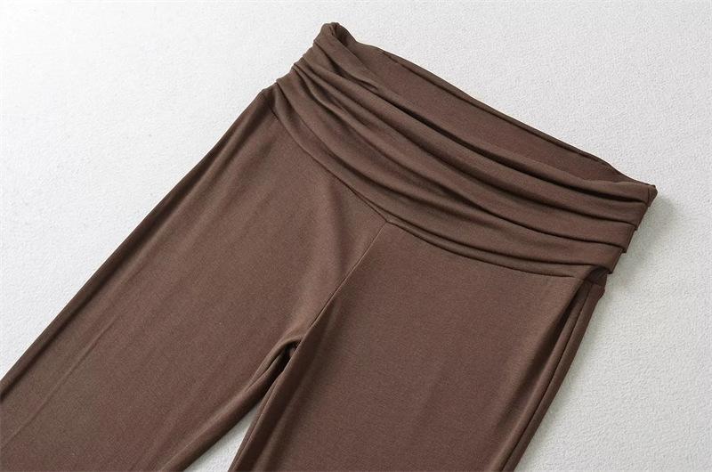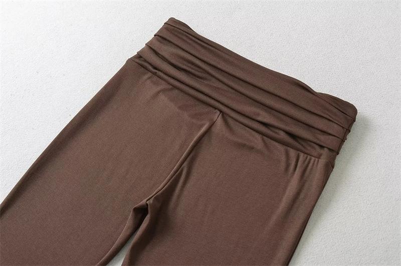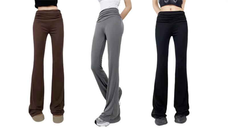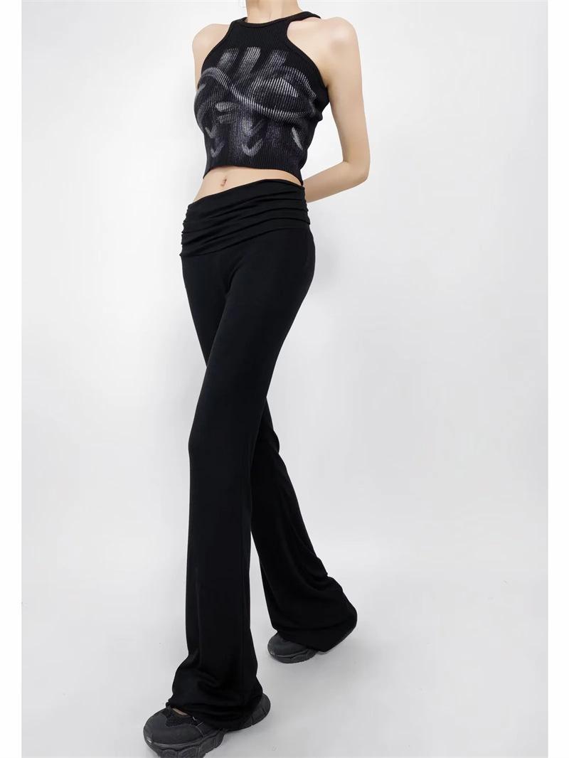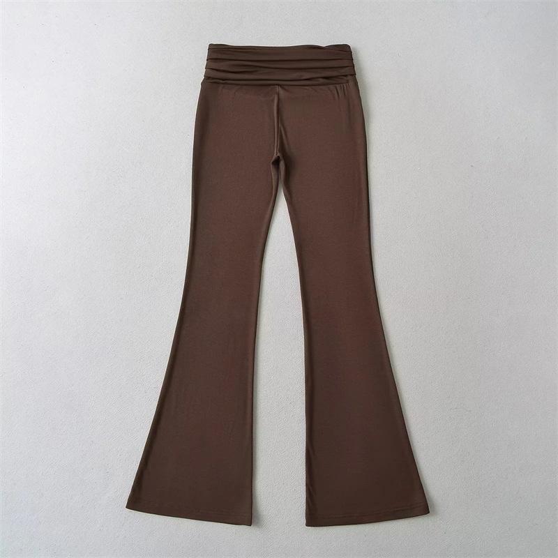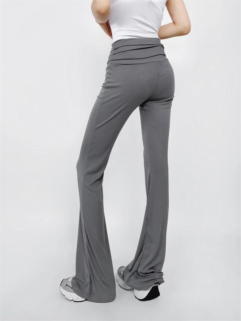 Pantalones plisados de cintura baja estilo americano retro para mujer, con microcampana, sexys, elásticos, ajustados, informales, de color liso