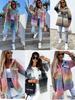 2024 Europa y Estados Unidos primavera y verano comercio exterior para mujer ebay Amazon nuevo abrigo con capucha de manga larga abrigo de tela de lana estampada