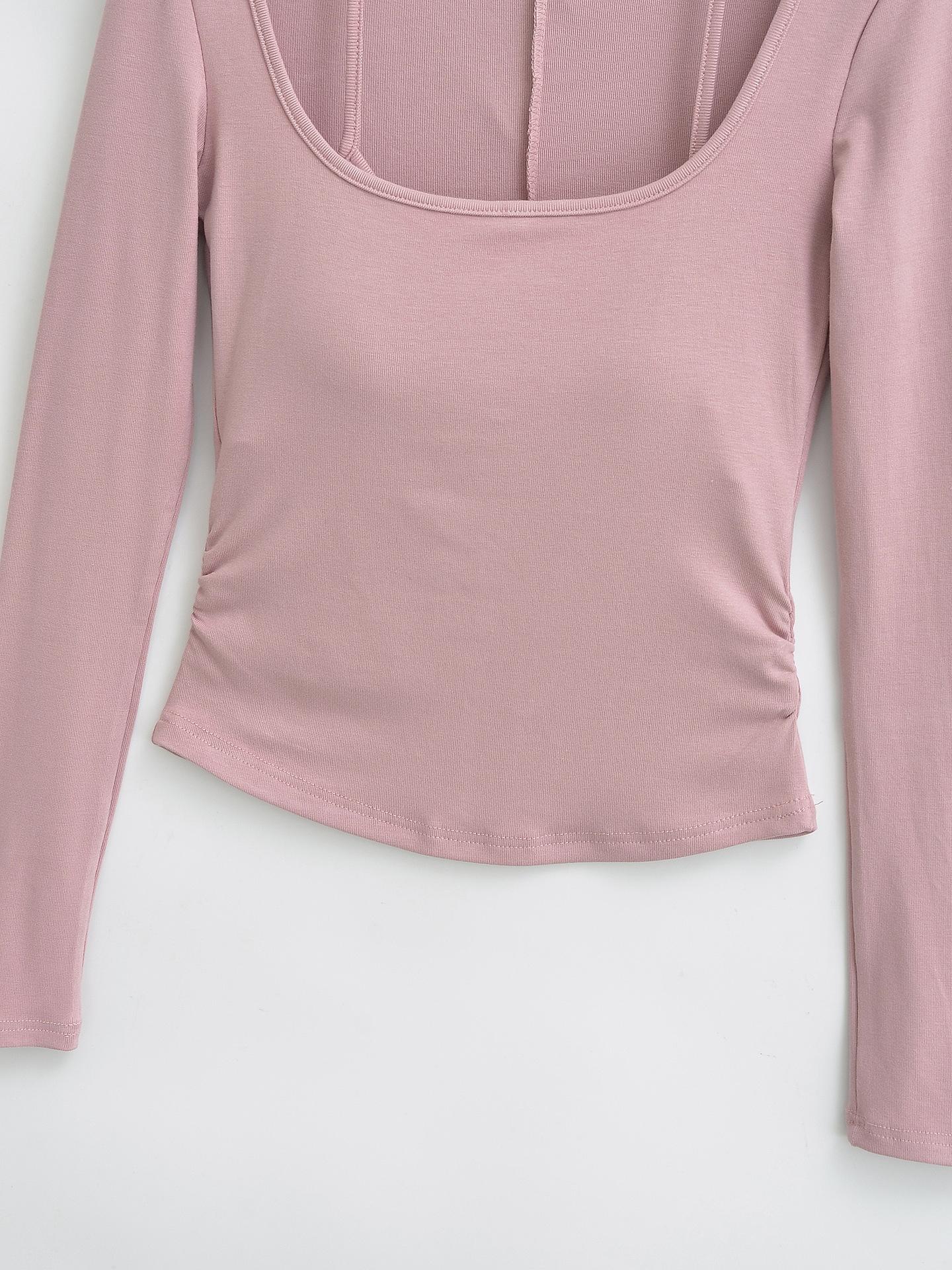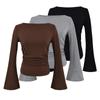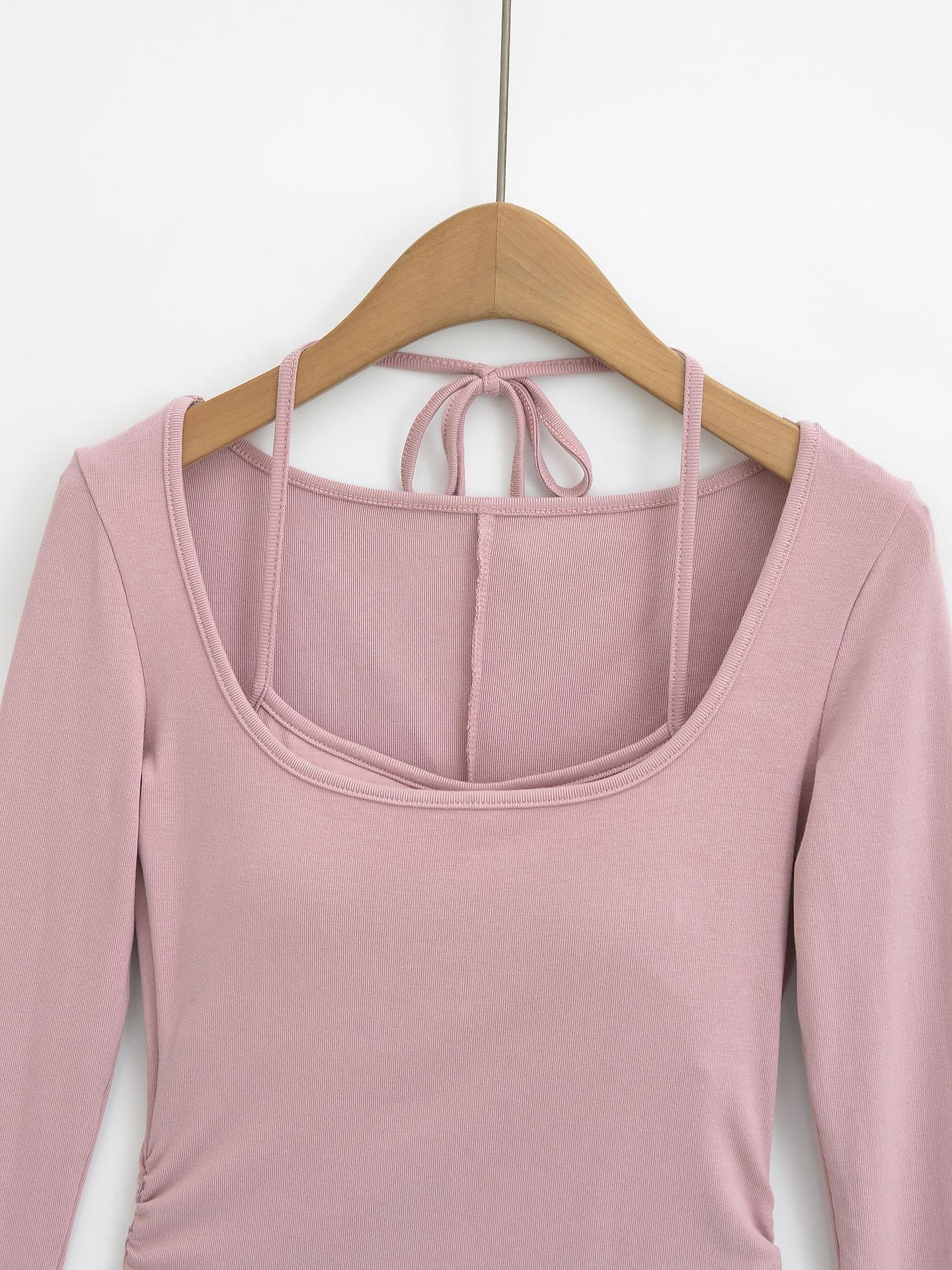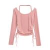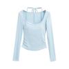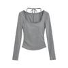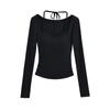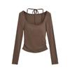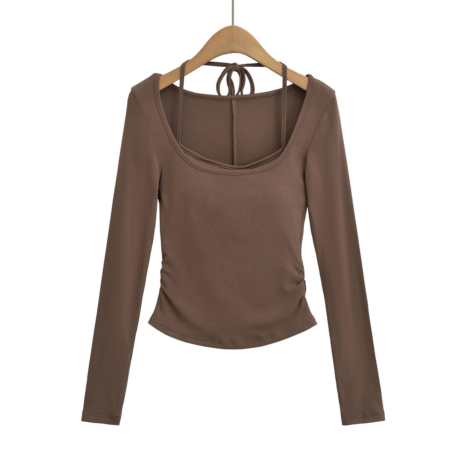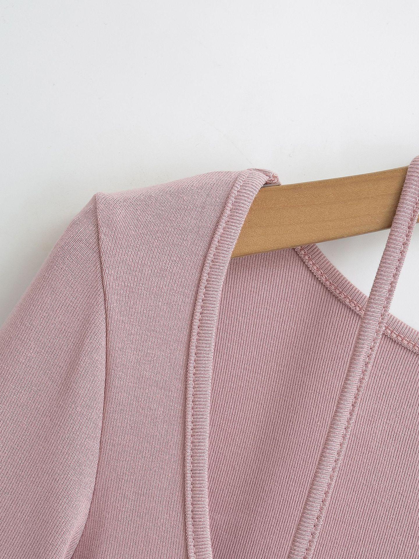 516-2024 Nueva chaqueta de estilo europeo y americano con cuello sexy y almohadilla para el pecho para mujer, camiseta de manga larga ajustada con dos Spice Girls falsas