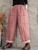 Pantalones de Lino Algodón para Mujer 2024 Invierno Nuevo Vintage Parche Bolsillo Rayado Casual Algodón Cálido Pantalones Hallen 9838