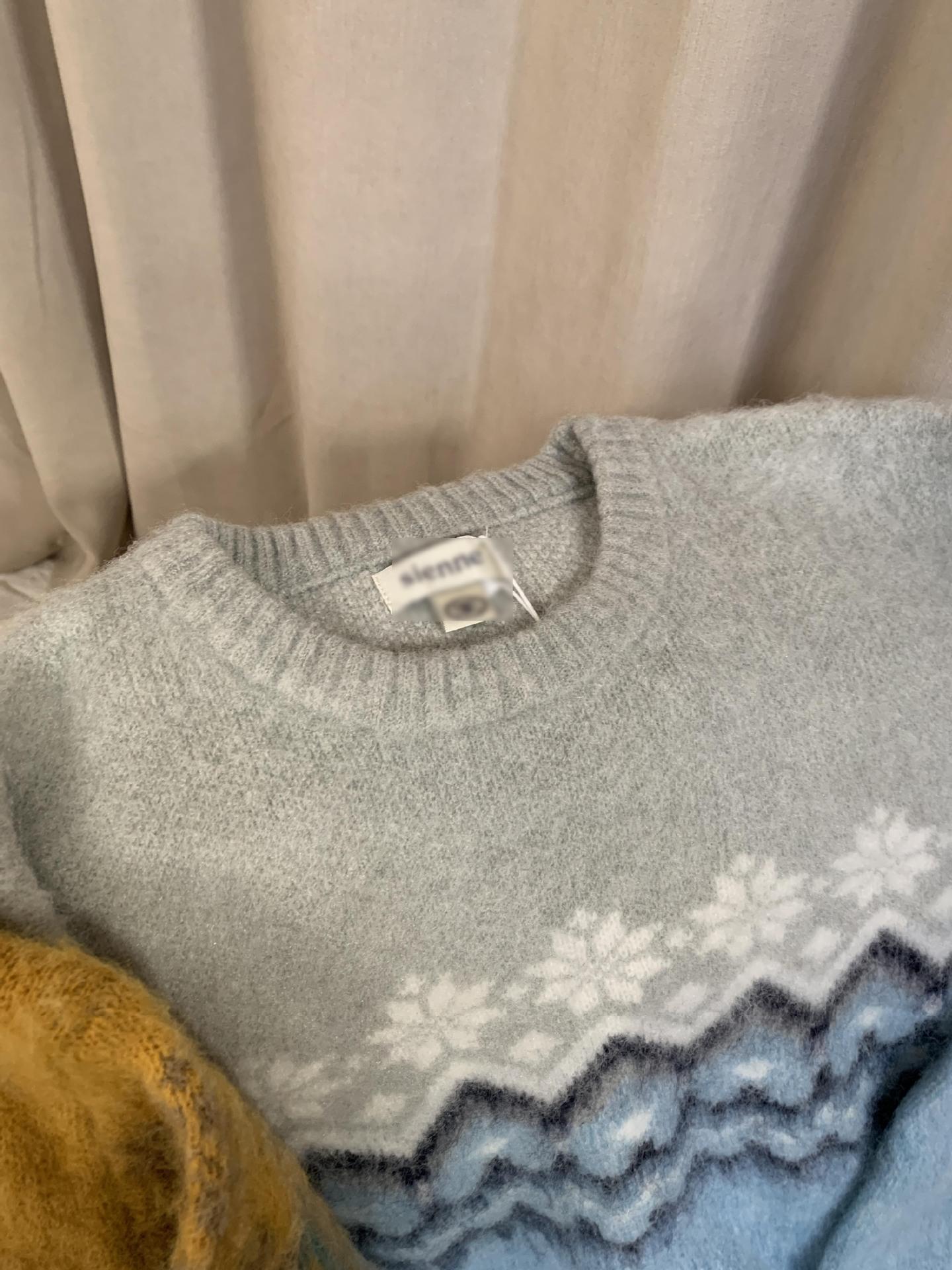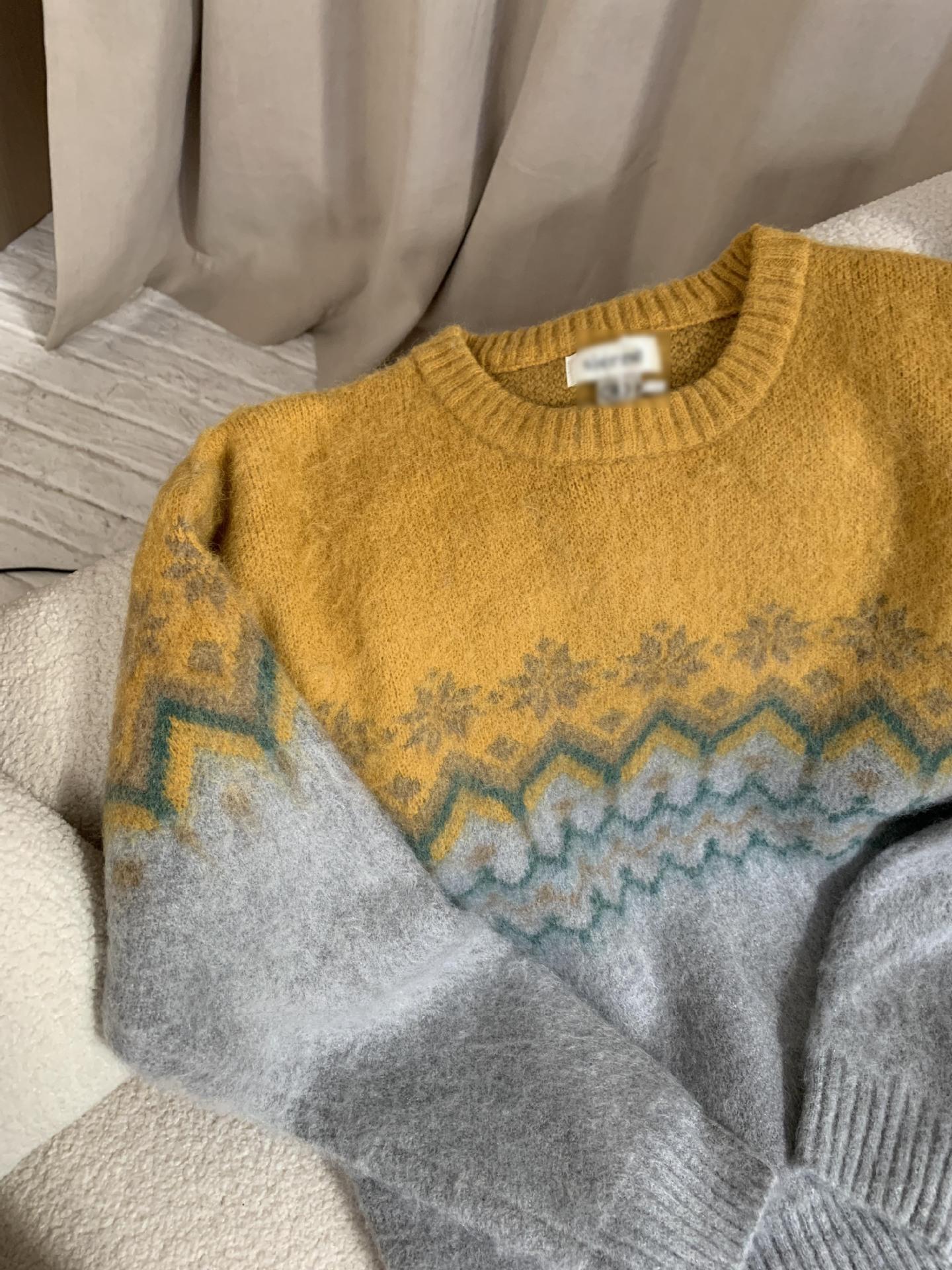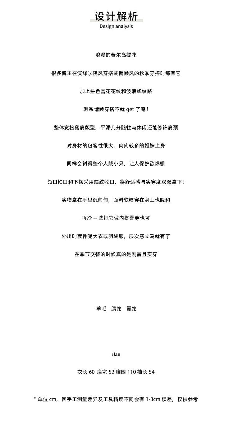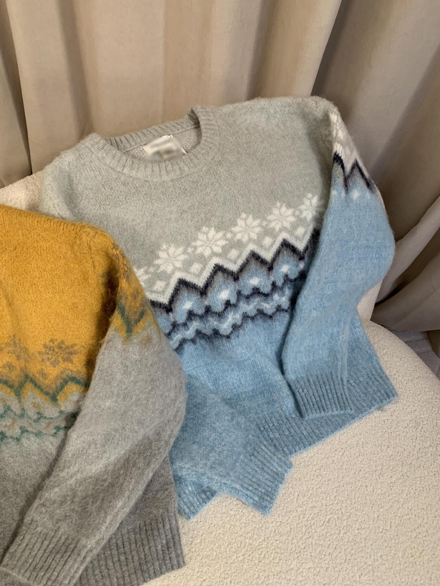 Suéter de Punto con Bloques de Color de Copo de Nieve de Lana de Cuello Redondo para Mujer Otoño e Invierno Estilo Holgazán Estilo Coreano Top de Gama Alta Sien*E