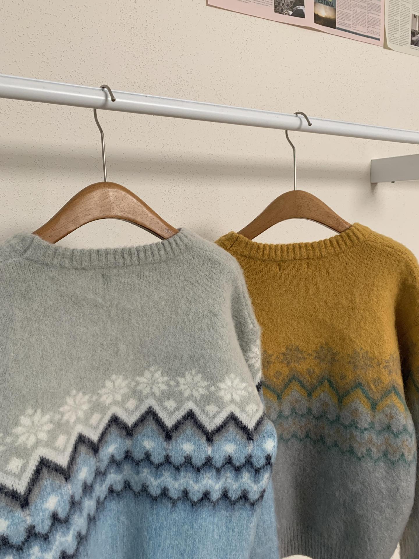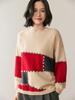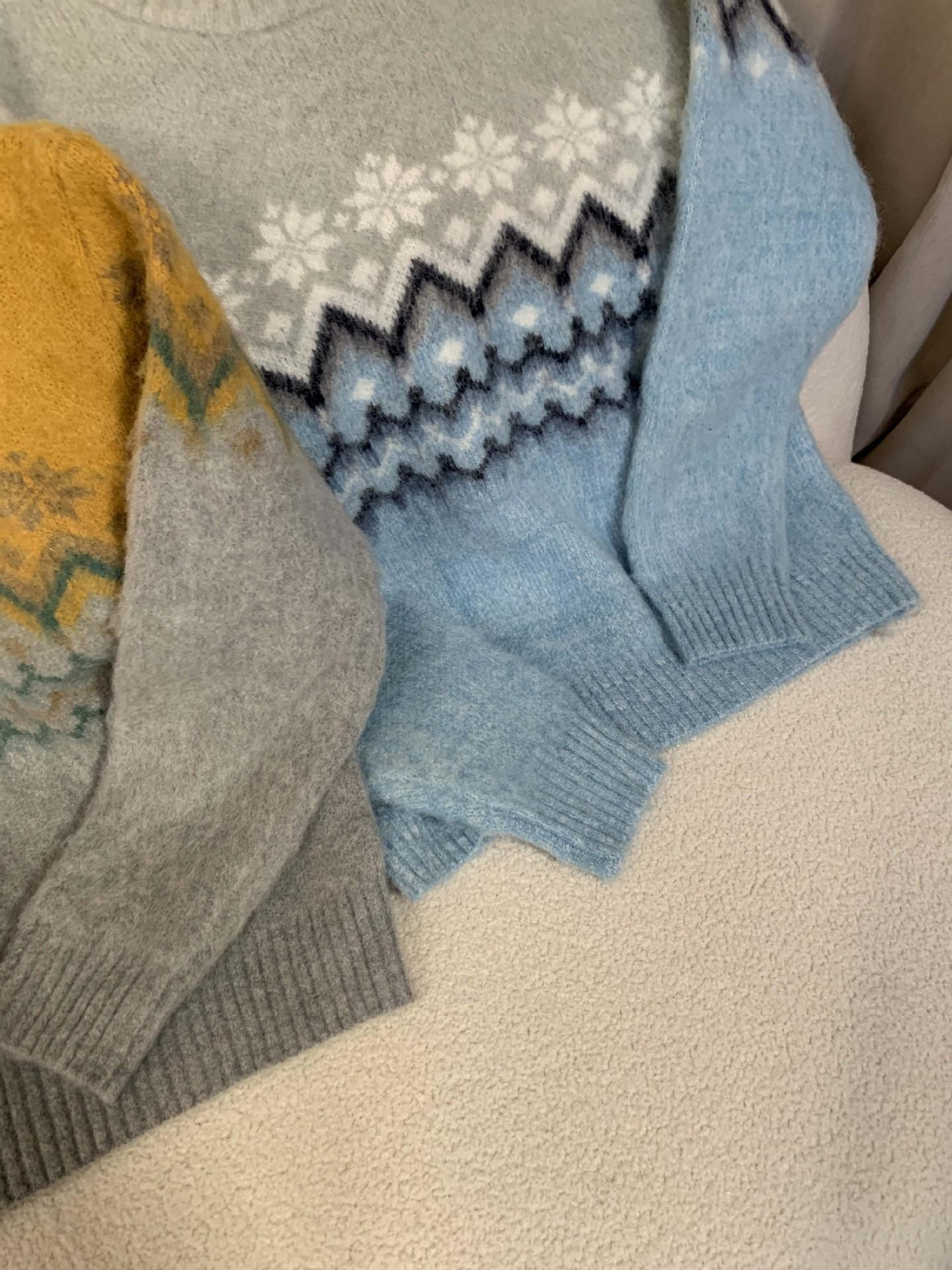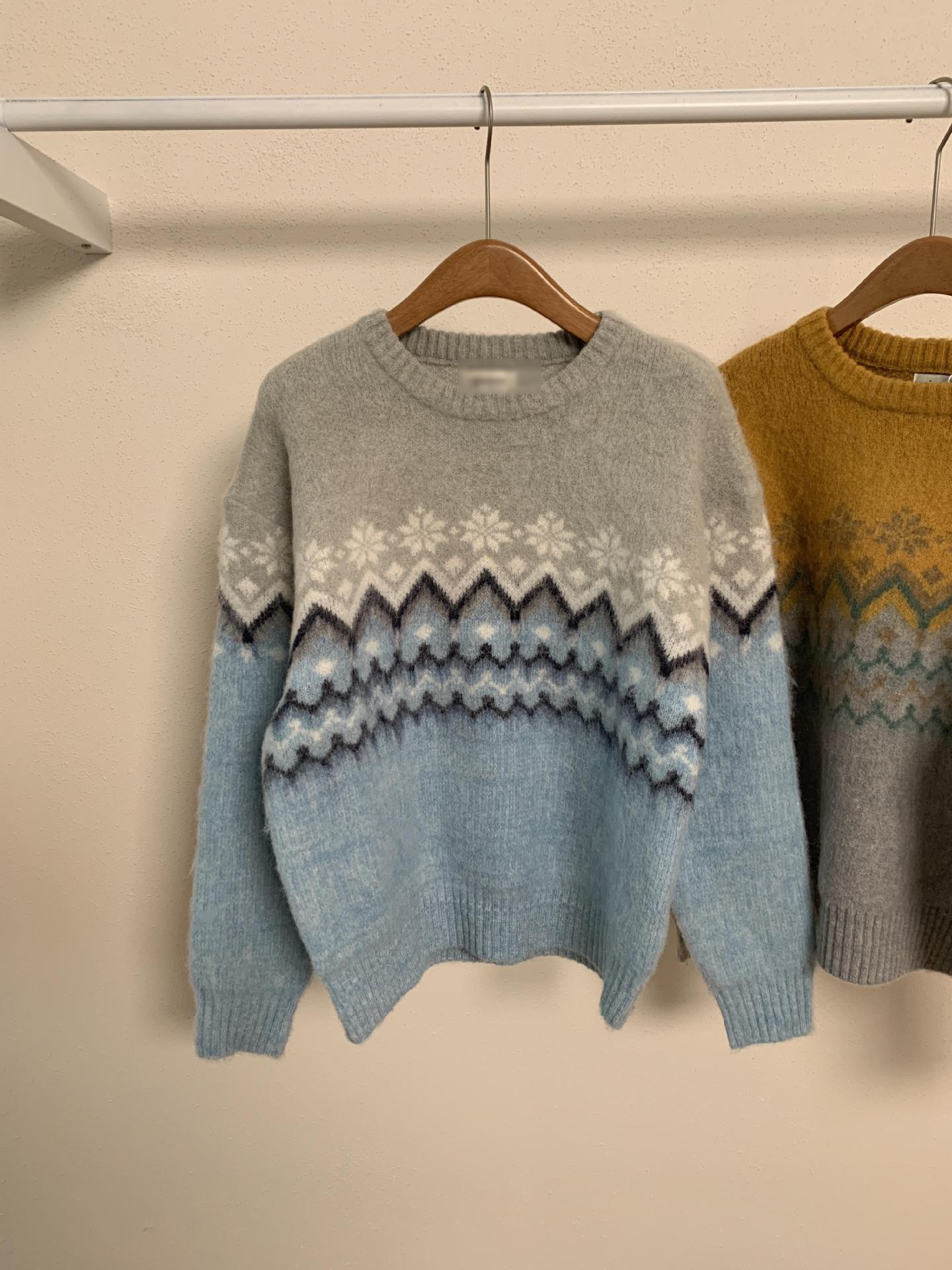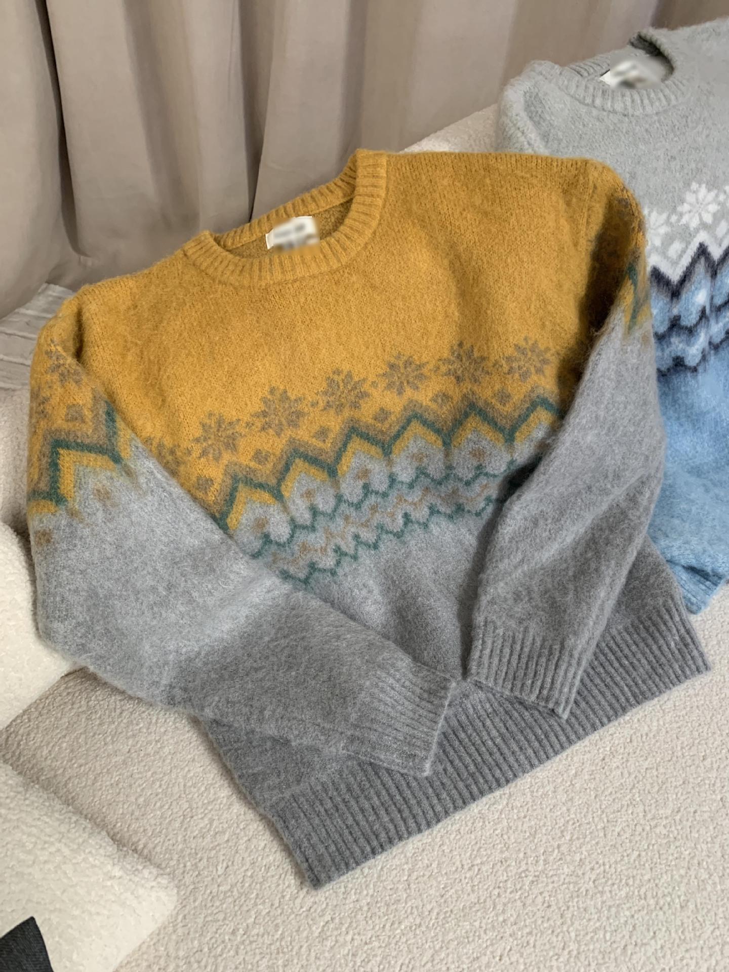 Suéter de Punto con Bloques de Color de Copo de Nieve de Lana de Cuello Redondo para Mujer Otoño e Invierno Estilo Holgazán Estilo Coreano Top de Gama Alta Sien*E
