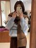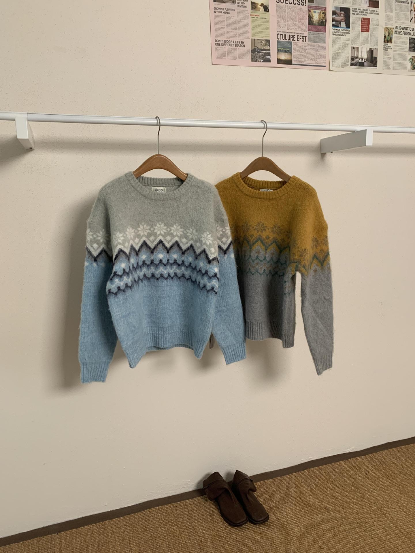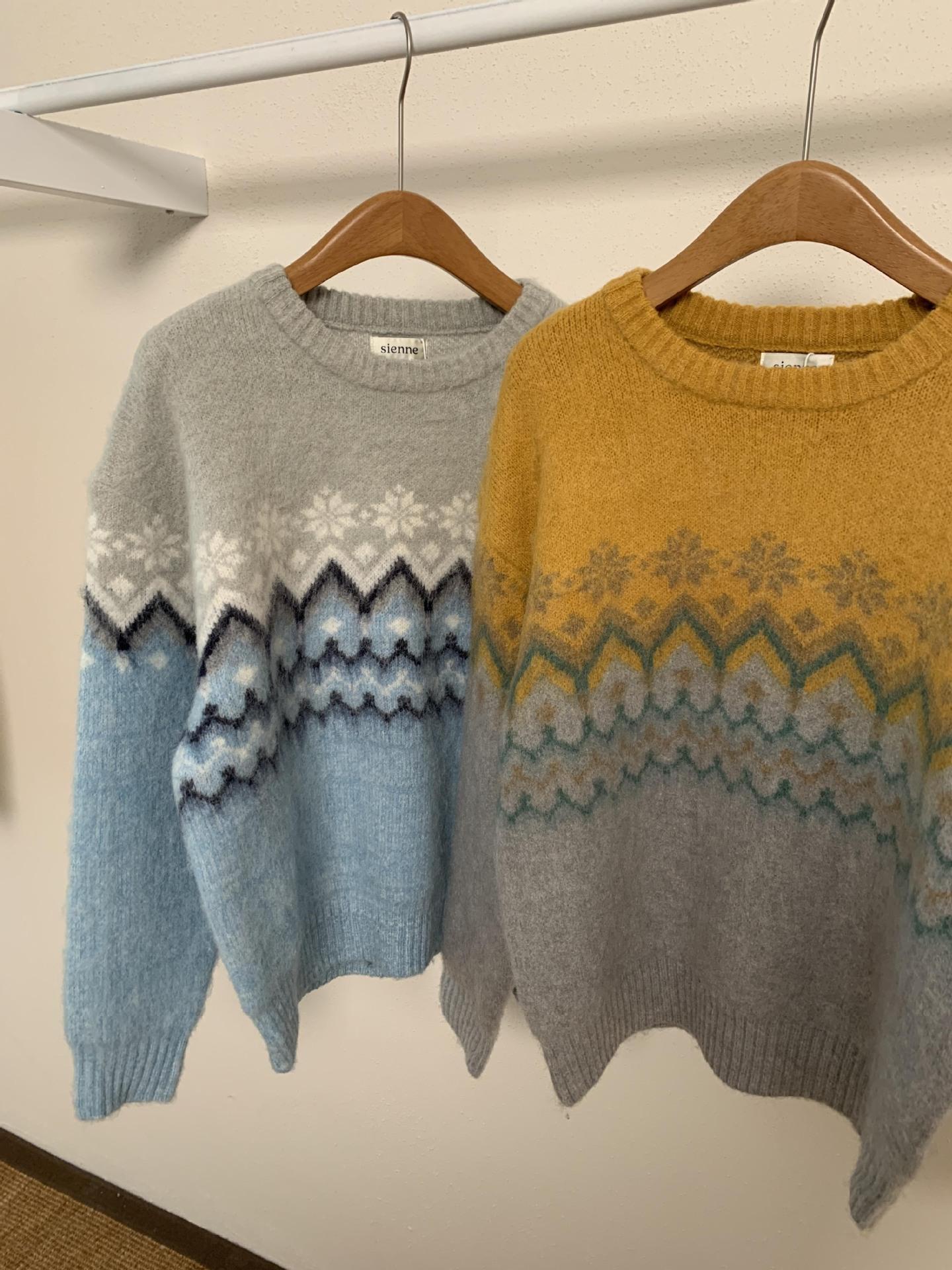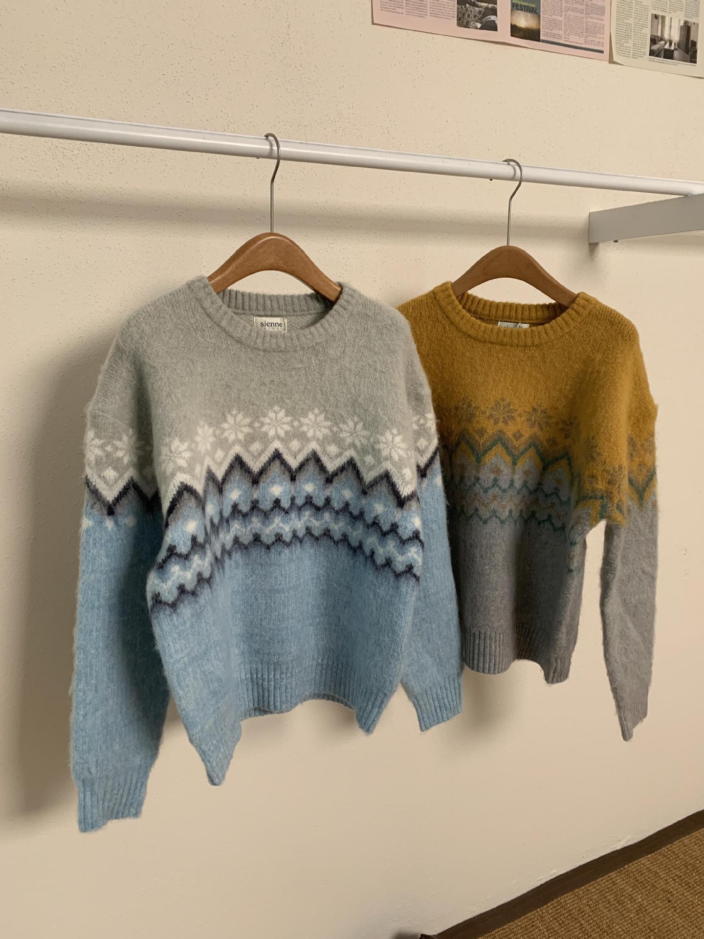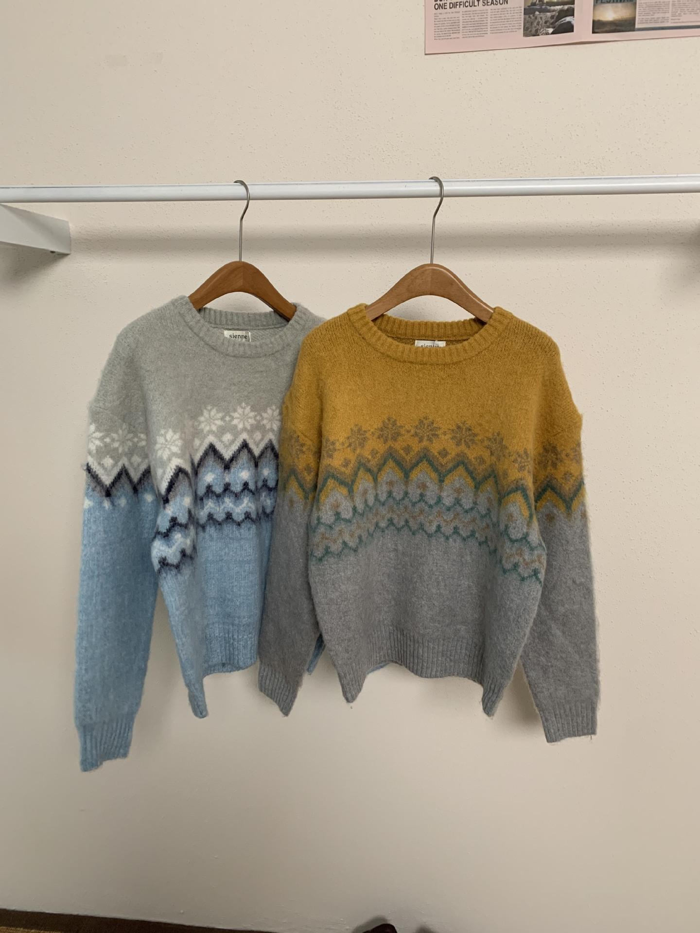 Suéter de Punto con Bloques de Color de Copo de Nieve de Lana de Cuello Redondo para Mujer Otoño e Invierno Estilo Holgazán Estilo Coreano Top de Gama Alta Sien*E