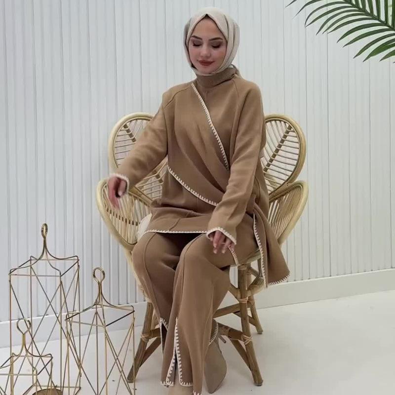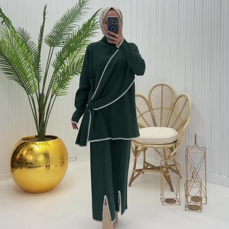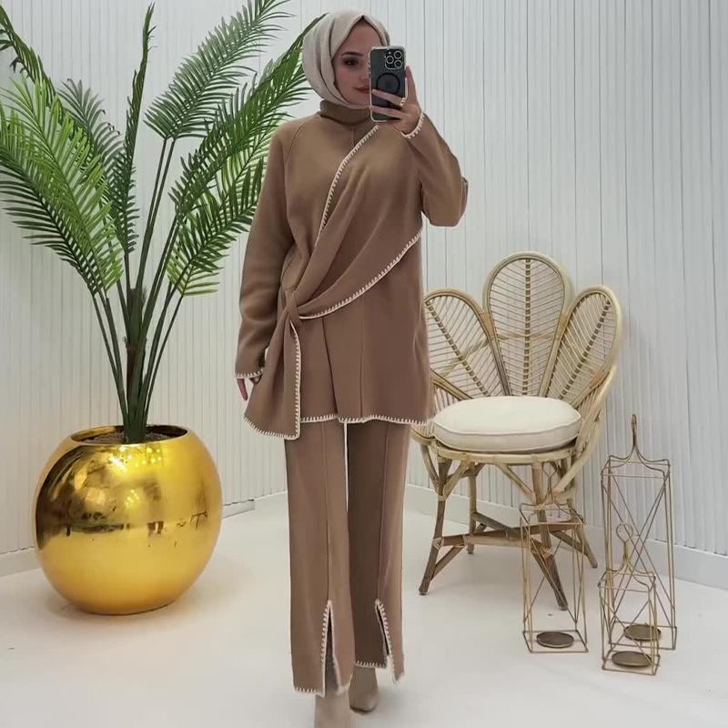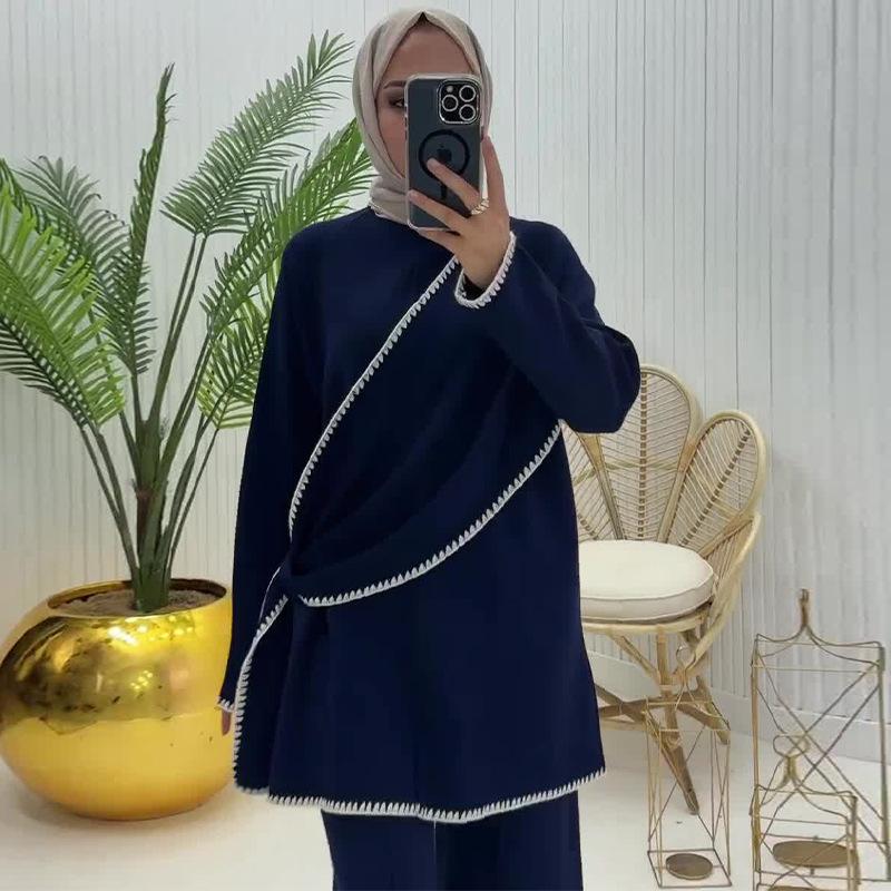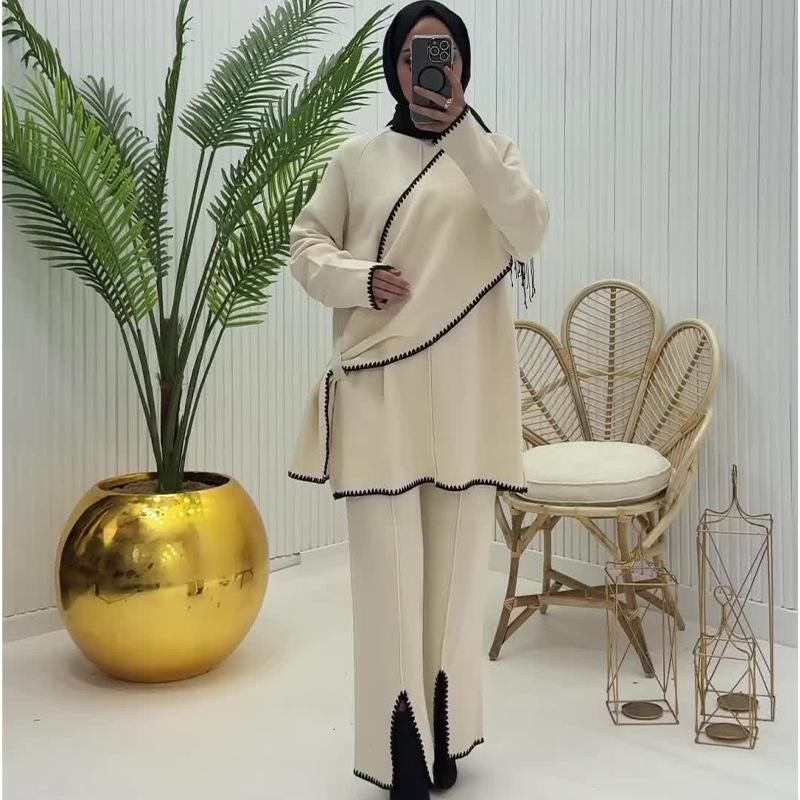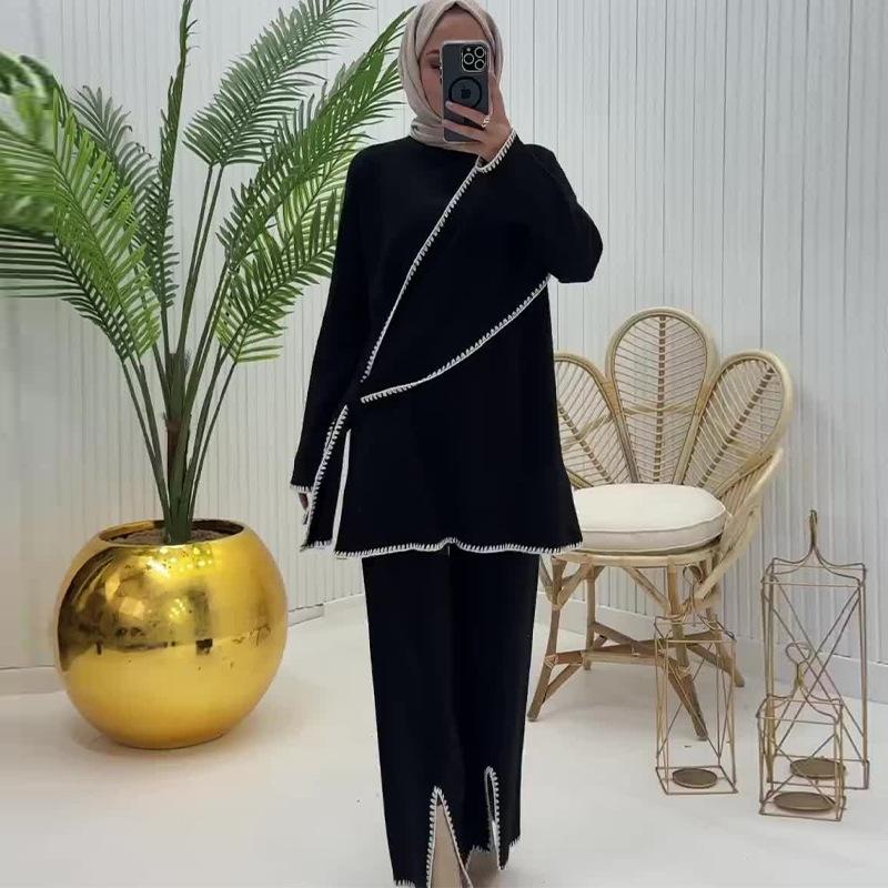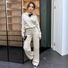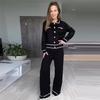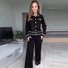 Otoño 2024 Nueva moda europea y americana Amazon transfronteriza para mujer, conjunto de dos piezas con top de contraste, pantalones casuales que combinan con todo