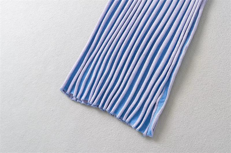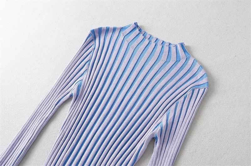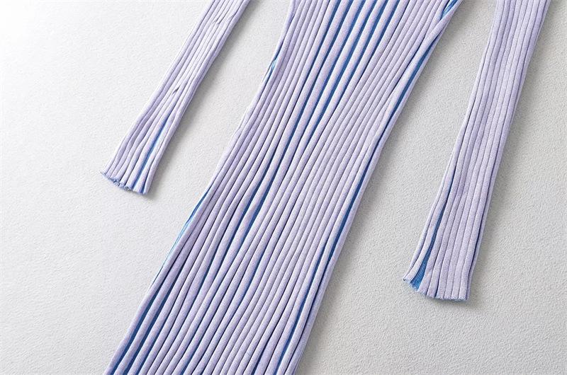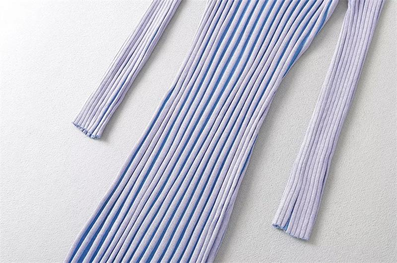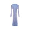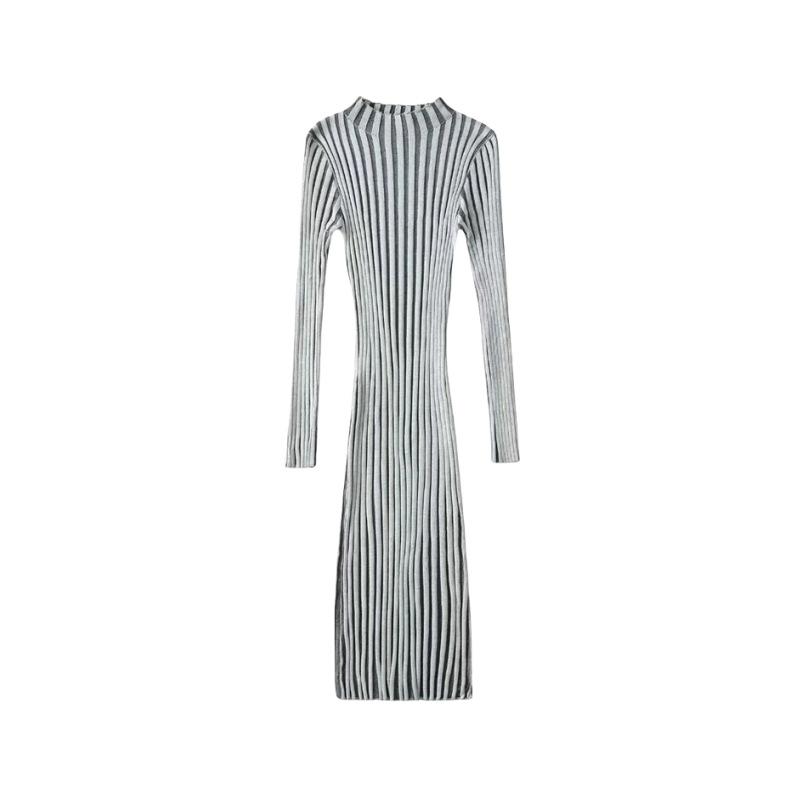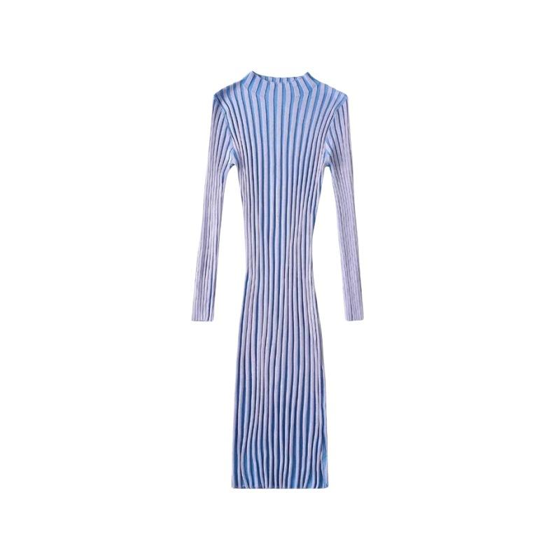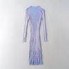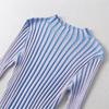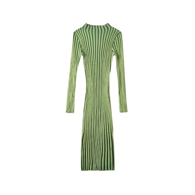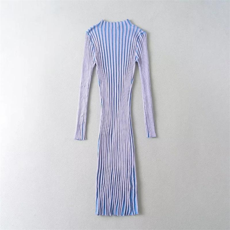 Vestido de Cuello Vertical con Tira de Foso Roscada de Manga Larga para Mujer Europeo y Americano Degradado Elástico Ajustado Sexy Cadera Base Midi
