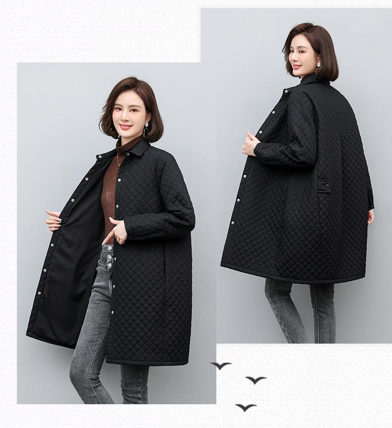 Abrigo acolchado de algodón para mujer, nuevo abrigo de invierno 2024, largo medio, informal, holgado, grueso, estilo coreano, ligero y para madres de mediana edad.