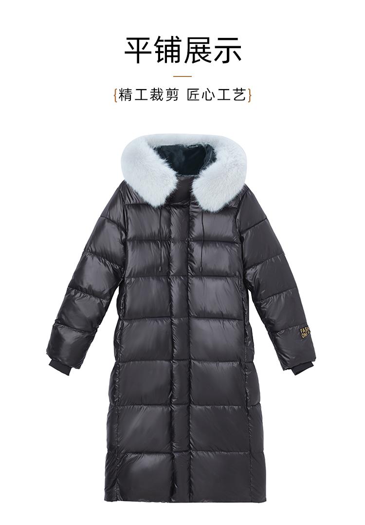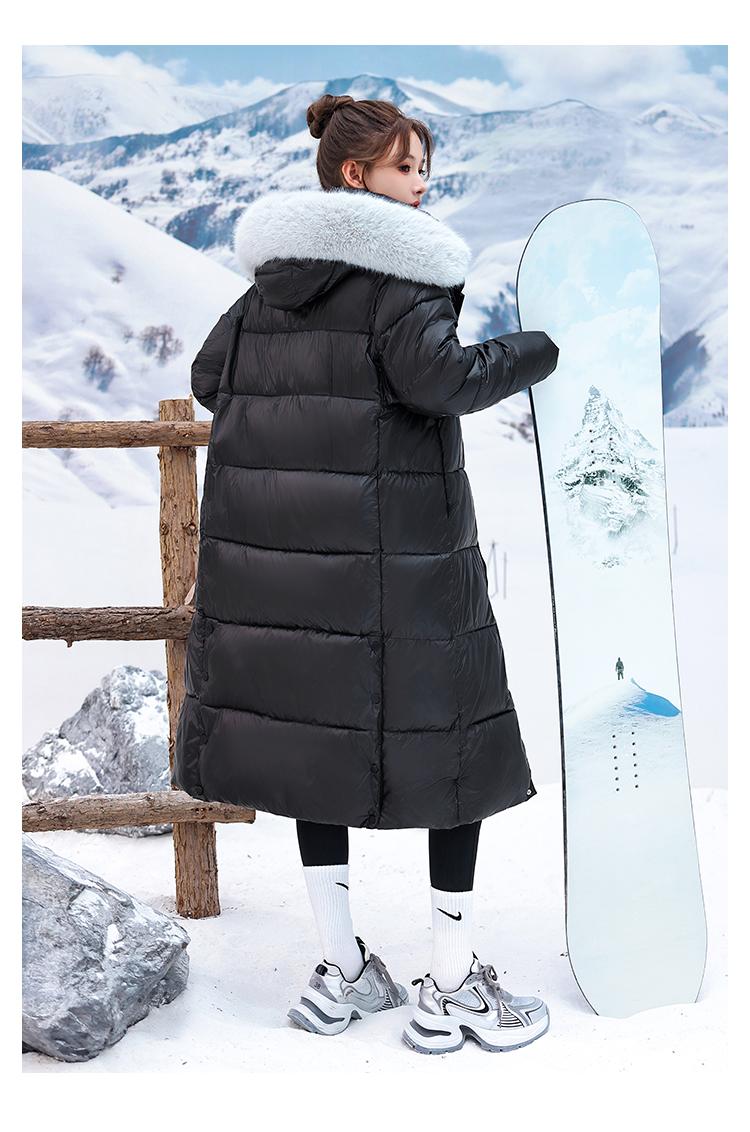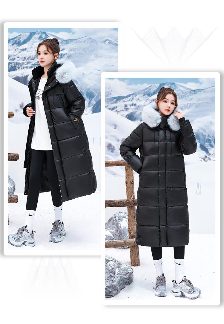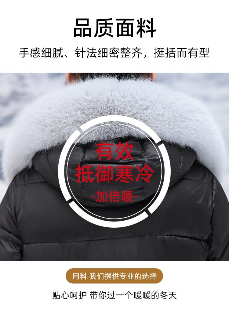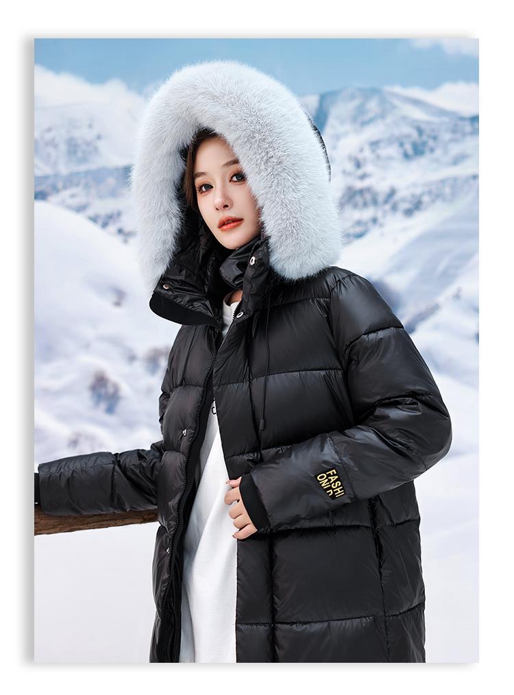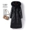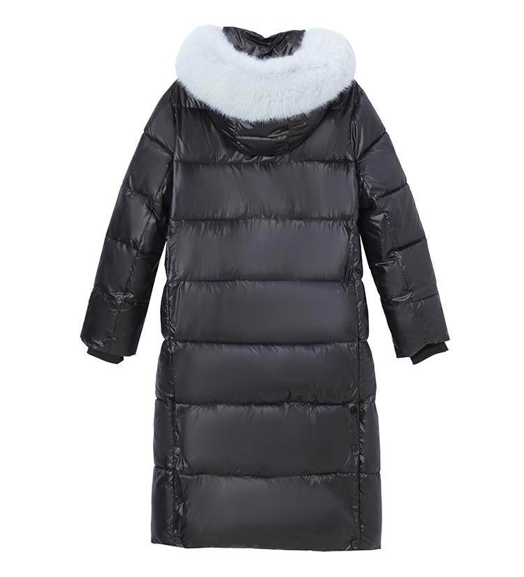 Auténtico Plumón Algodón Ropa de Abrigo para Mujer Largo Medio Nuevo Zorro Plateado Cuello de Piel Grande Invierno Engrosado Hasta la Rodilla Cálido Negro Ropa de Abrigo